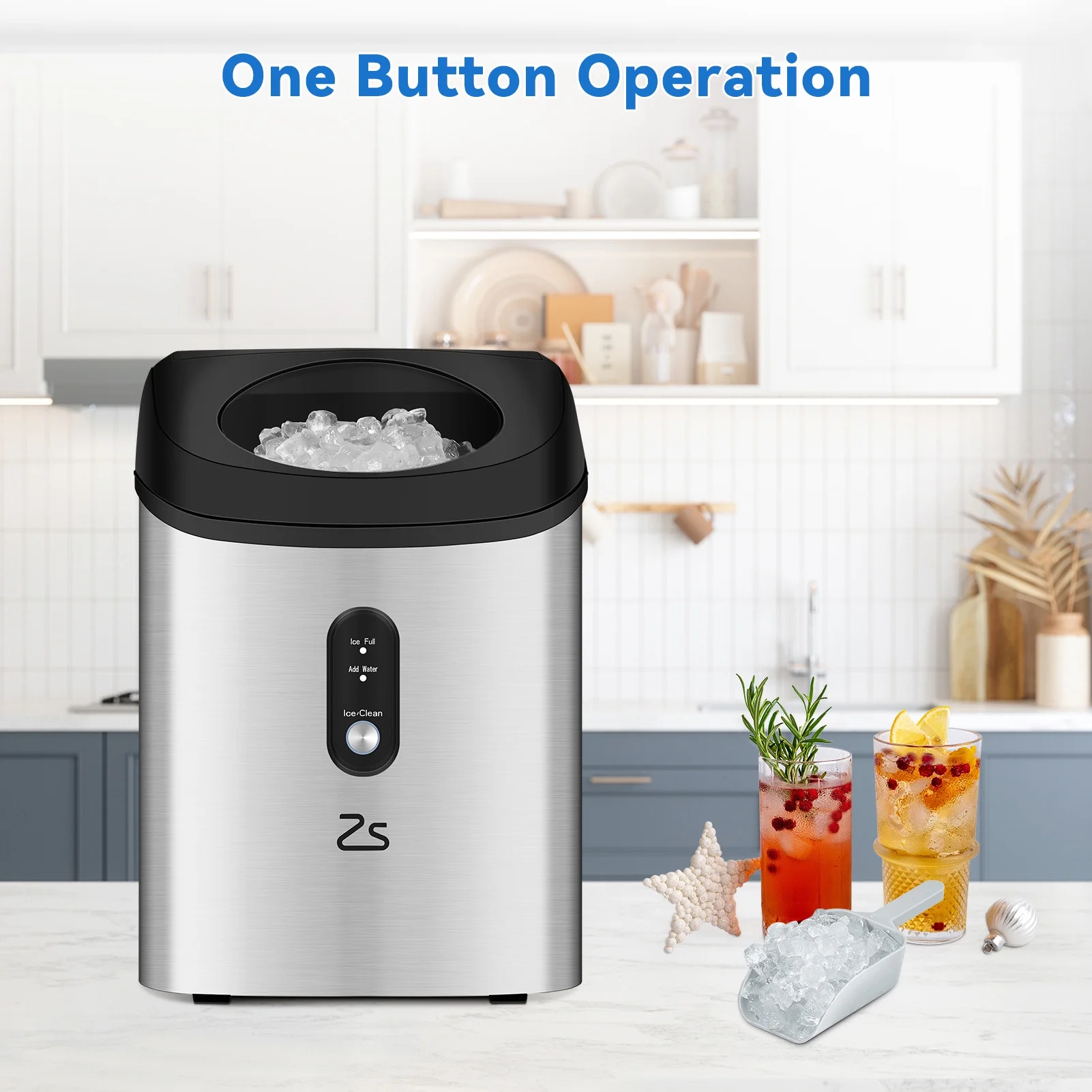 Entcook 33Lbs/24H Crunchy Chewable Nugget Ice Maker Countertop, Portable with Ice Scoop