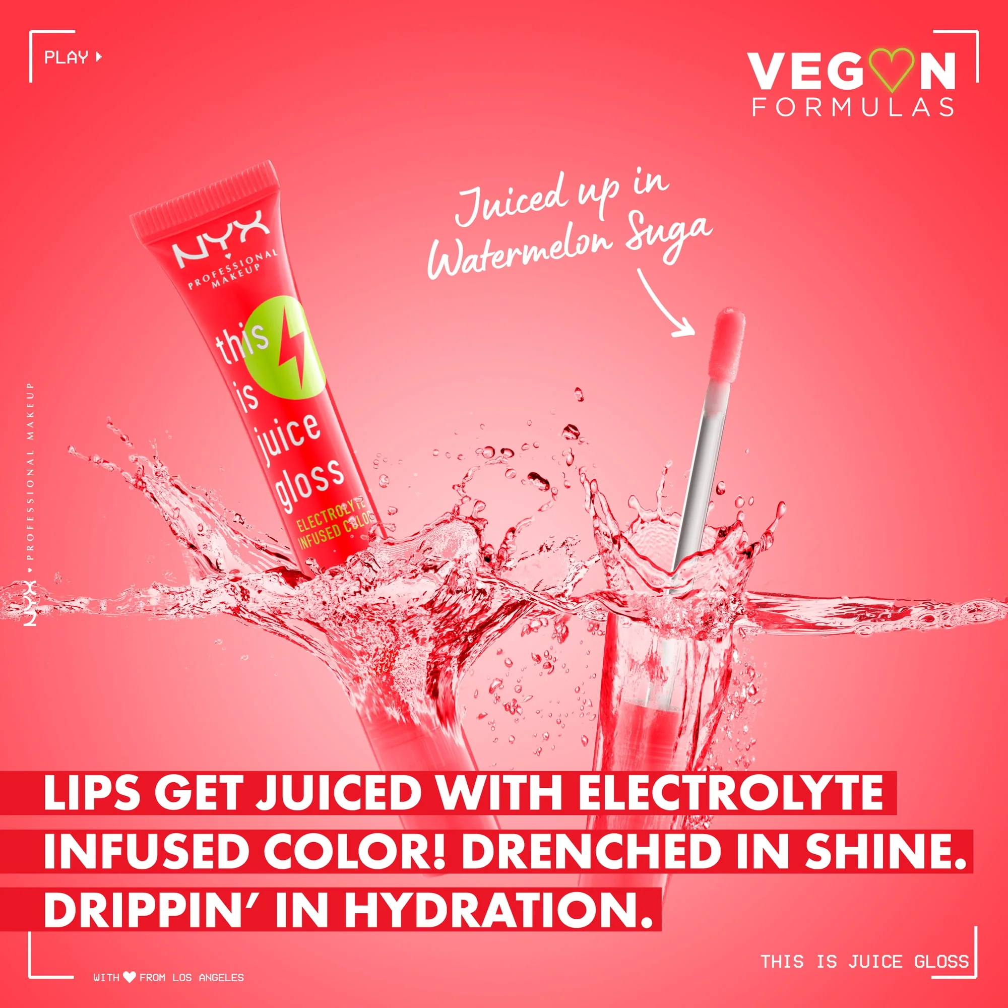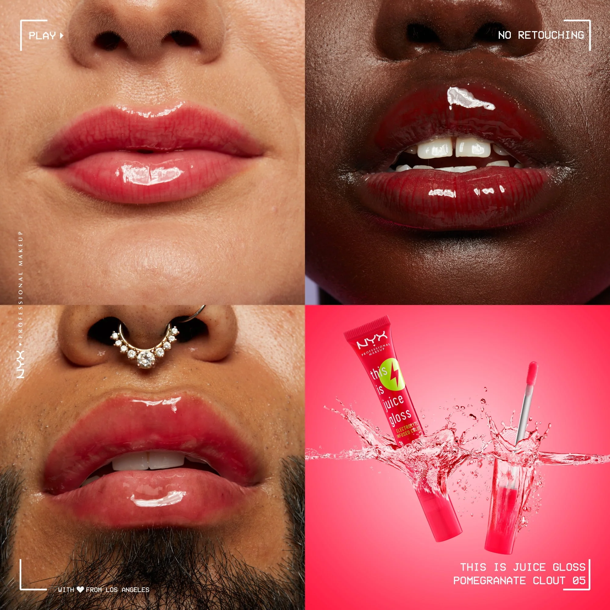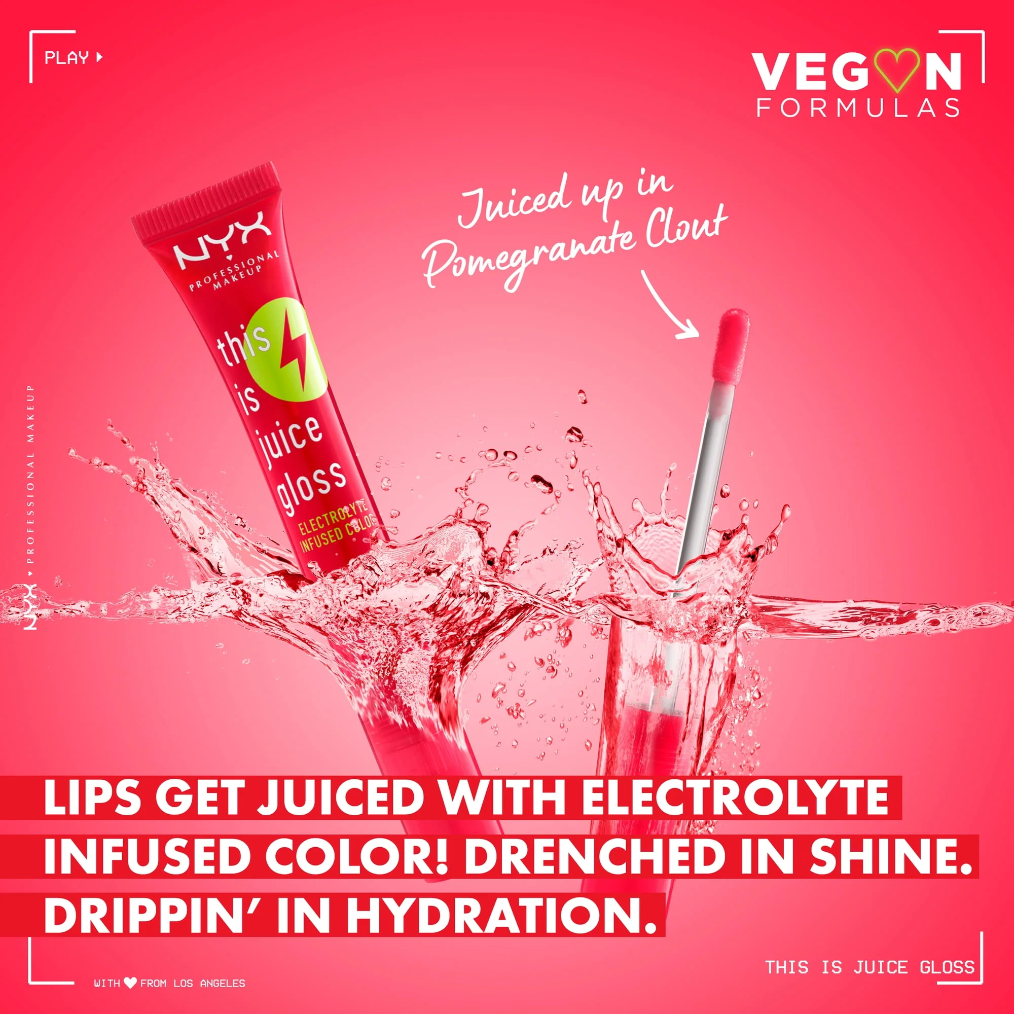 NYX Professional Makeup This Is Juice Gloss, Hydrating Lip Gloss, Pomegranate Clout, 0.33 fl oz