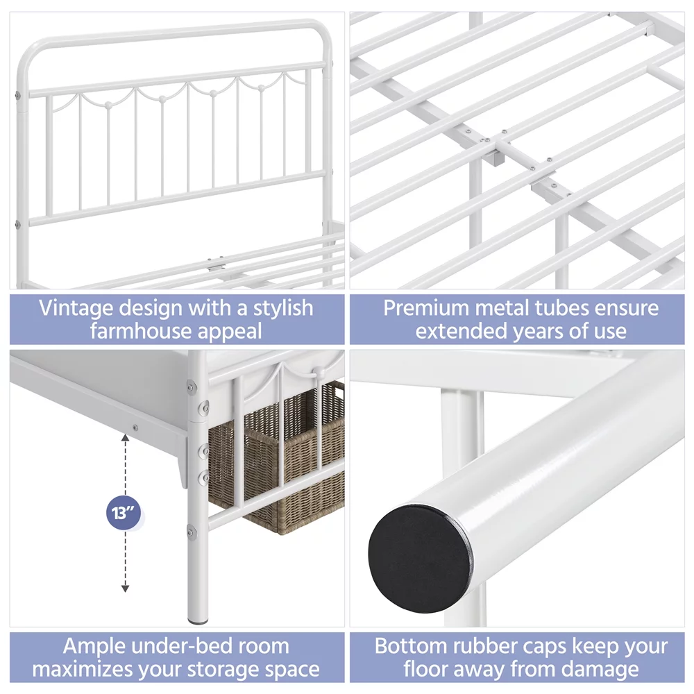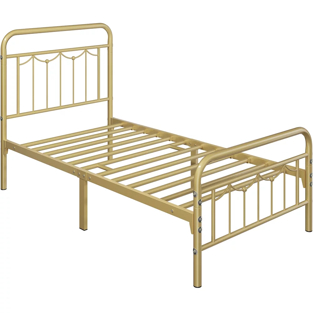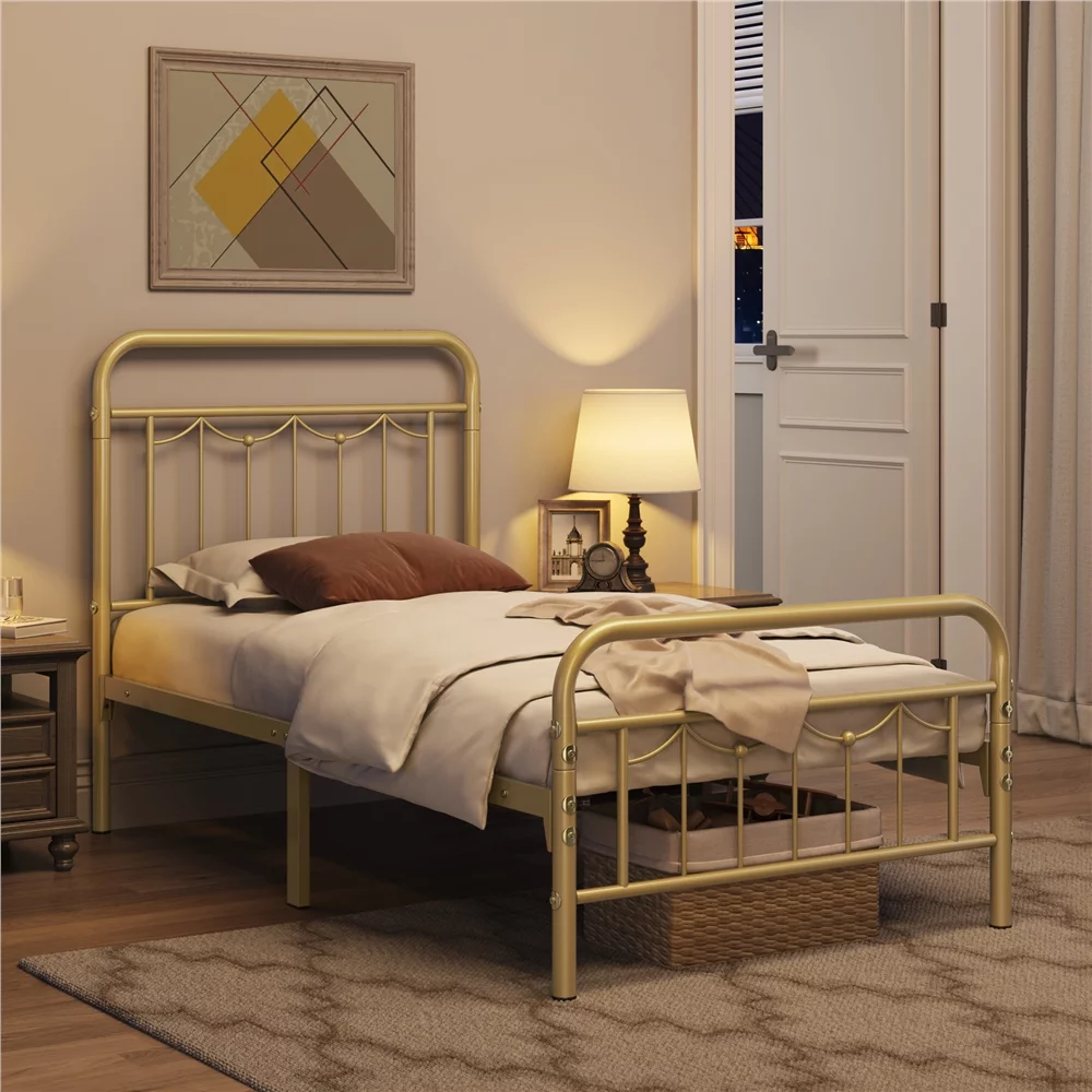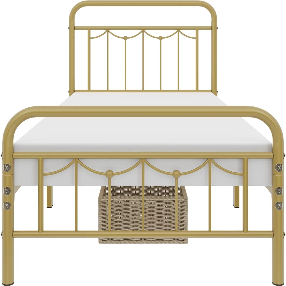 SmileMart Archie Metal Platform Twin Bed with Vintage Headboard and Footboard, Antique Gold