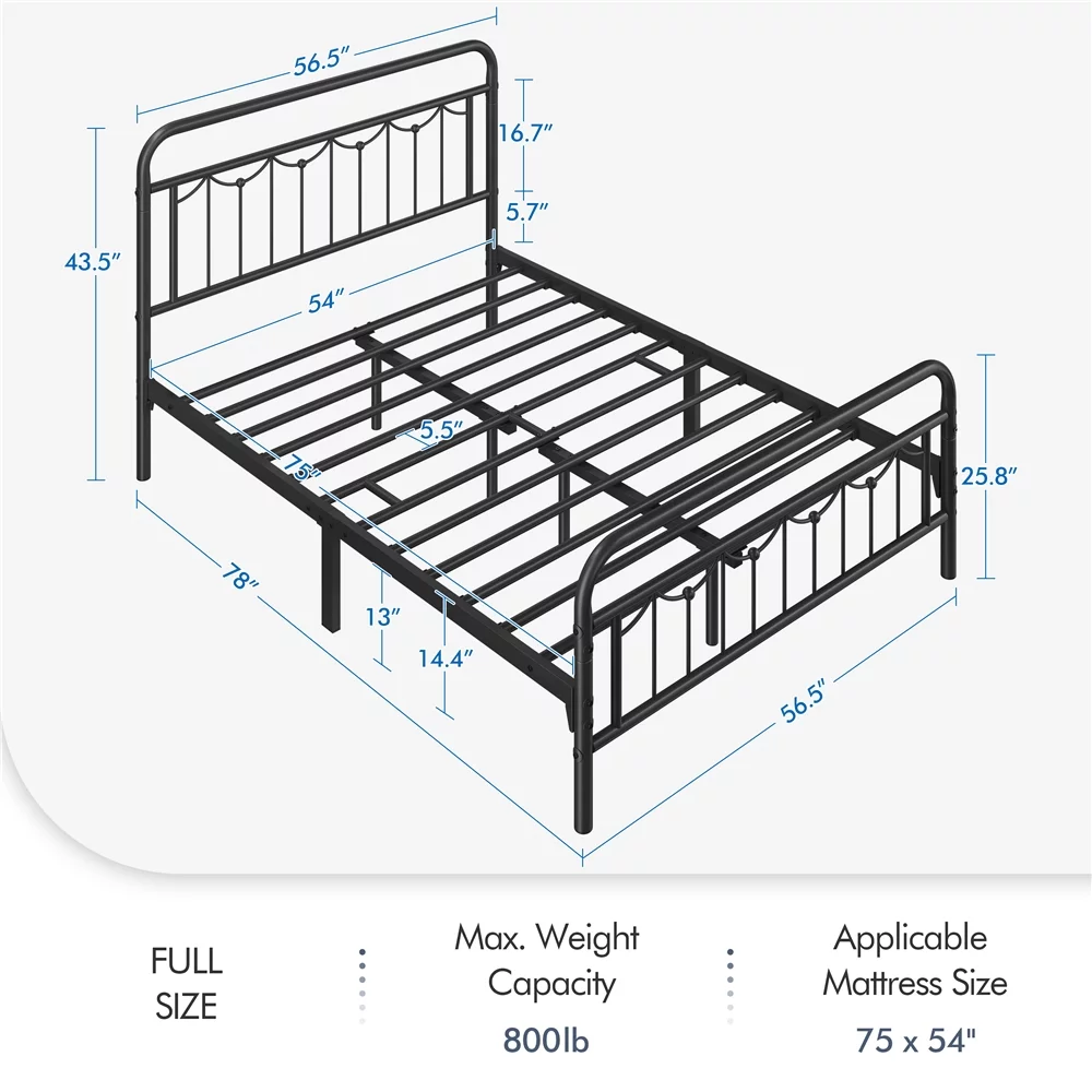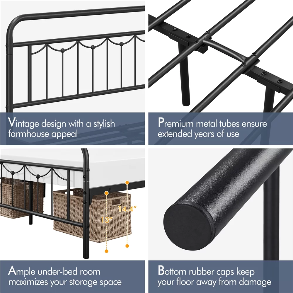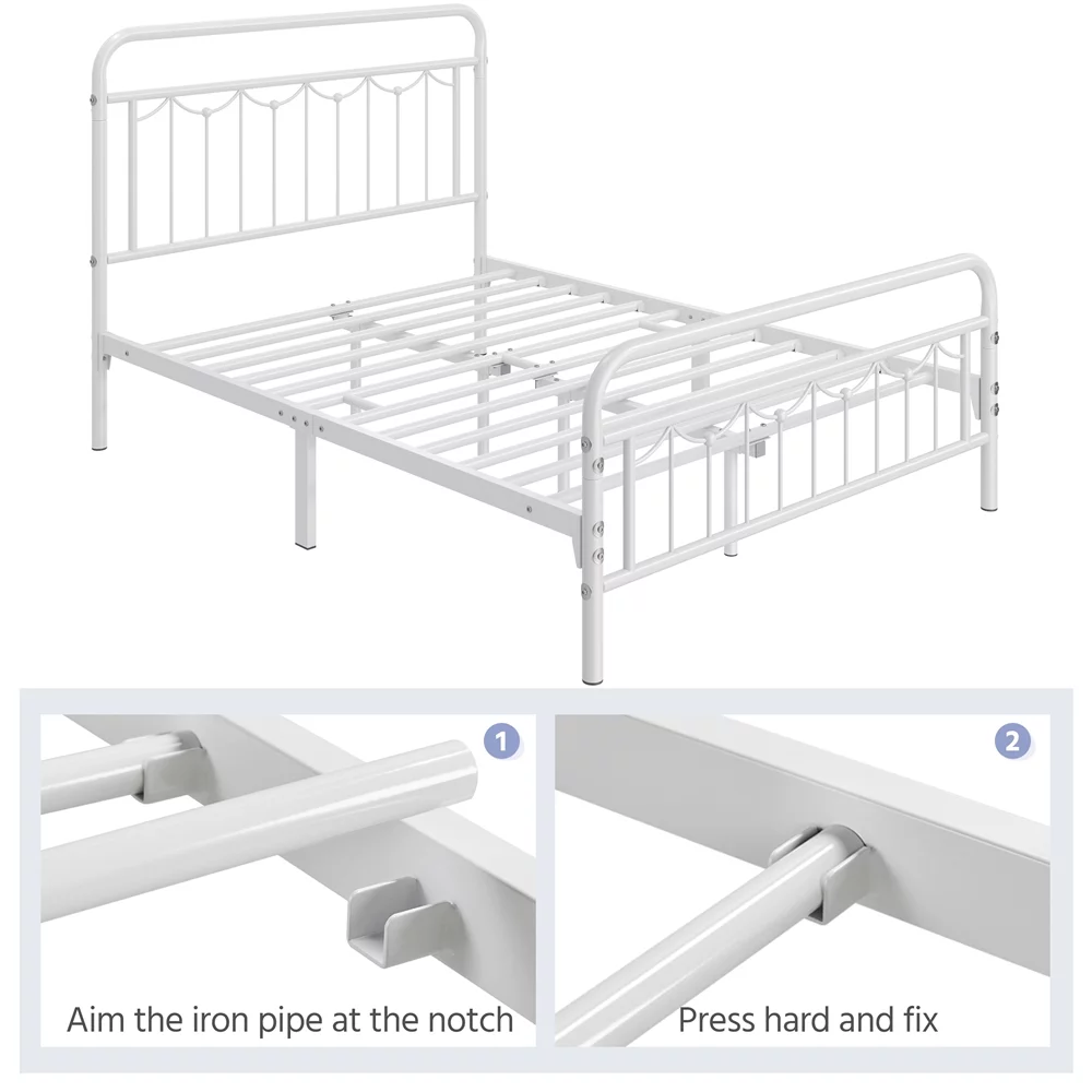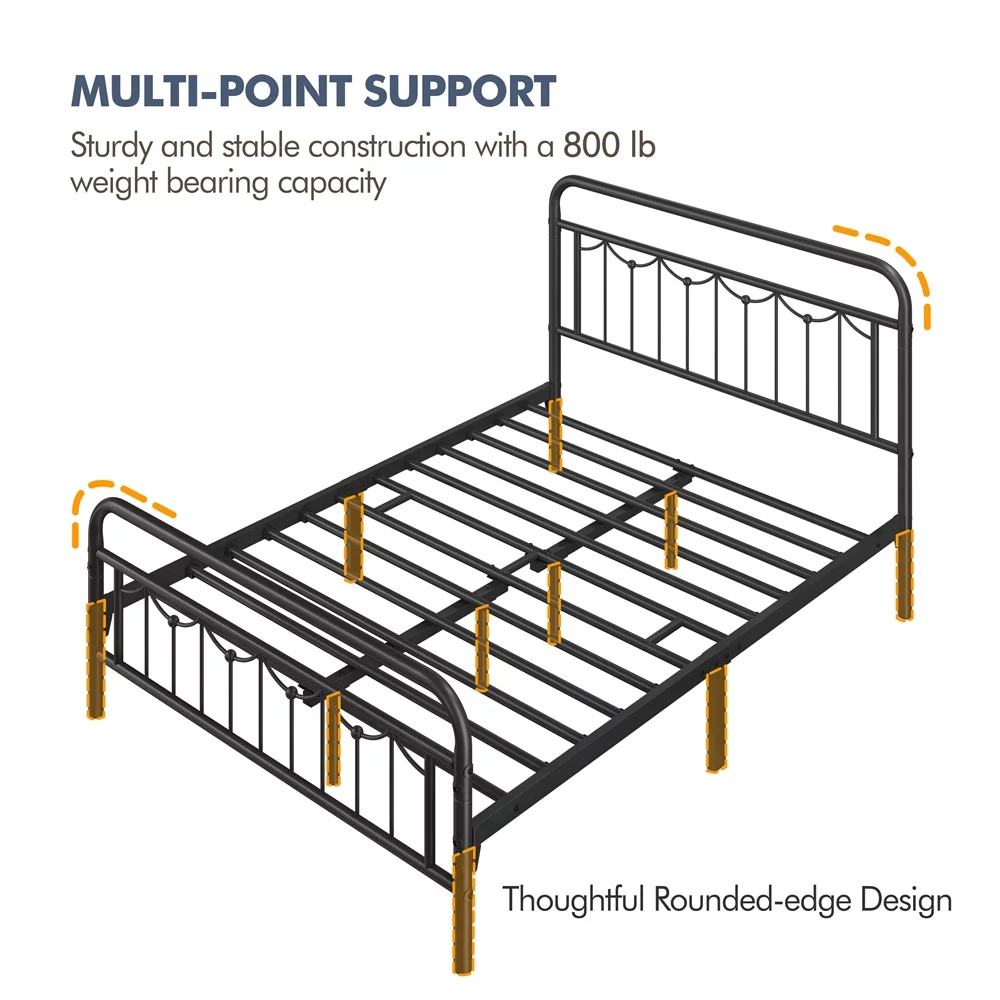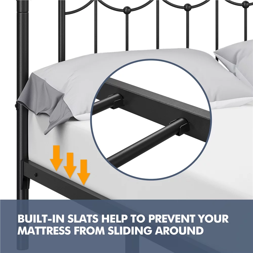 SmileMart Archie Metal Platform Twin Bed with Vintage Headboard and Footboard, Antique Gold