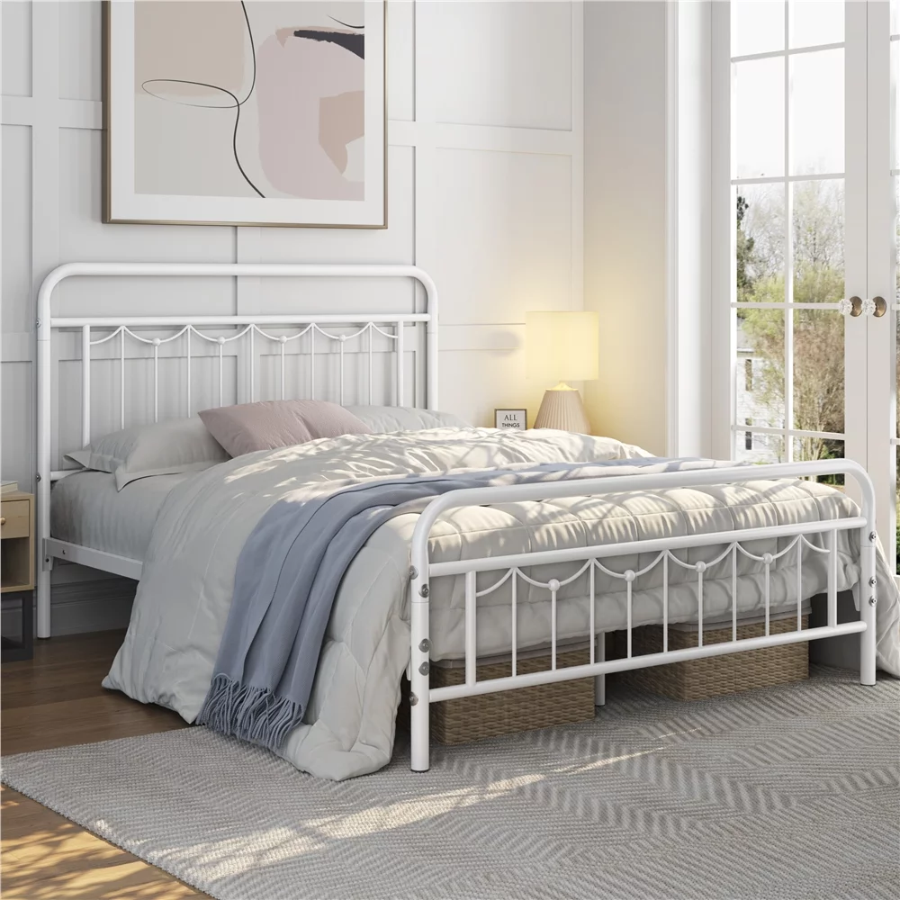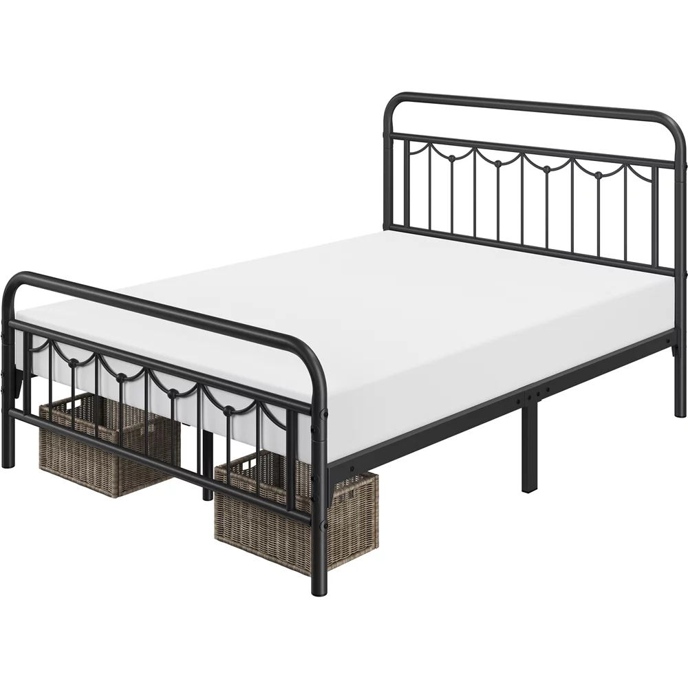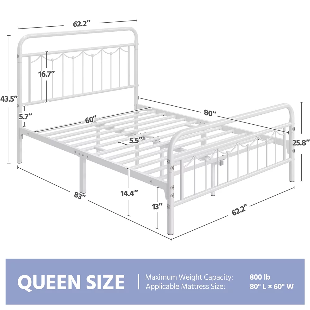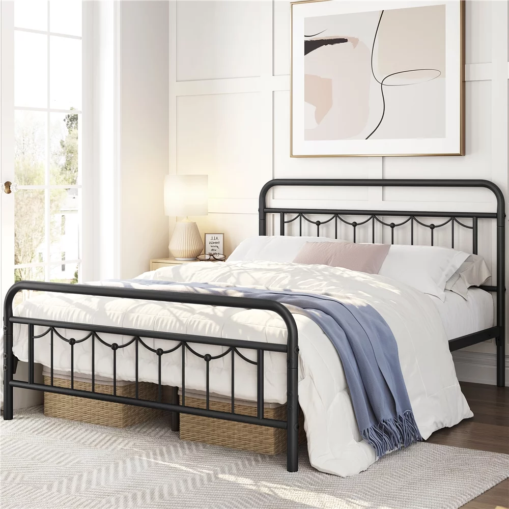 SmileMart Archie Metal Platform Twin Bed with Vintage Headboard and Footboard, Antique Gold