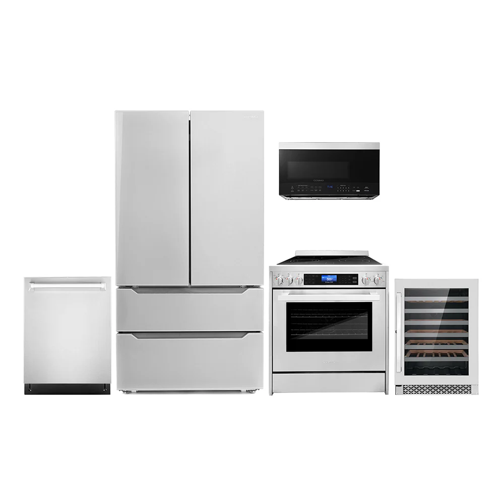 Cosmo Package - 30 Electric Range, Dishwasher, Refrigerator with Ice Maker, Wine Cooler and Microwave, COS-5PKG-073