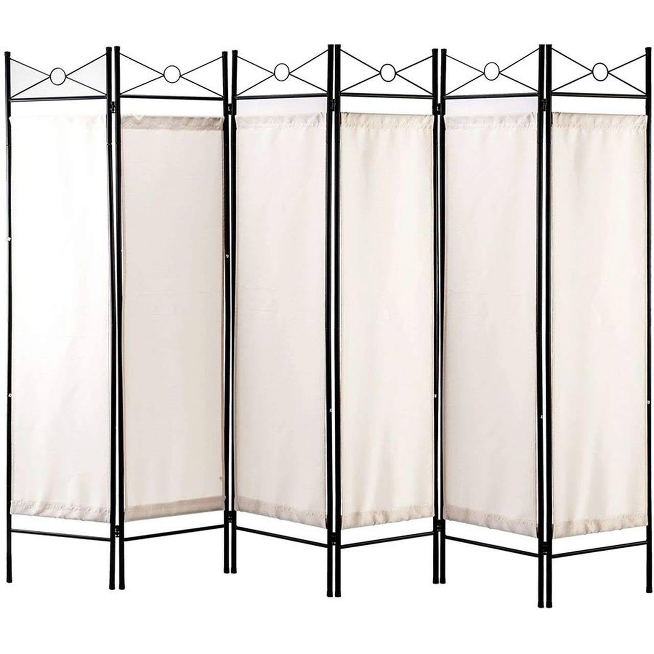 Legacy Decor 6 Panel Metal and Woven Fabric Room Divider with Two Way Hinges White Color - Avayadevconnect