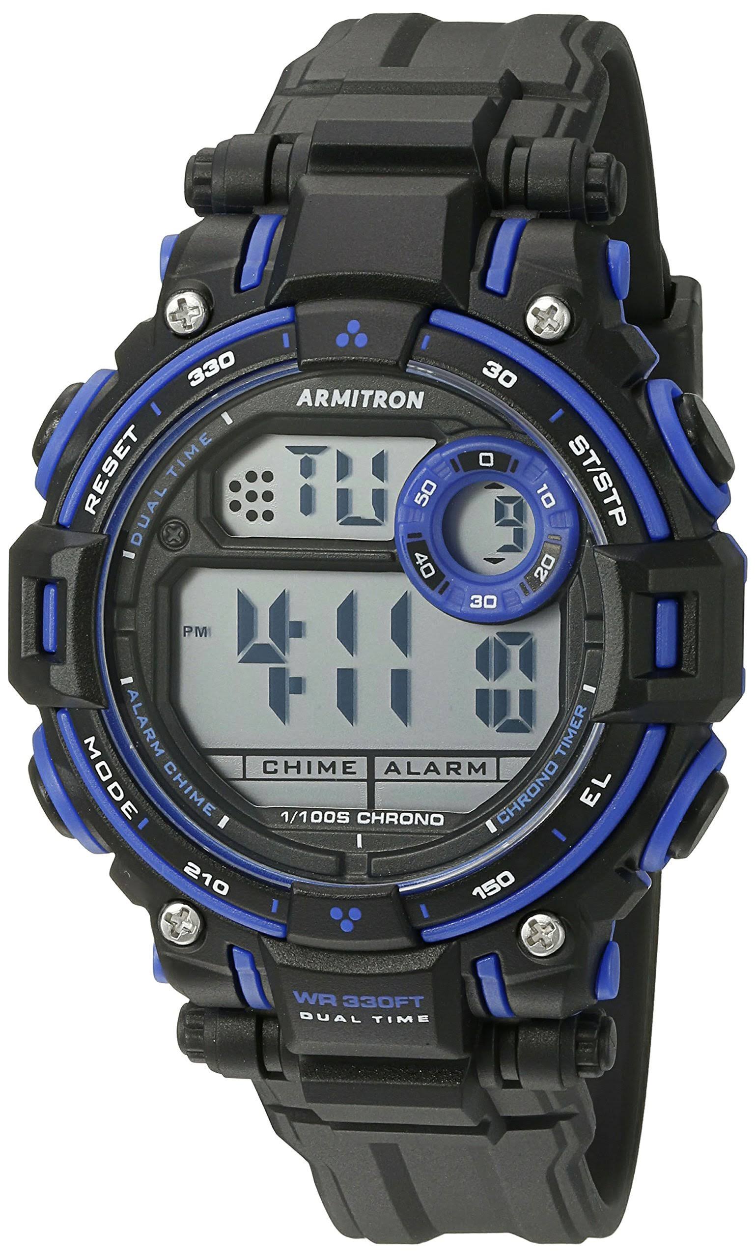 Armitron Sport Unisex 45/7066blu Blue Accented Digital Chronograph Matte Black Resin Strap Watch - Megean