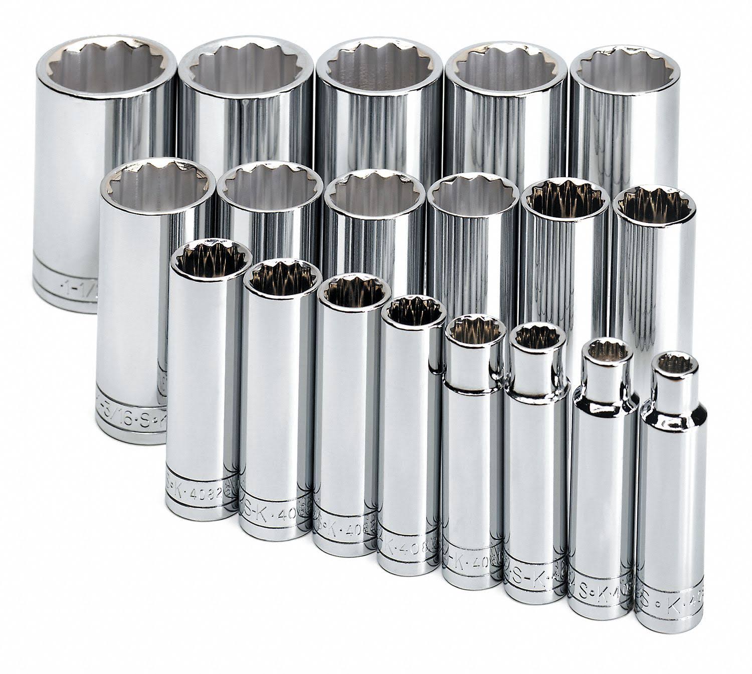 SK 4819-6 19 Piece 1/2" Drive 6 Point Deep Fractional Socket Set - Megean