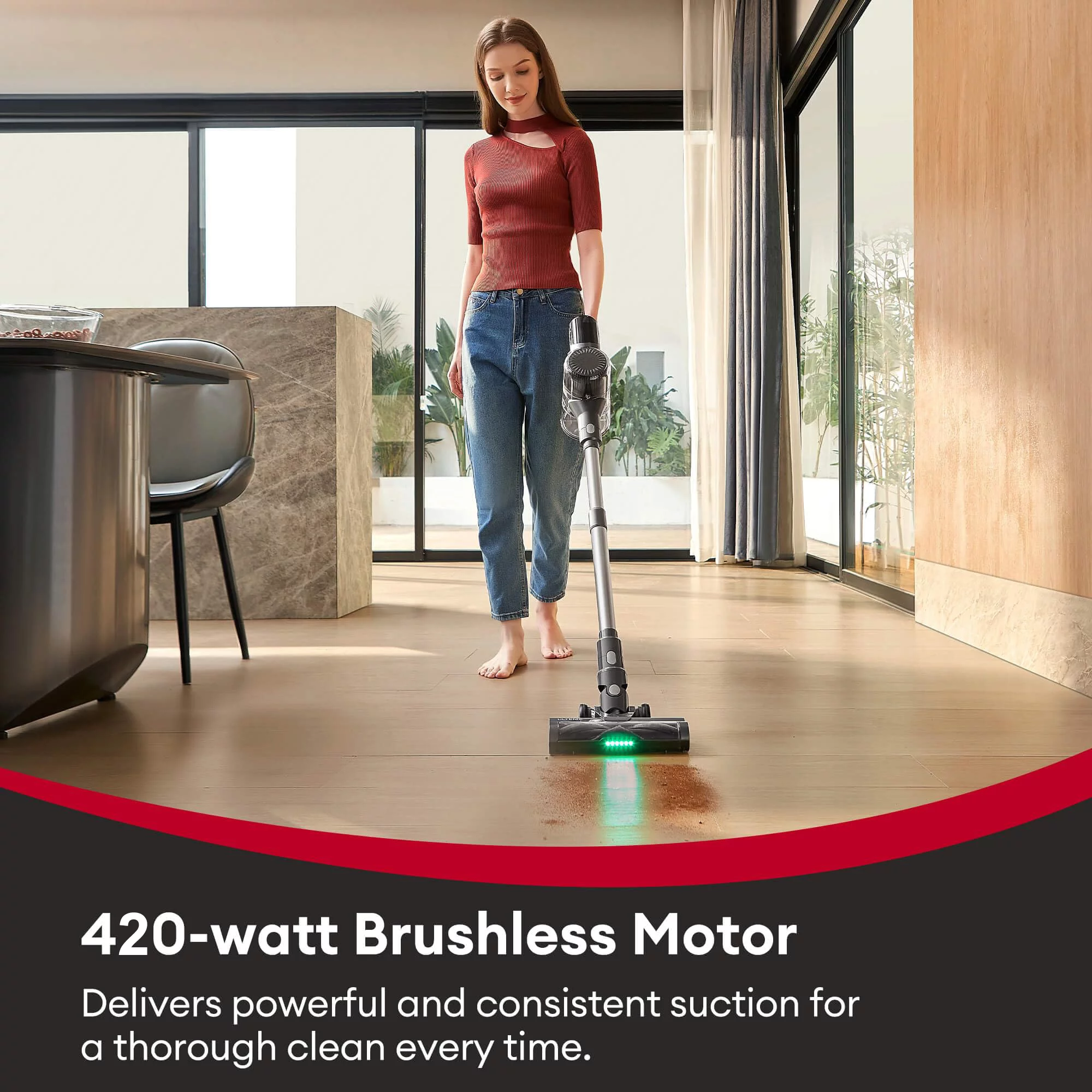 Moosoo Stick Vacuum Cleaner 30Kpa Strong Suction with Innovative 3-Colors Curved Display, Portable Lightweight Vac for Hard Floor, Carpet, Pet Hair