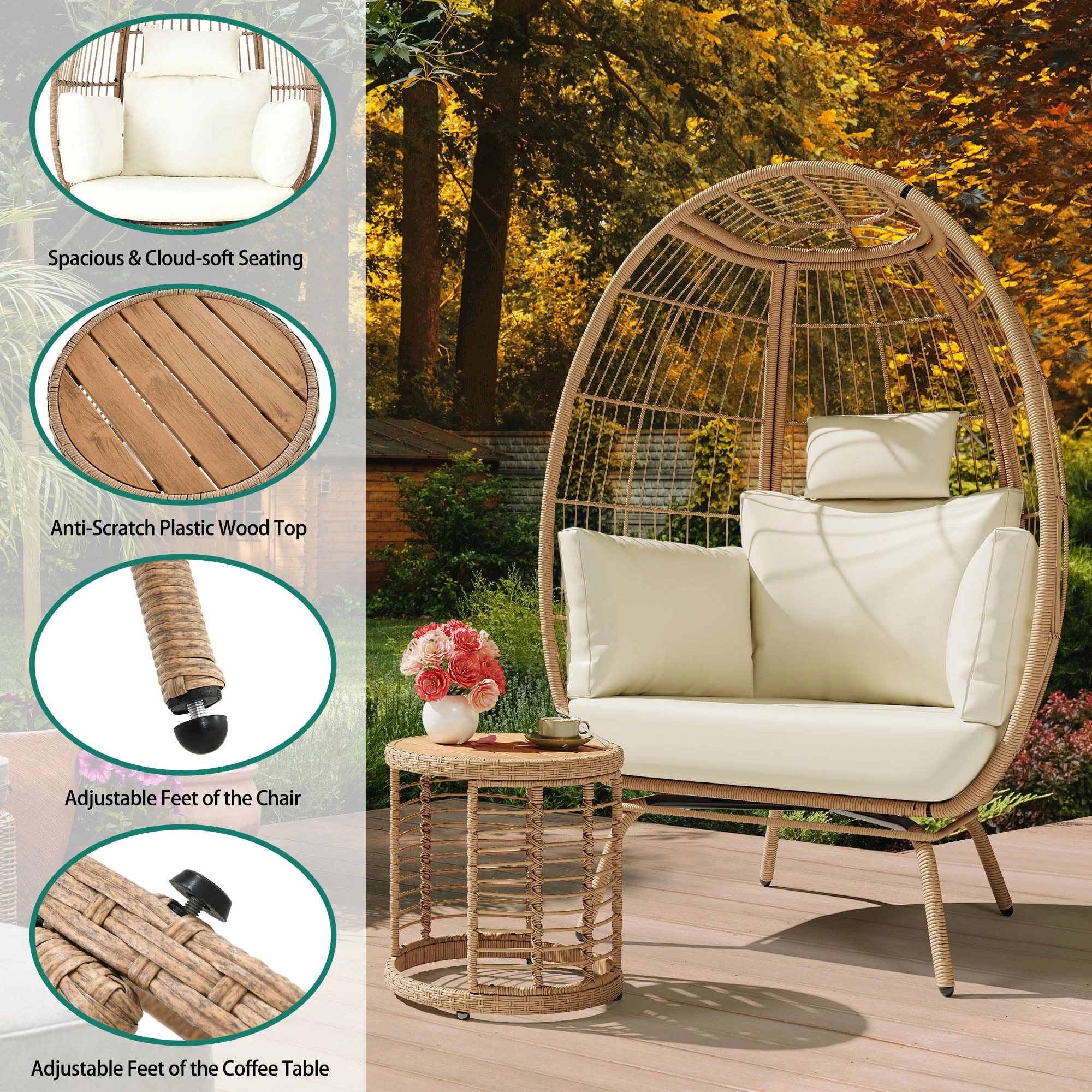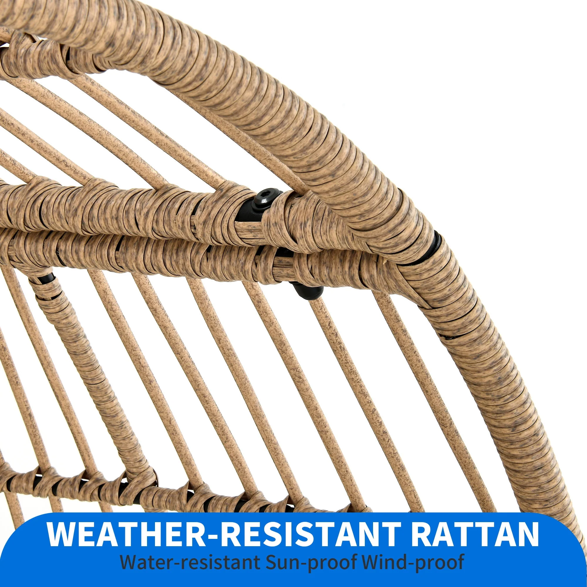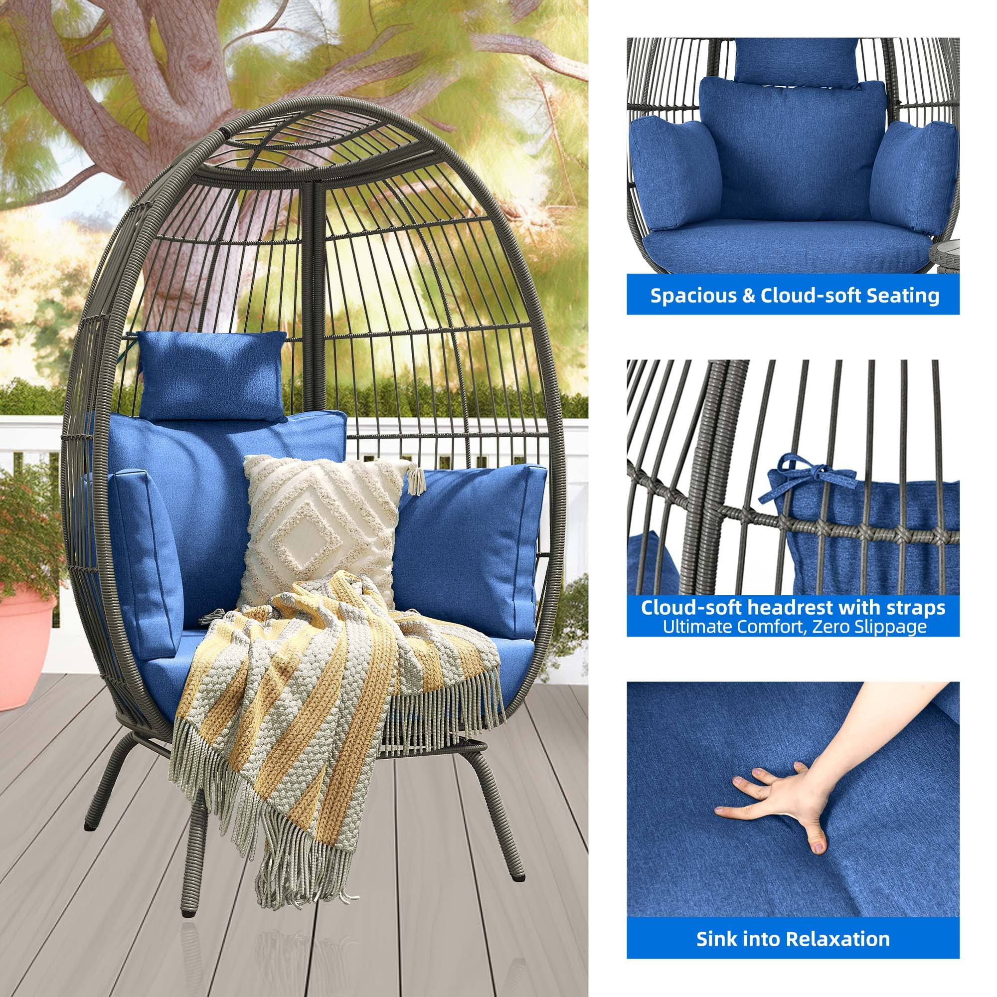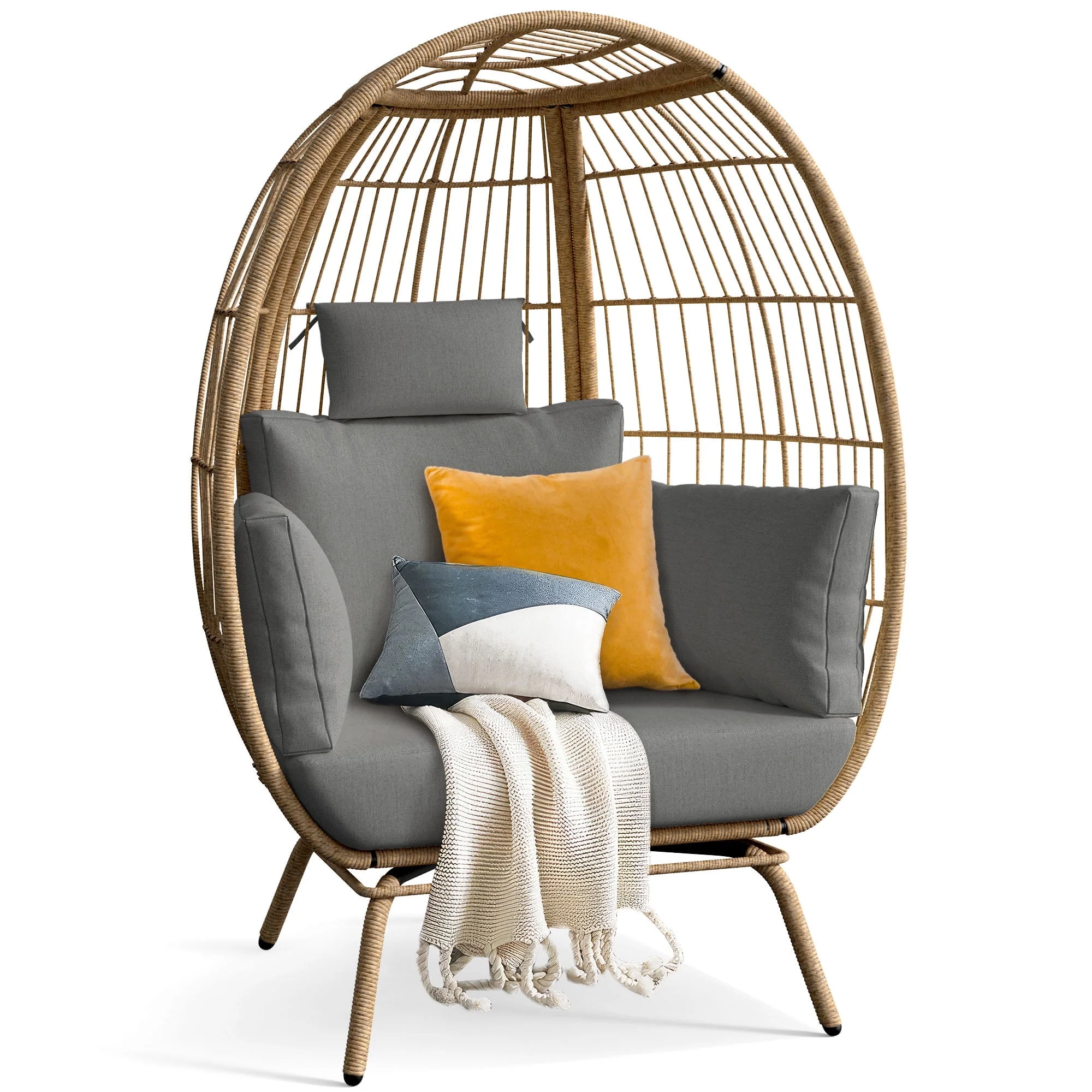 Dextrus Wicker Egg Chair Outdoor Indoor Oversized Lounger with Stand and Cushions Egg Basket Chair for Patio Backyard Porch - Beige