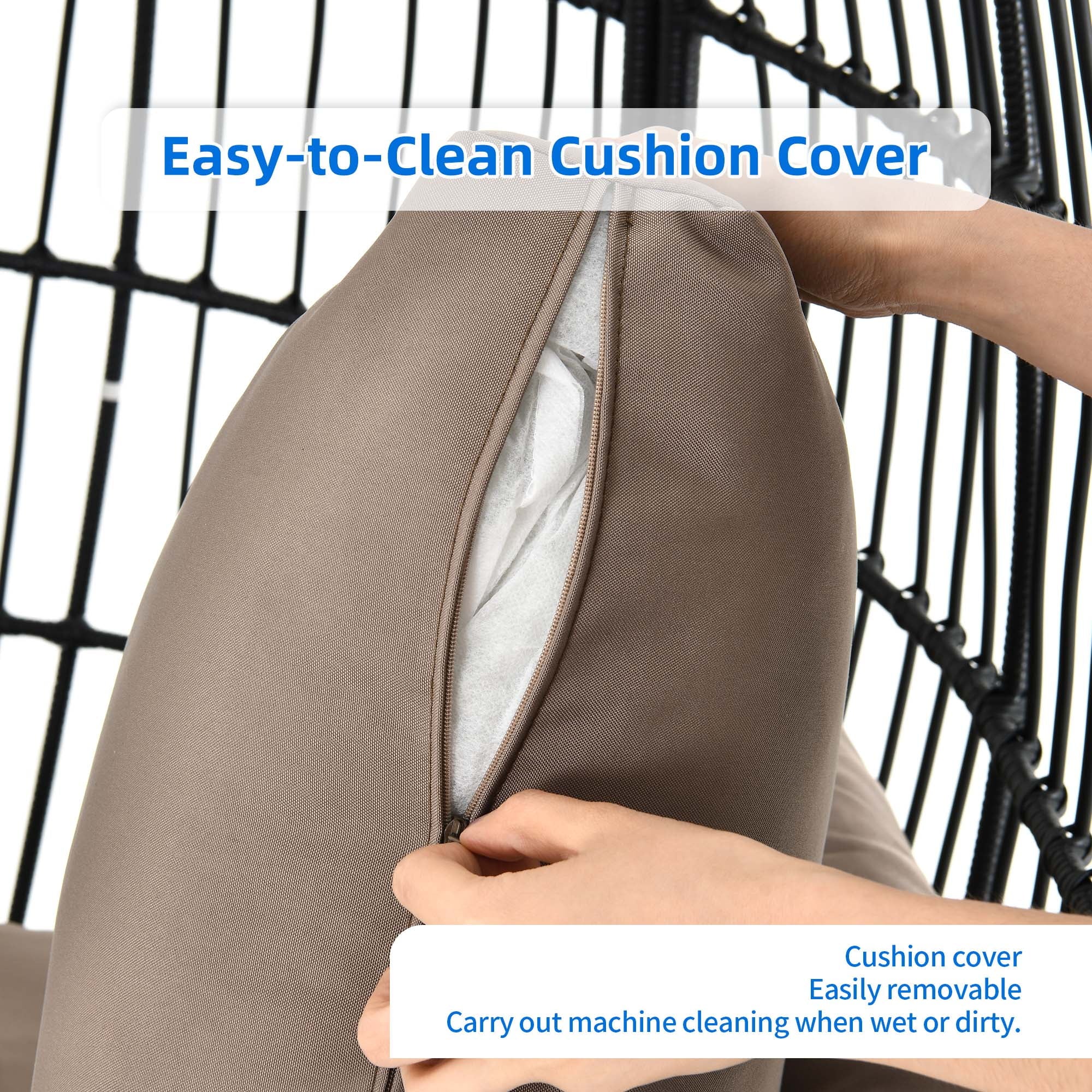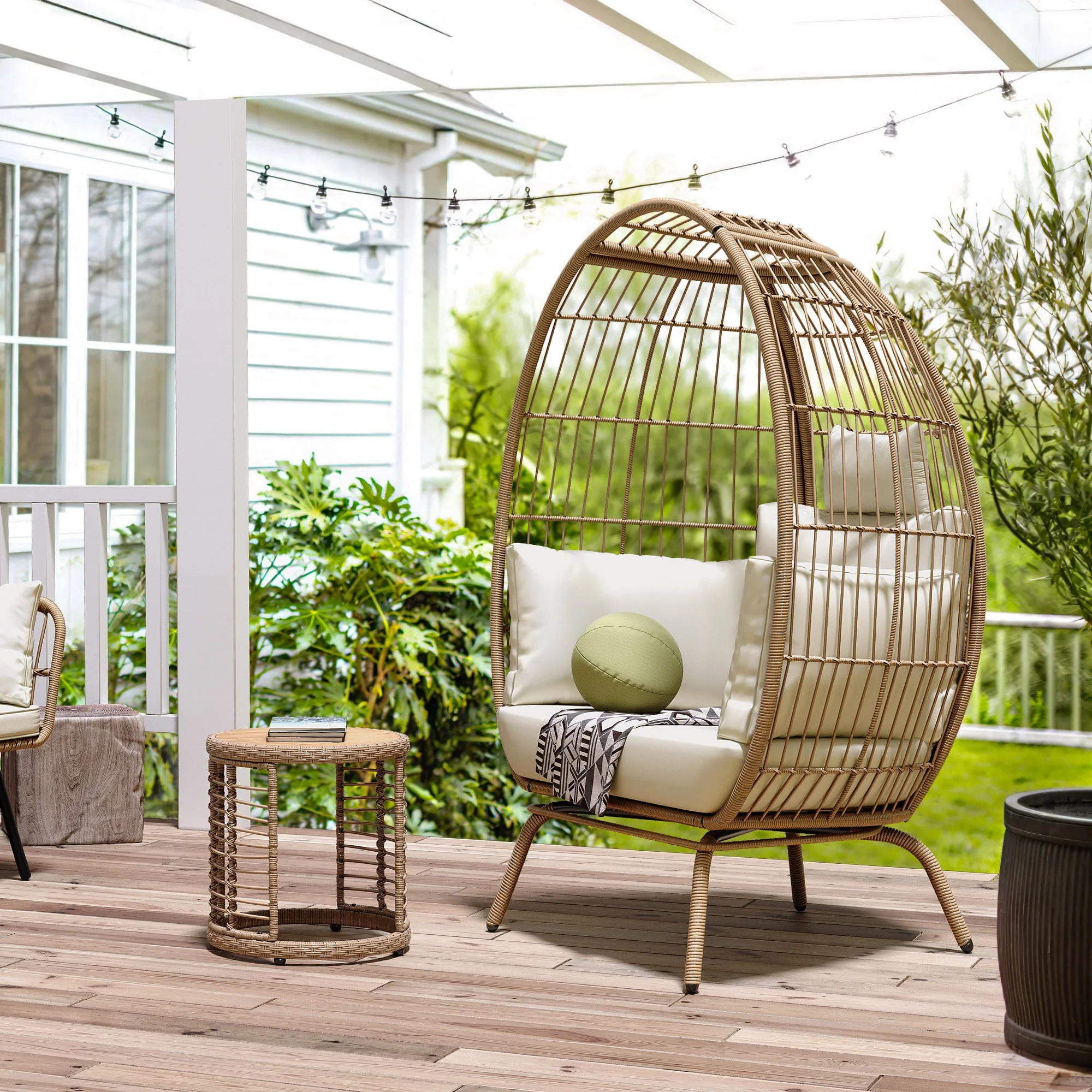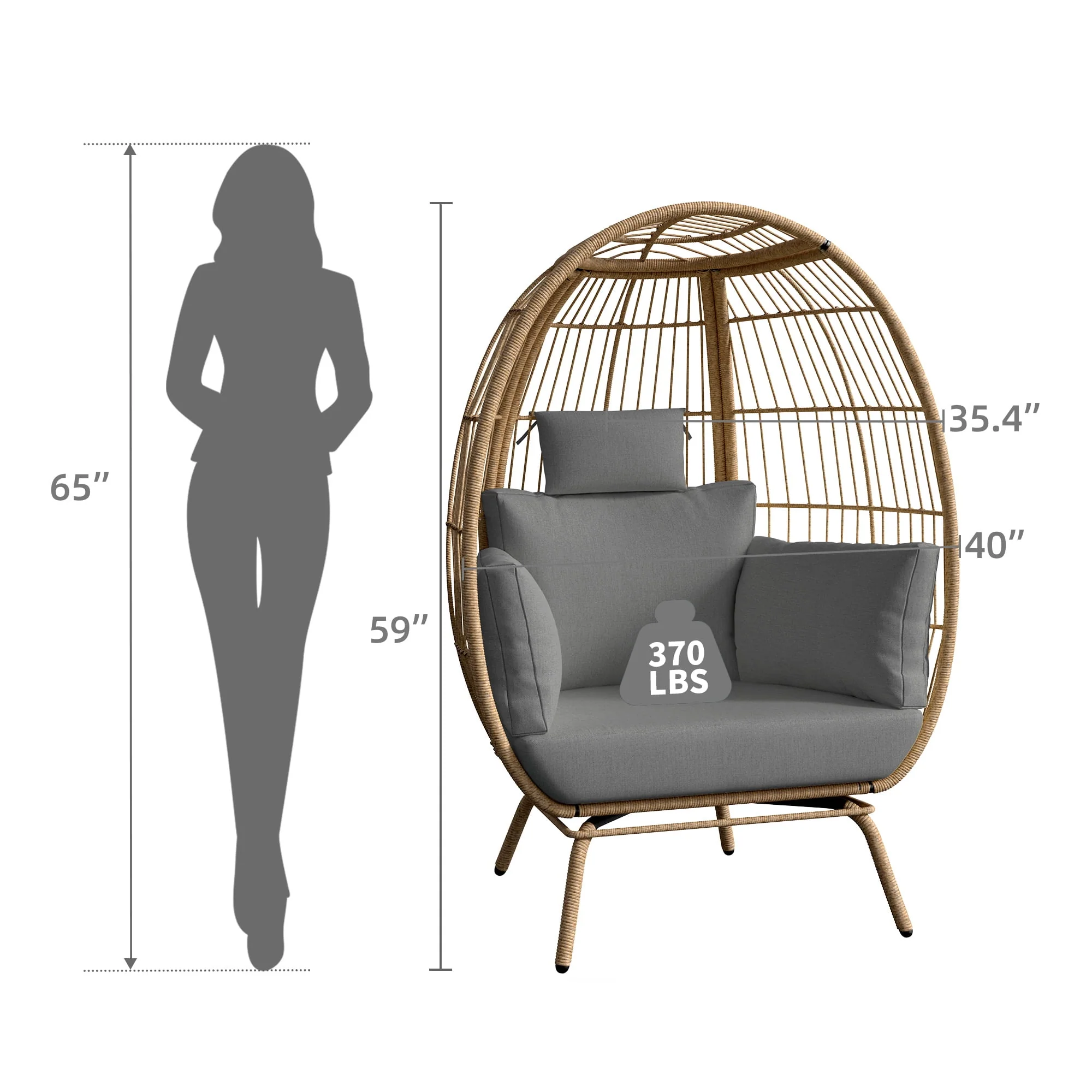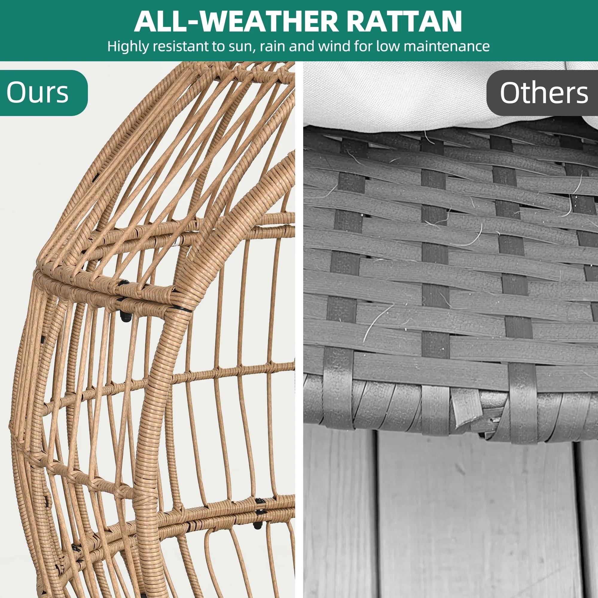 Dextrus Wicker Egg Chair Outdoor Indoor Oversized Lounger with Stand and Cushions Egg Basket Chair for Patio Backyard Porch - Beige