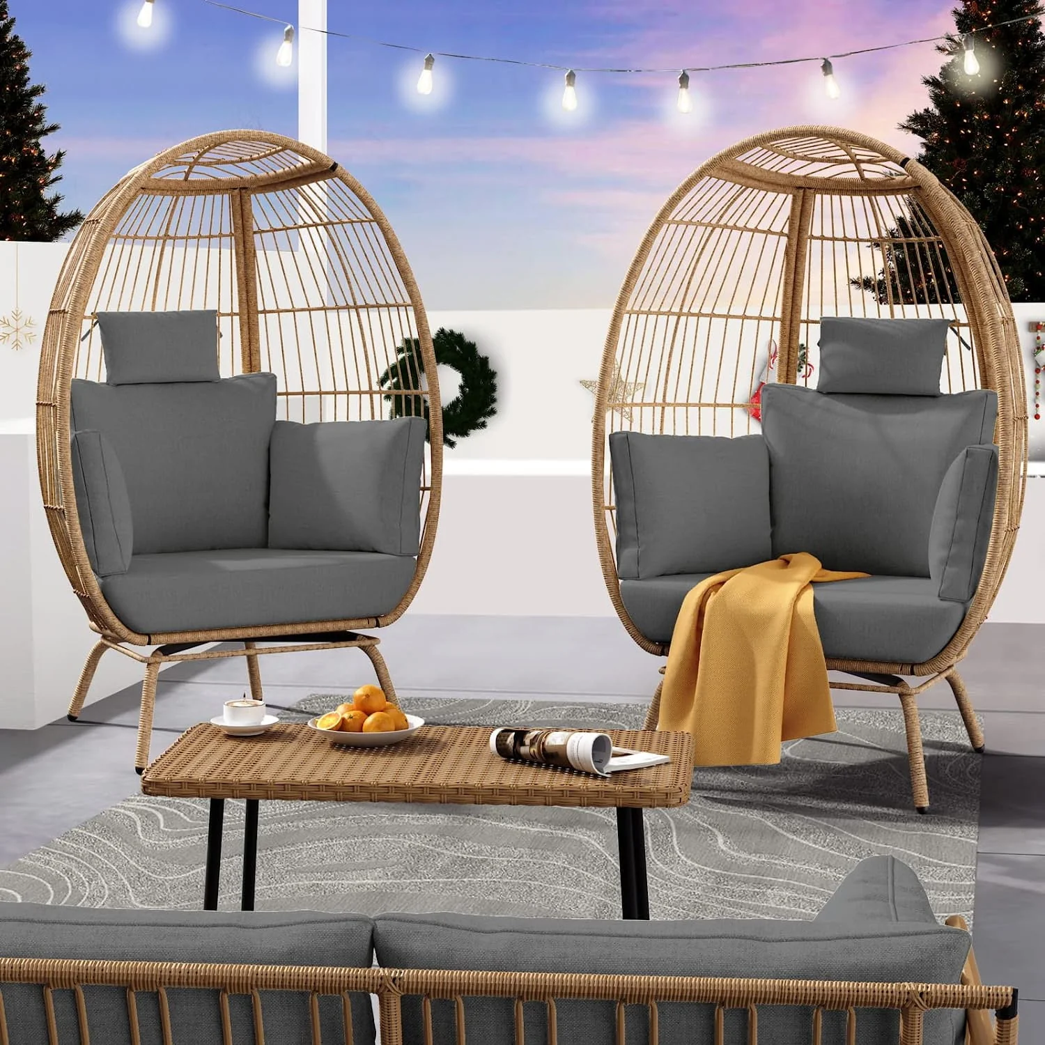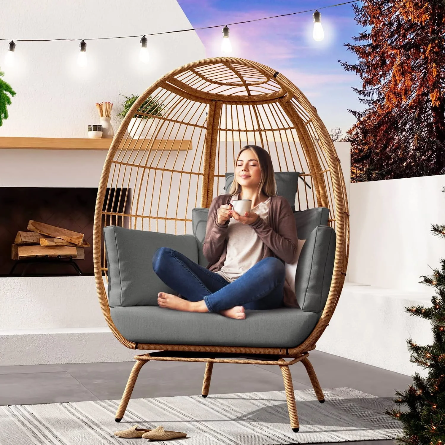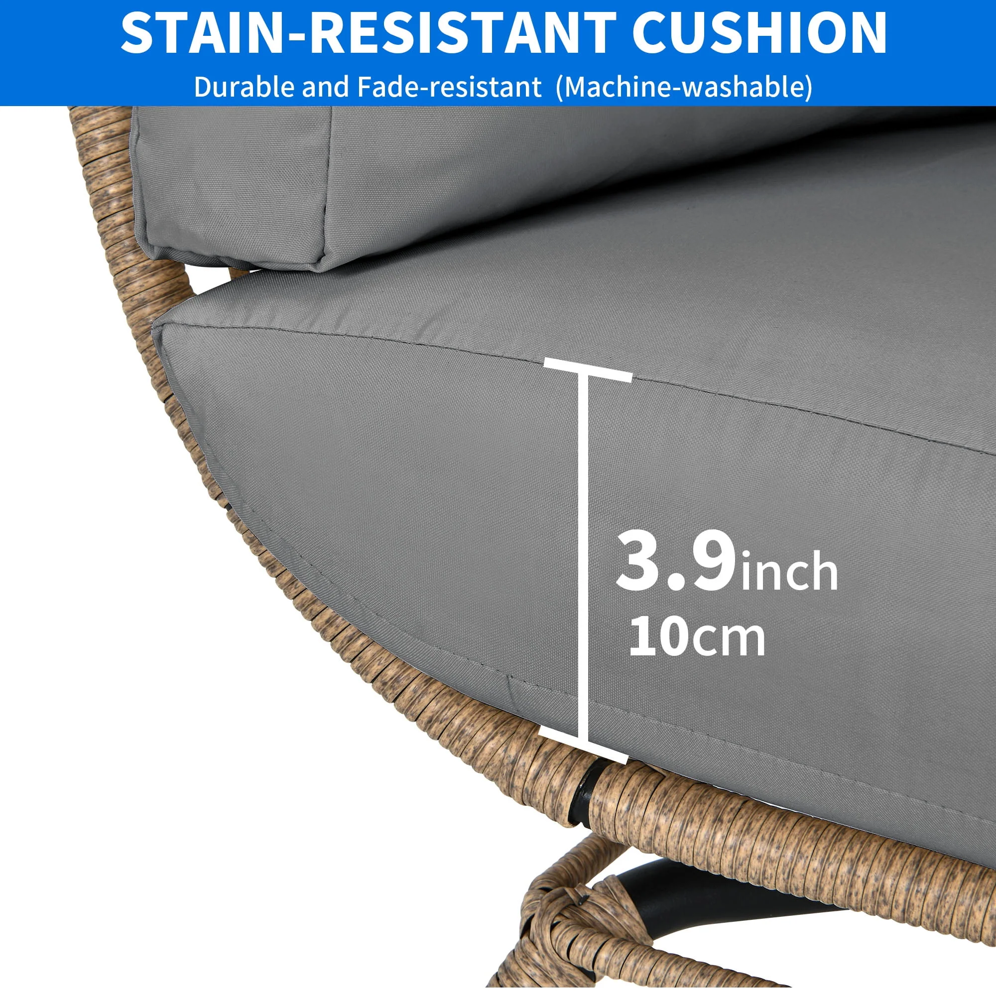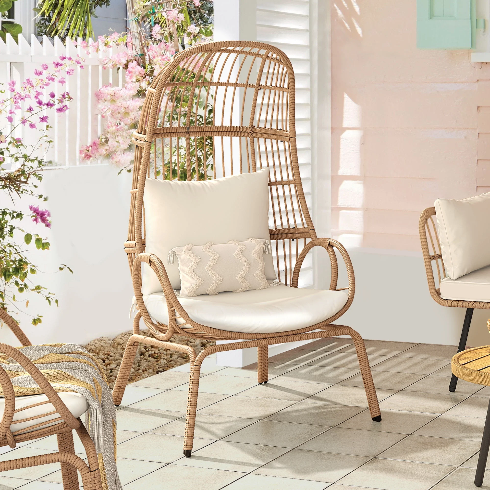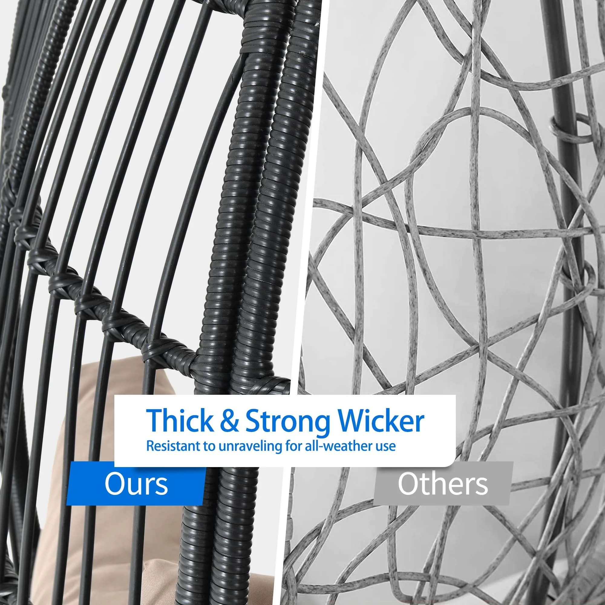 Dextrus Wicker Egg Chair Outdoor Indoor Oversized Lounger with Stand and Cushions Egg Basket Chair for Patio Backyard Porch - Beige