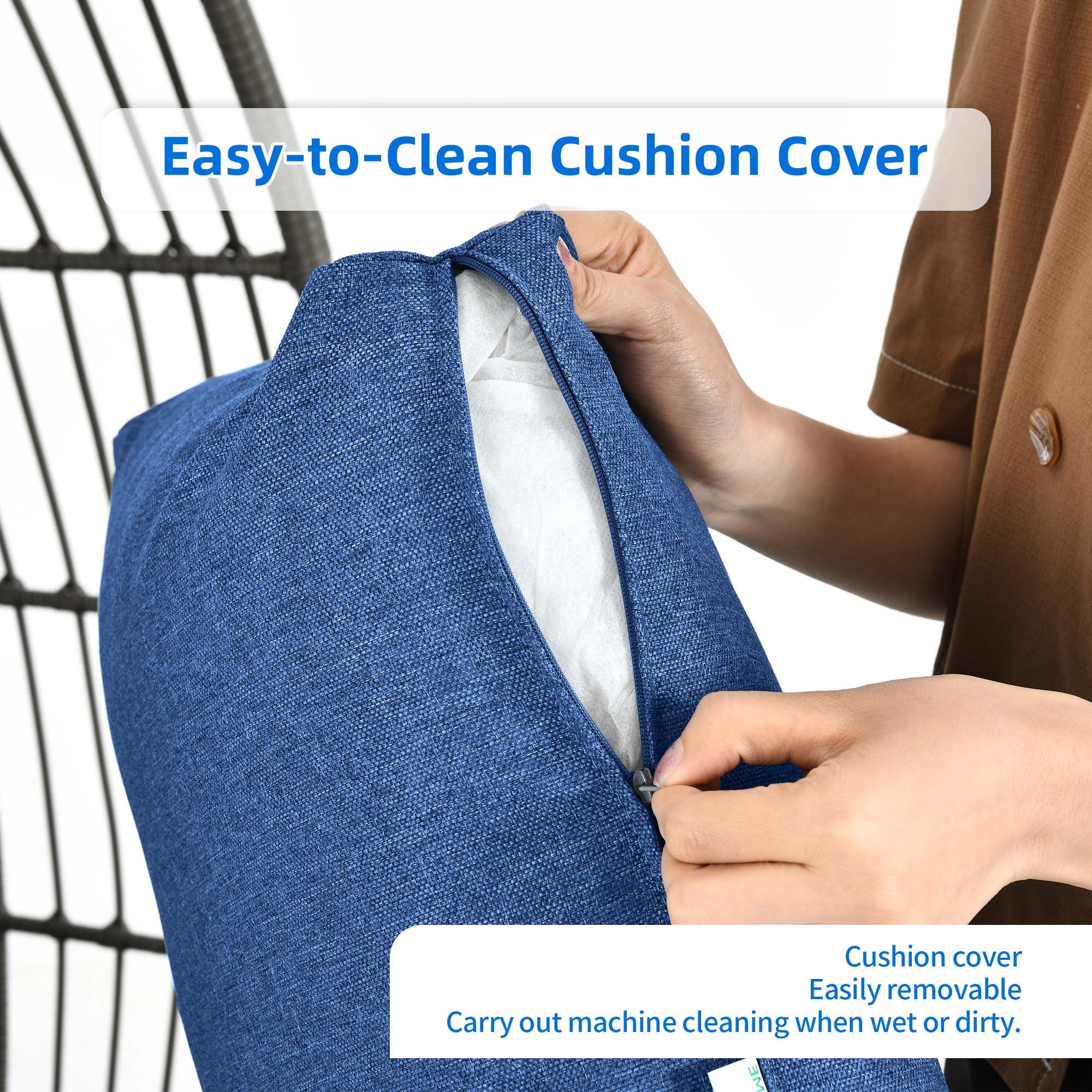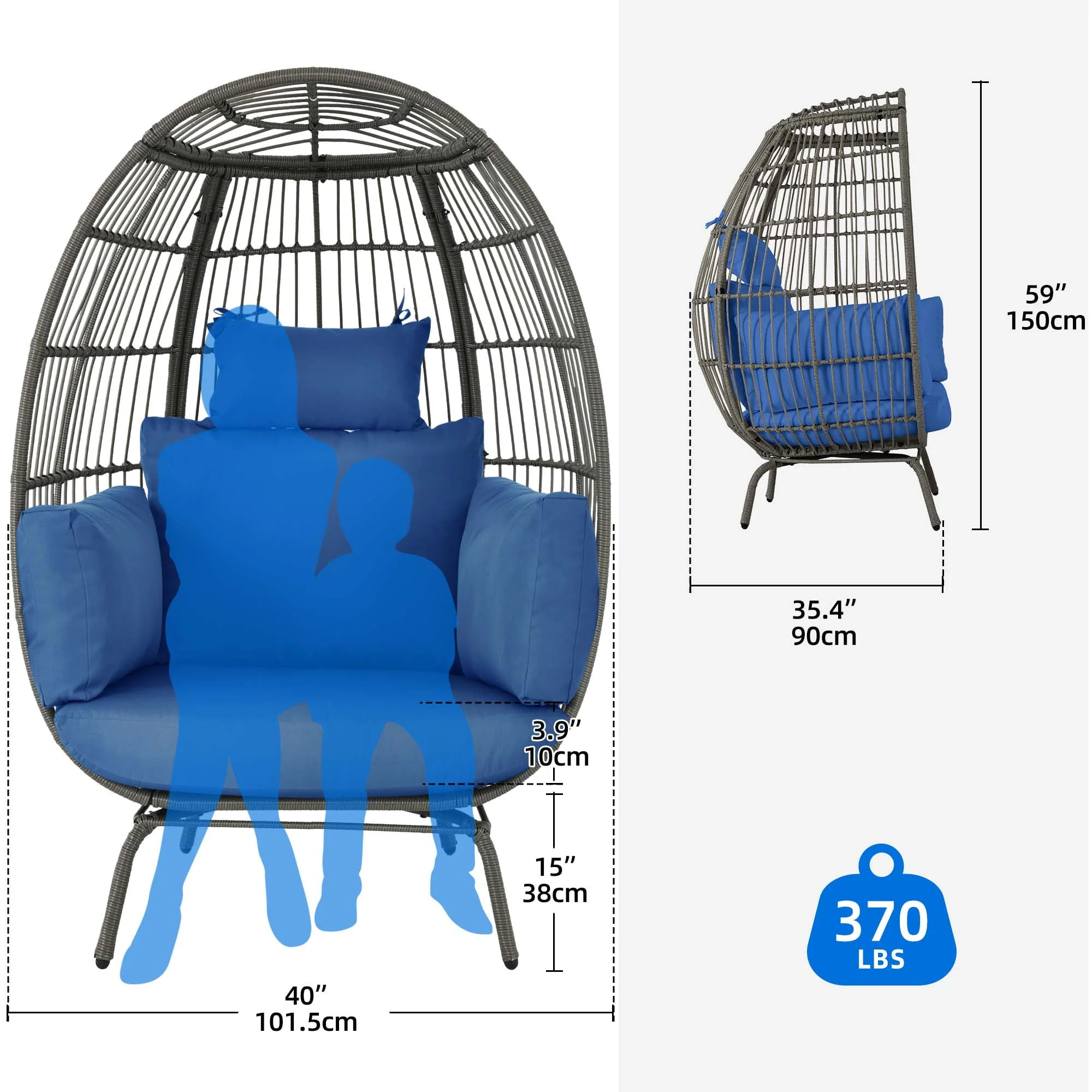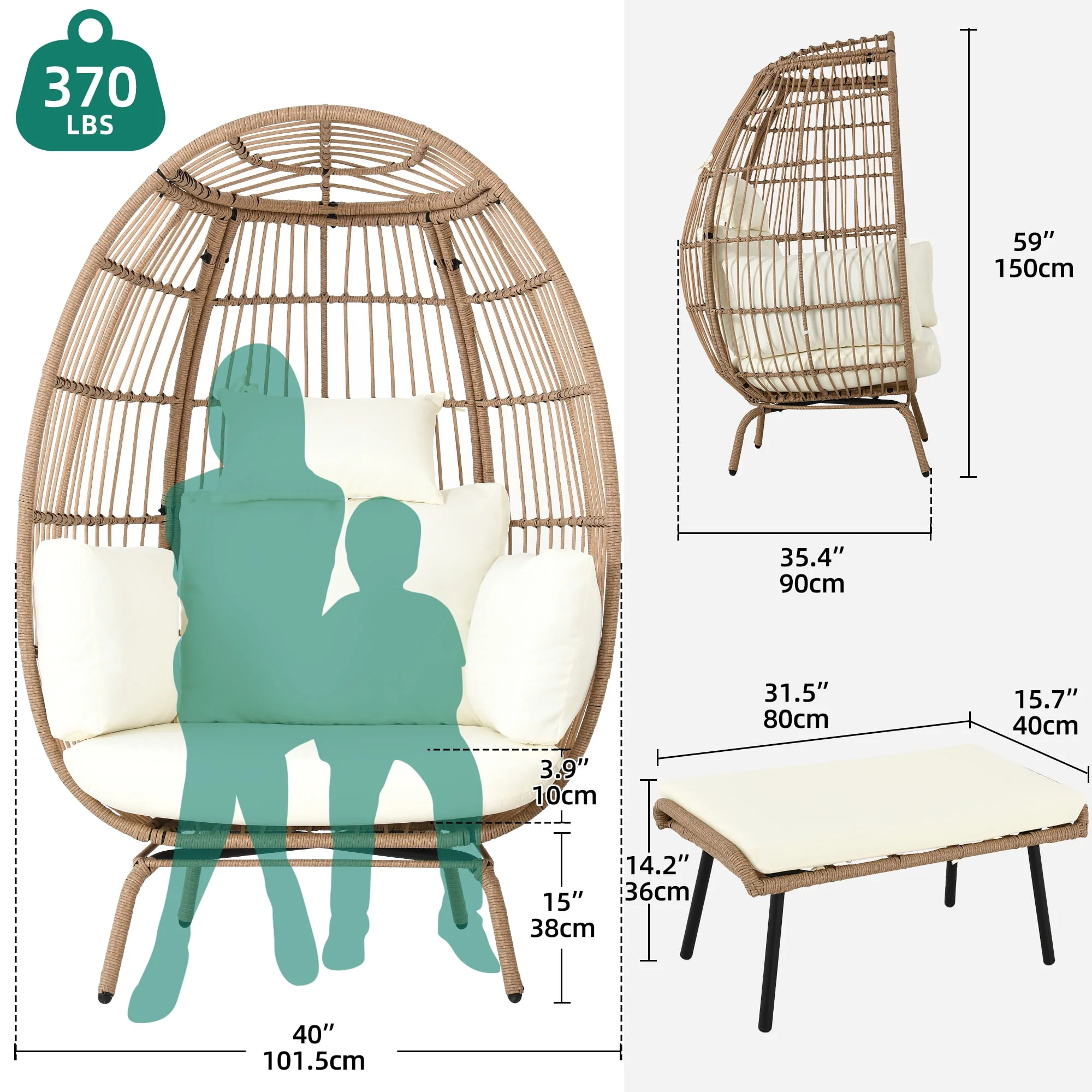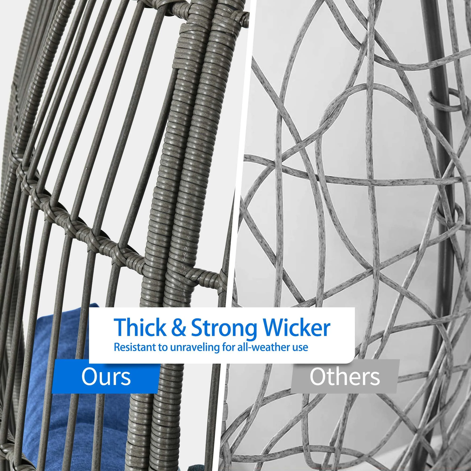Dextrus Wicker Egg Chair Outdoor Indoor Oversized Lounger with Stand and Cushions Egg Basket Chair for Patio Backyard Porch - Beige
