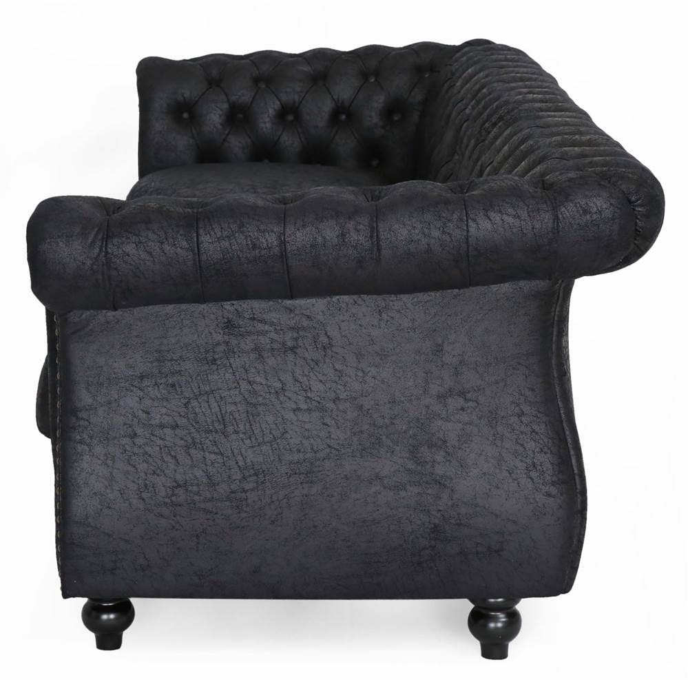 Noble House Somerville Chesterfield Tufted Sofa with Scroll Arms in Black - Megean