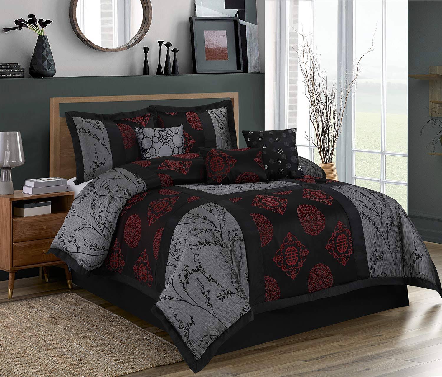 Hig 7-Piece King Size China Chic Jacquard Bed in A Bag with Patchwork Design - Chinoiserie and Branch Pattern - Hypoallergenic - - Avayadevconnect
