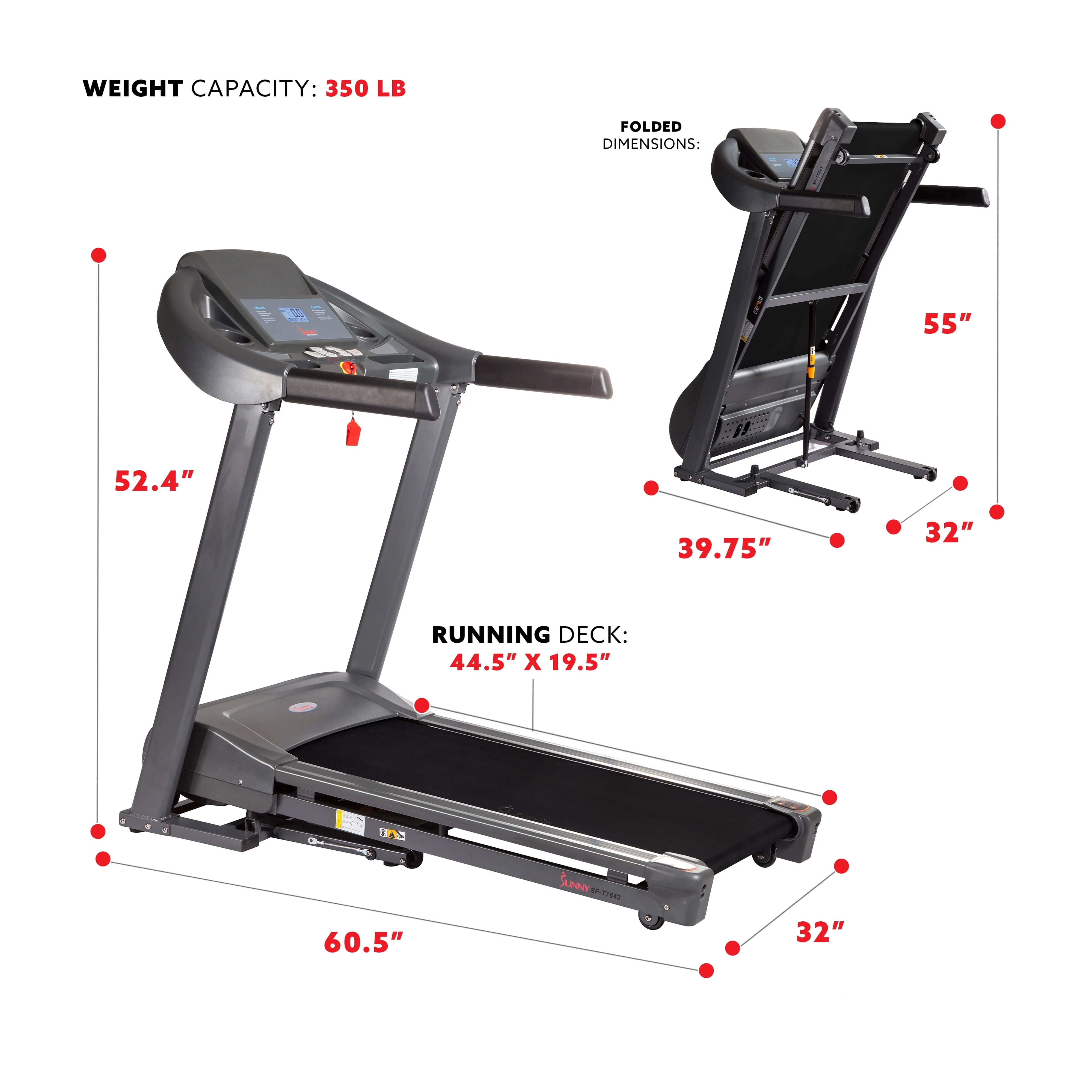 Sunny Health & Fitness Heavy Duty Treadmill for Walking and Running, Home Exercise, 350 lb Capacity & Device Holder, SF-T7643