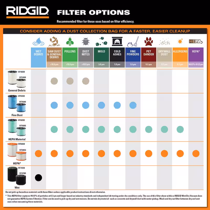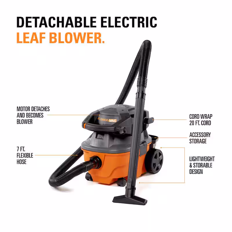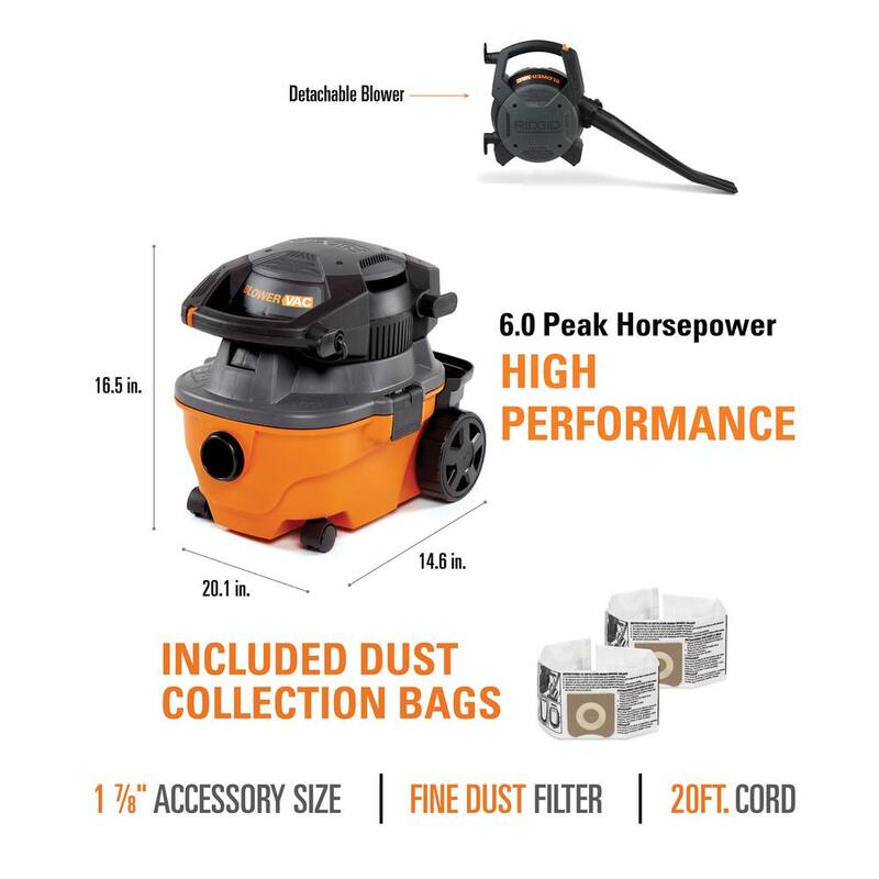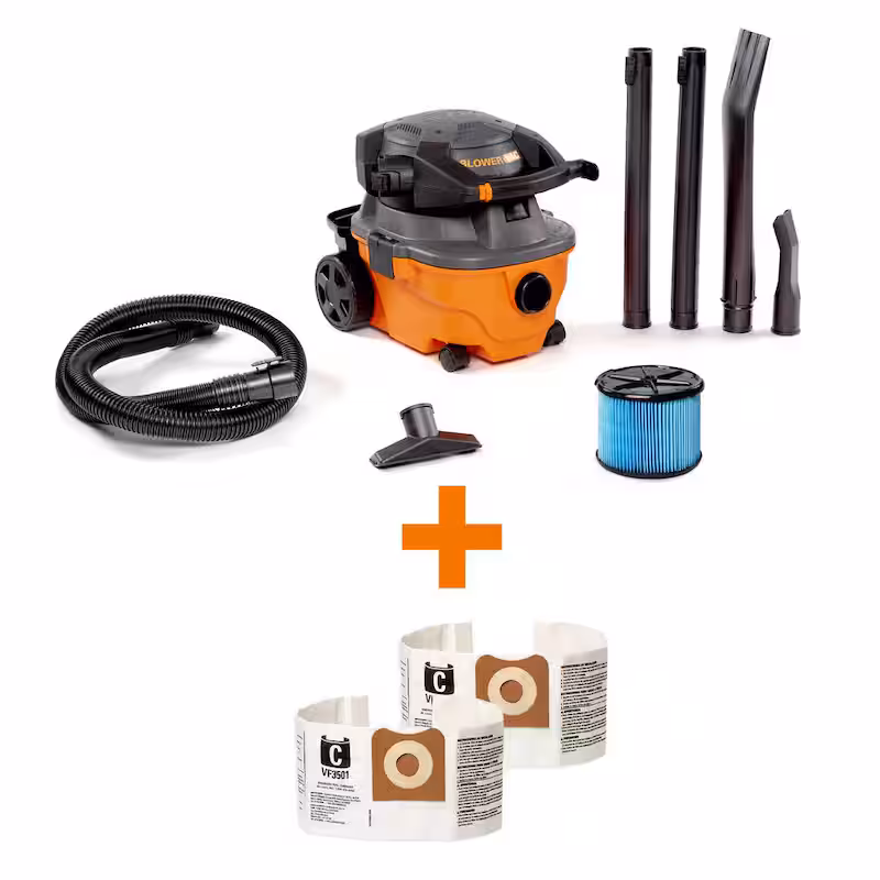4 Gallon 6.0 Peak HP Wet/Dry Shop Vacuum with Detachable Blower, Fine Dust Filter, Two Dust Bags, Hose, and Accessories
