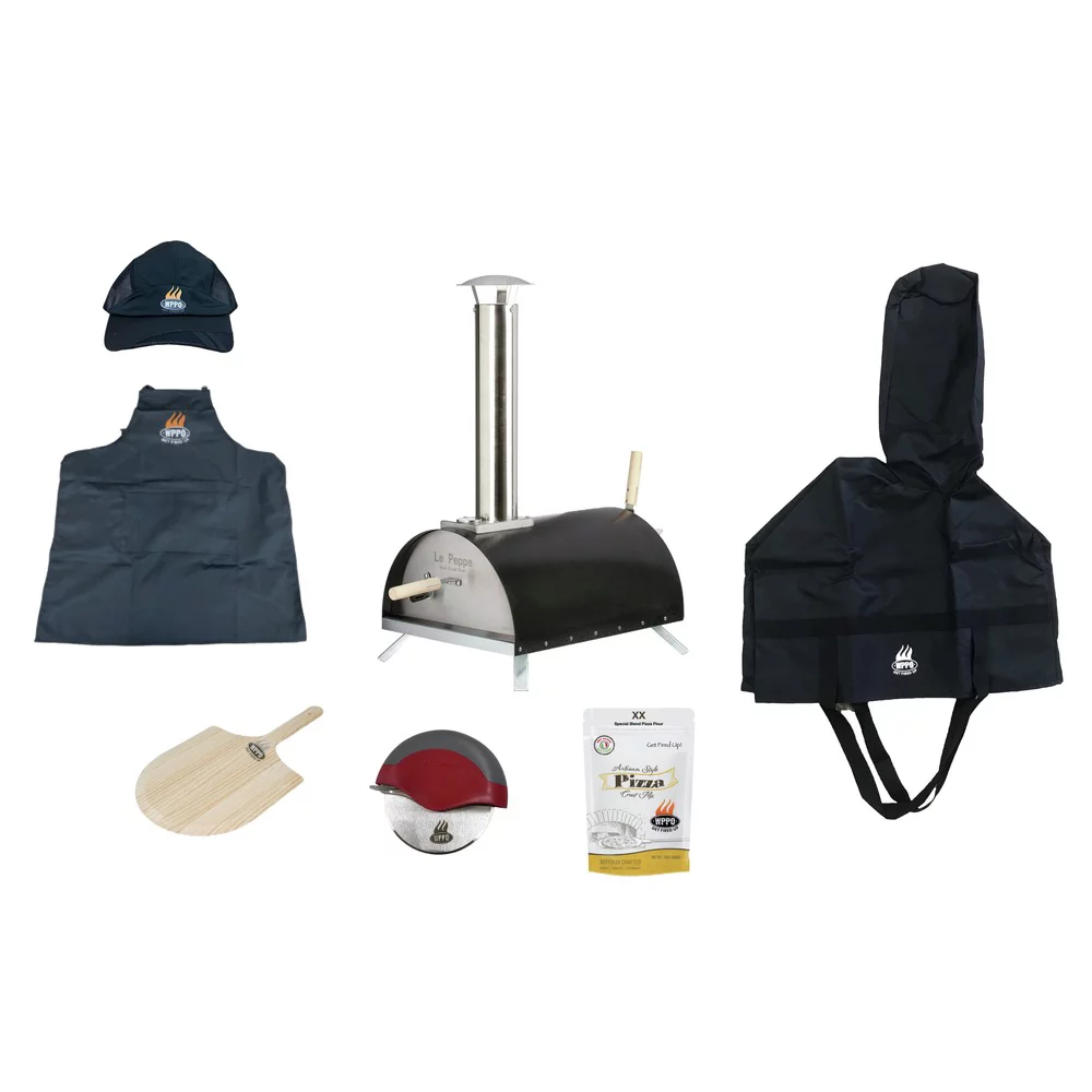 WPPO WKE-01CPO-BK 7-Piece 20 in. x 27 in. x 32 in. Le Peppe Portable Wood Fired Pizza Oven Kit - Black