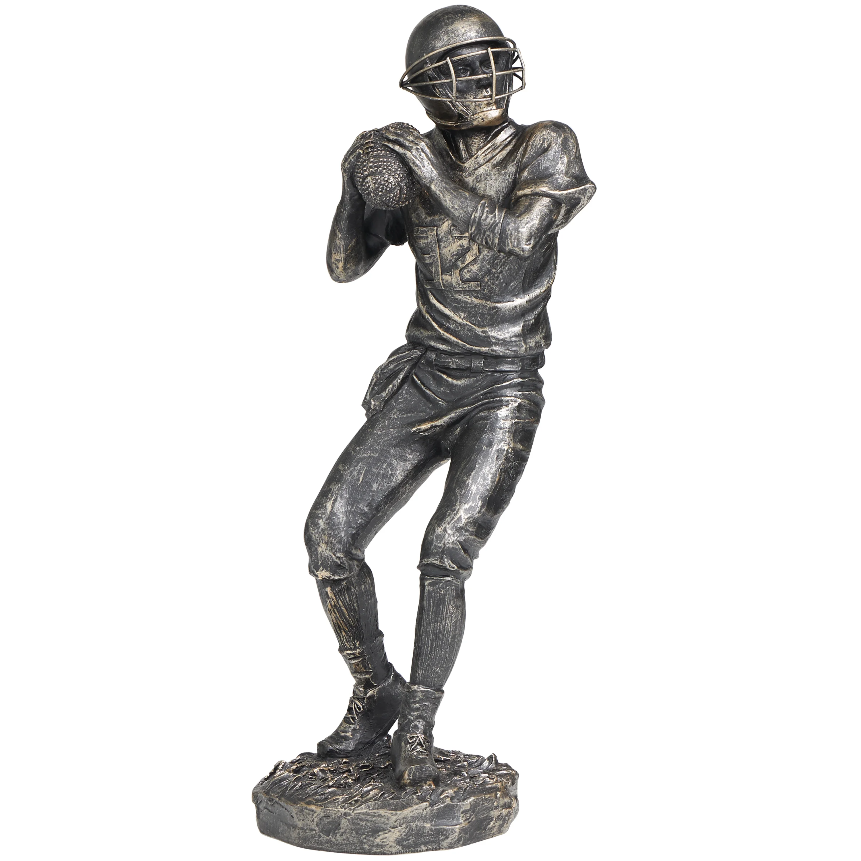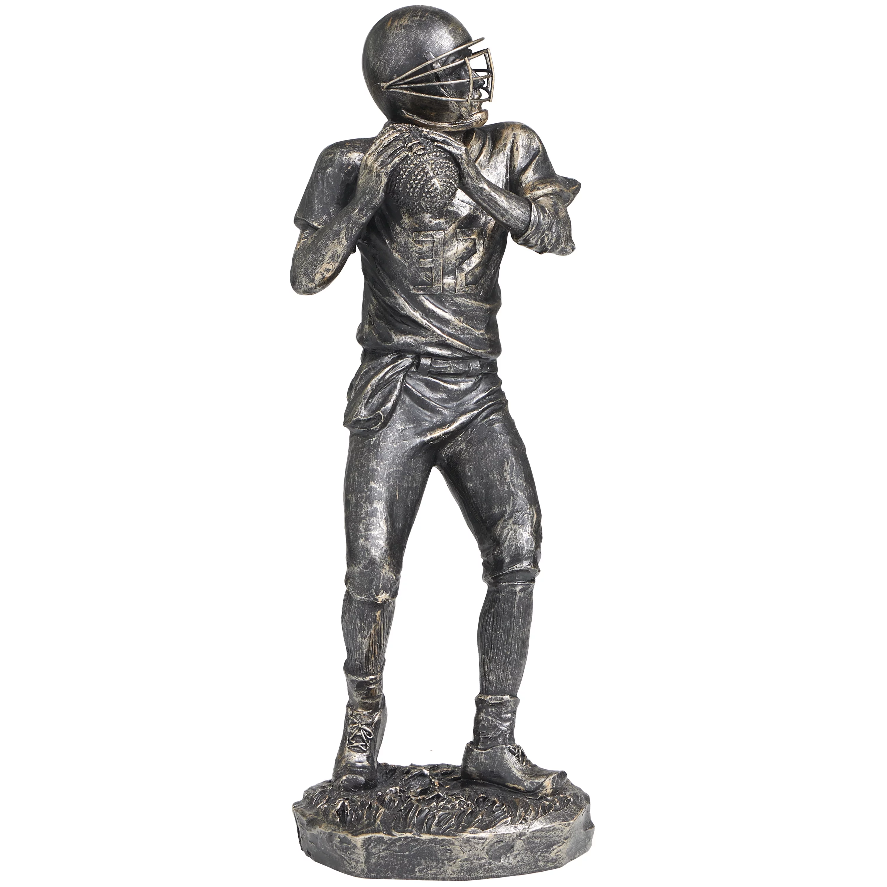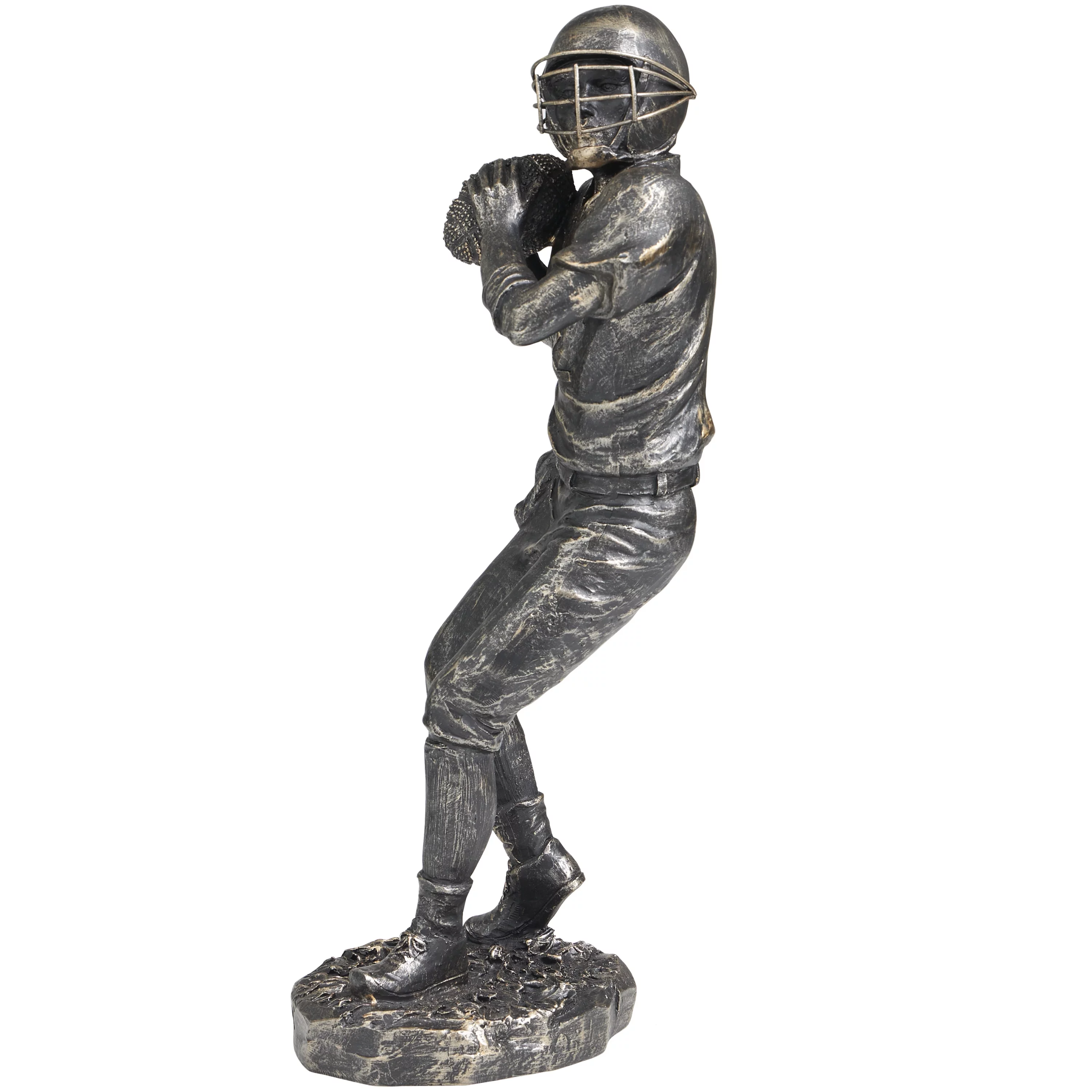 6" x 16" Silver Polystone Football Player Sculpture, by DecMode - Curated Treasures Market