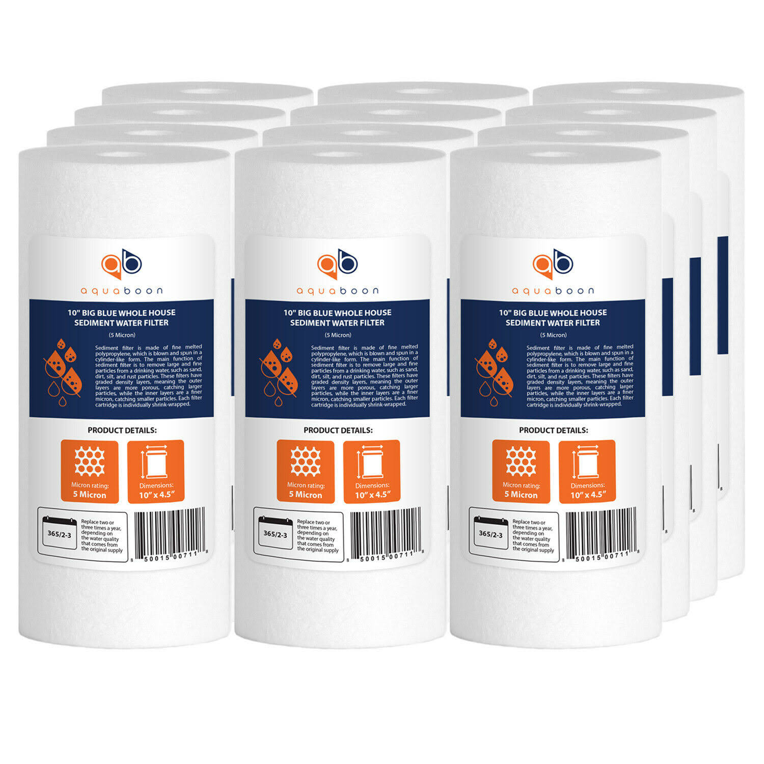 12-Pack of Aquaboon Sediment Water Filter Whole House Big Blue 5 Micron 10 inchx4.5 inch - Avayadevconnect