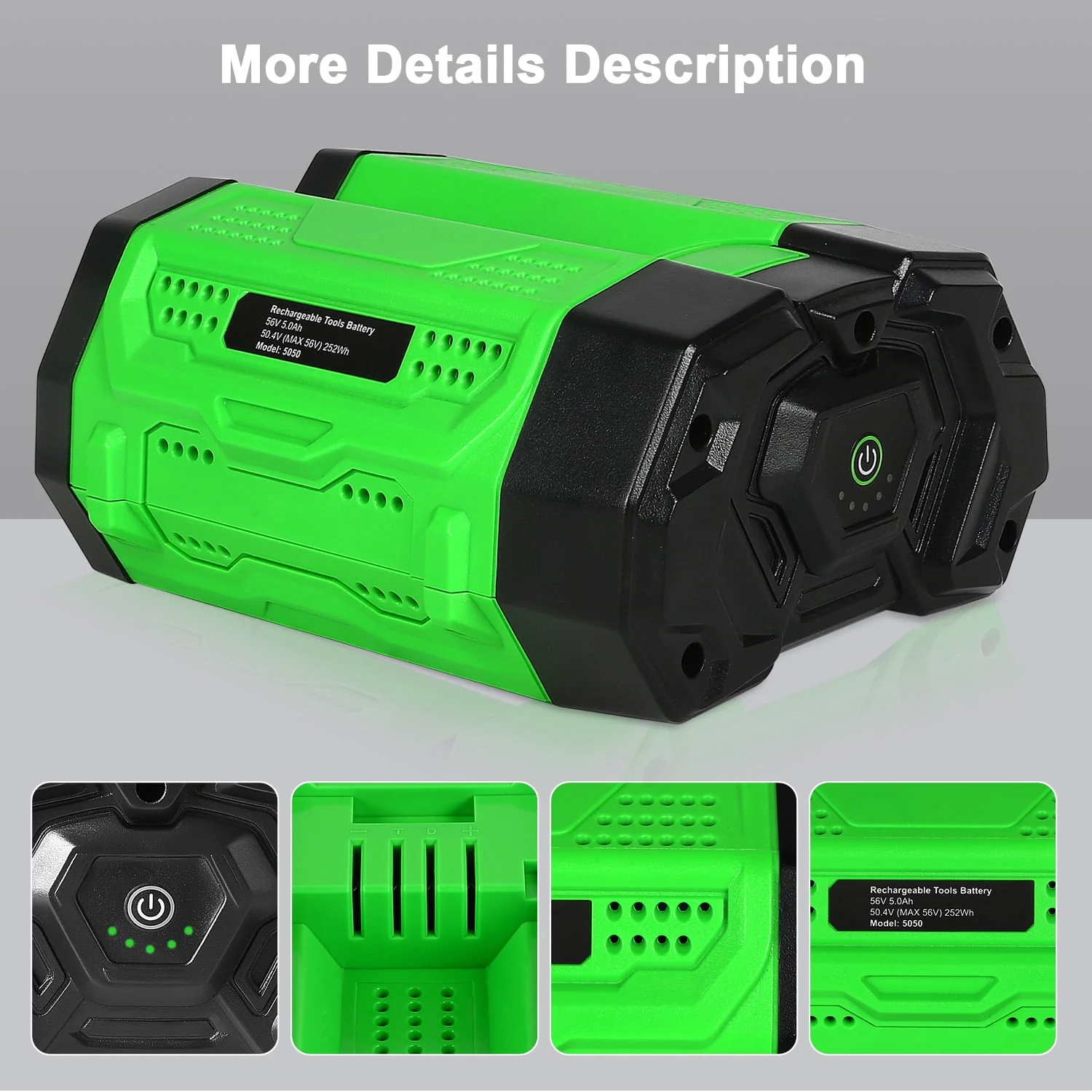 SUNBAT 56V 5000mAh Replacement Battery for EGO BA2800 BA4200 BA1400, 5.0Ah Lithium Ion Battery Compatible with All EGO Power Tools 56V,2Pack