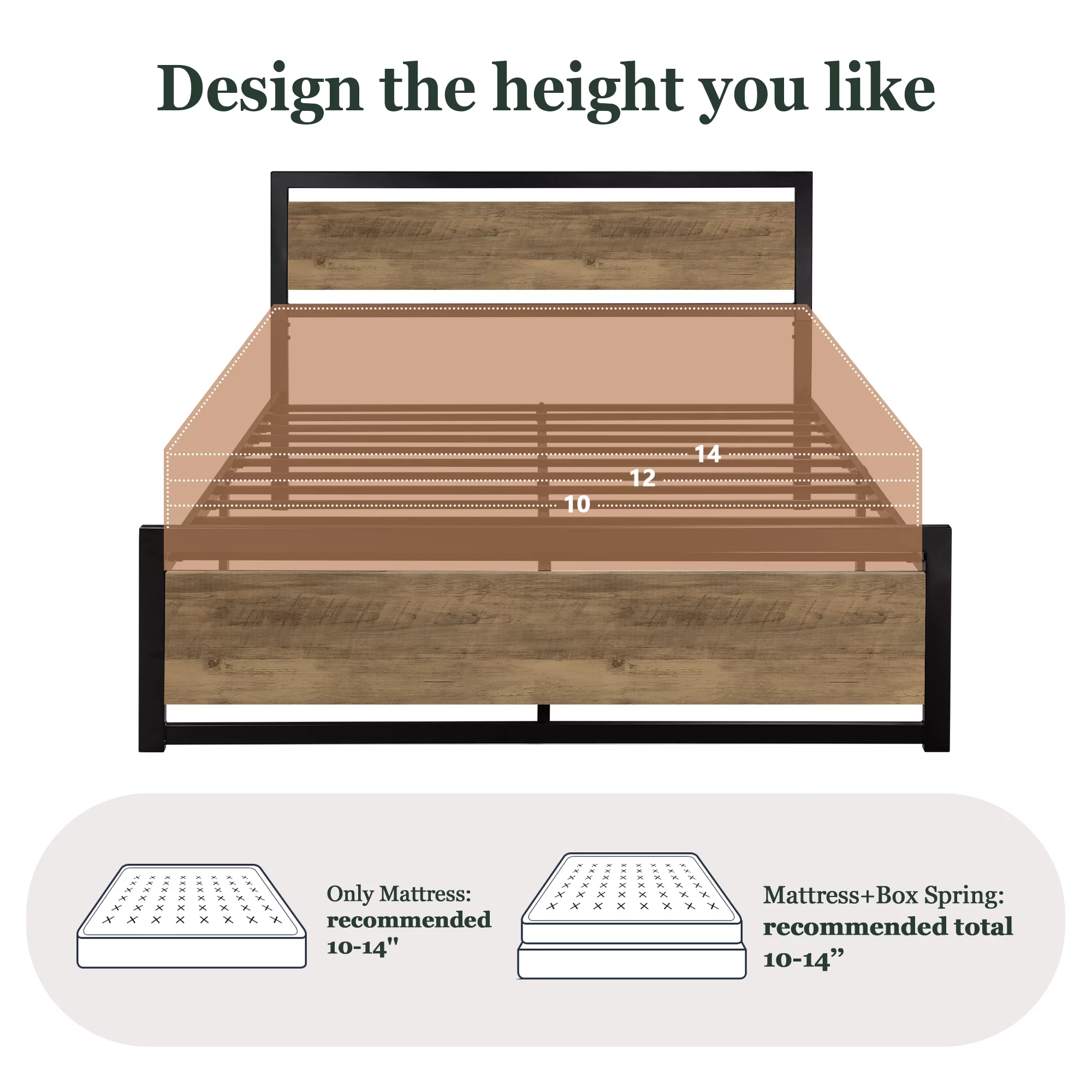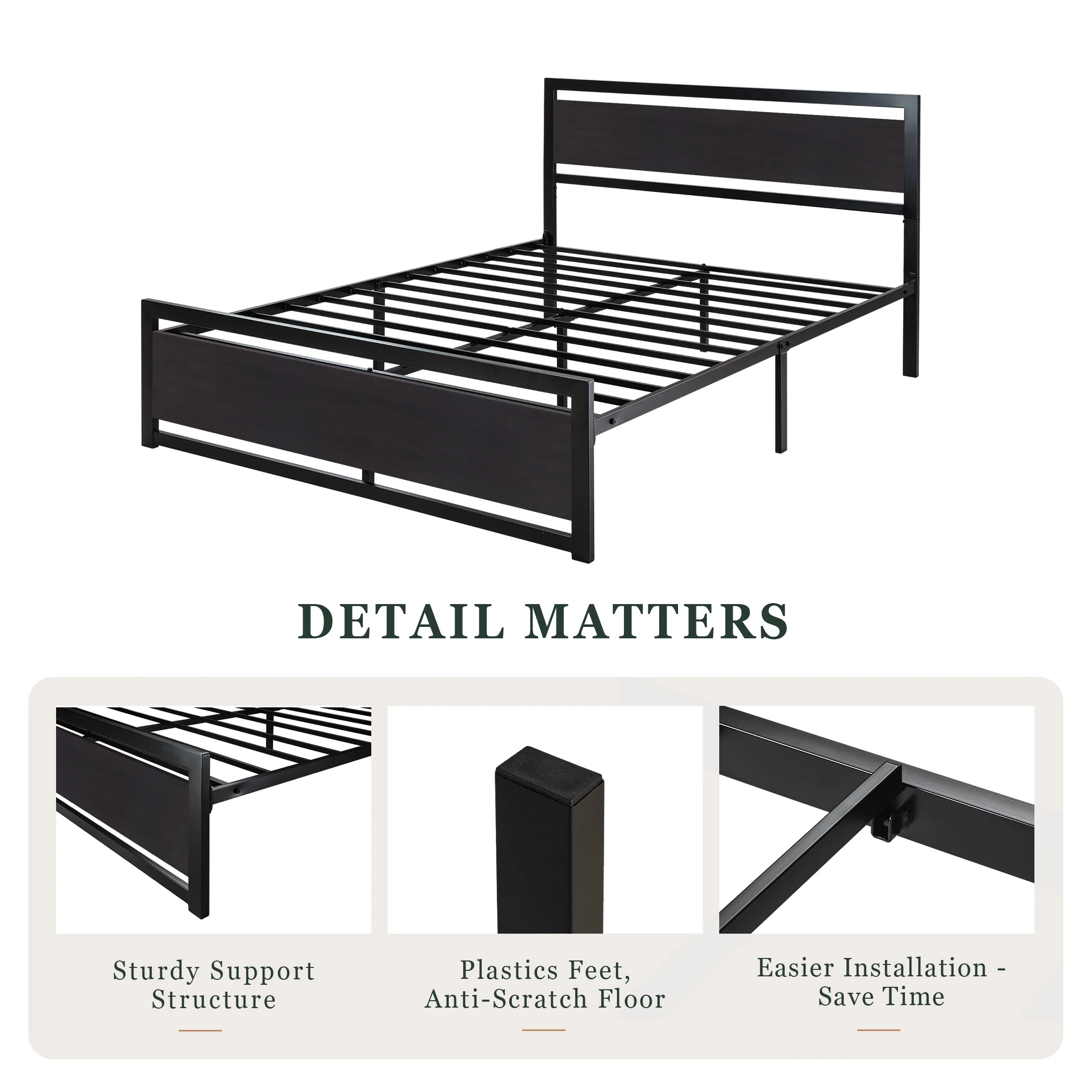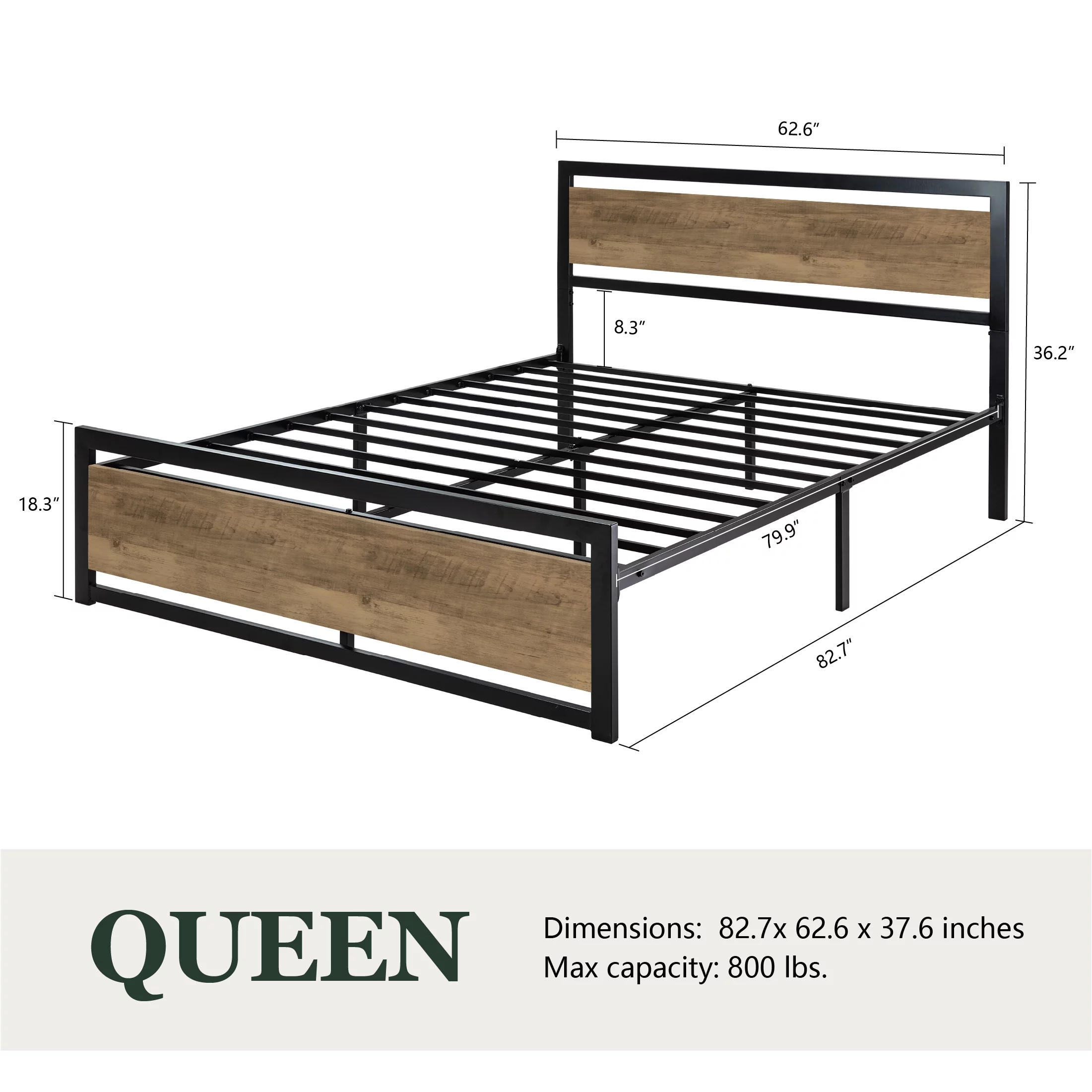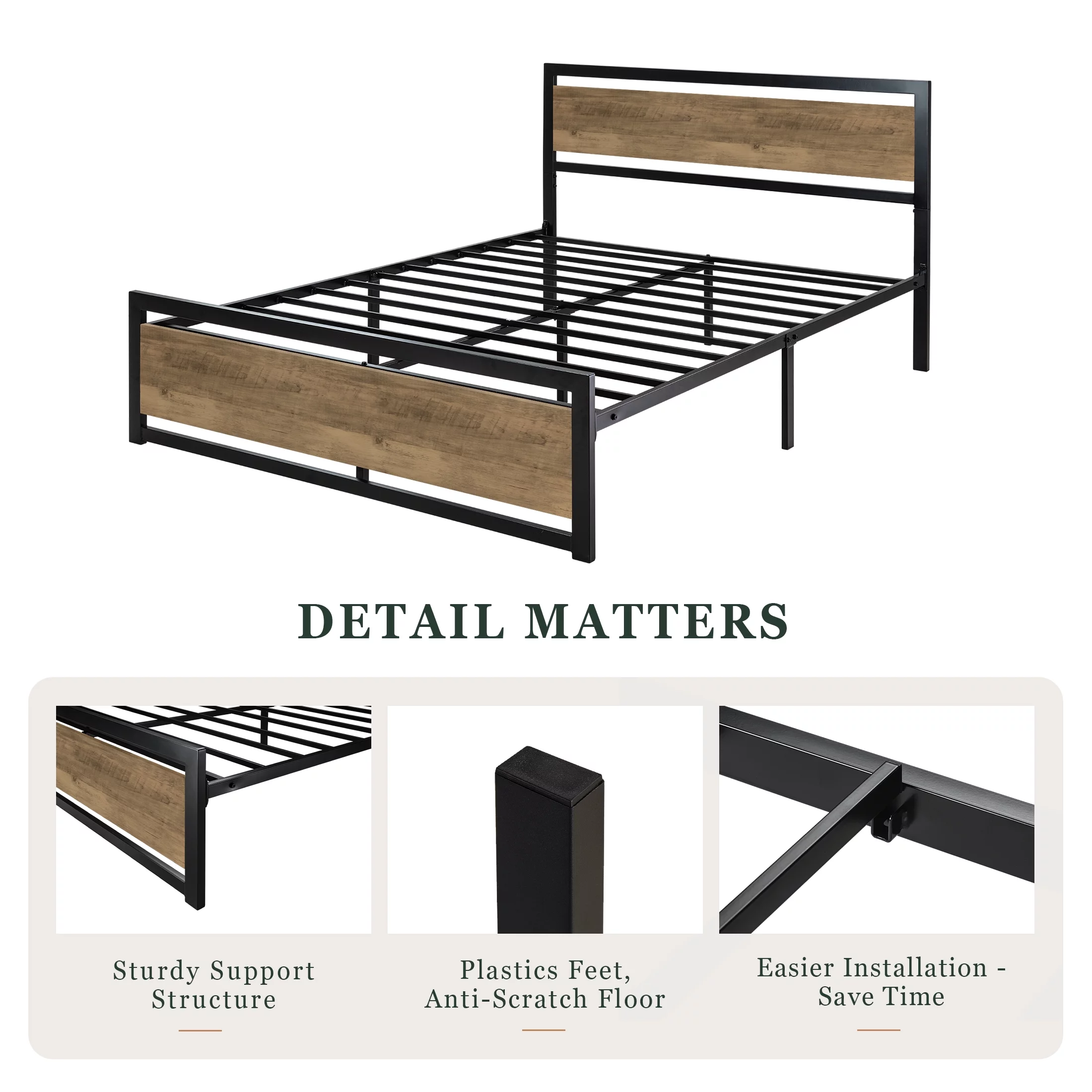 Amolife Queen Size Metal Platform Bed Frame with Headboard & Footboard, Rustic Brwon