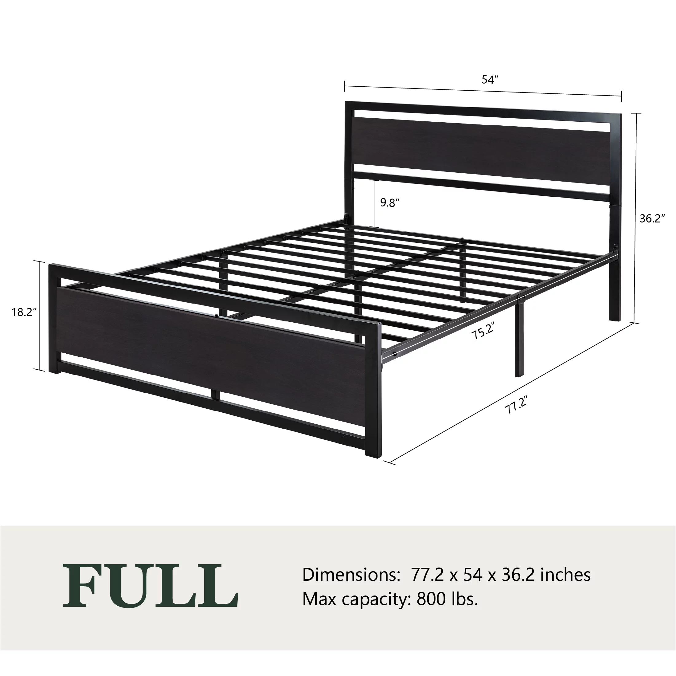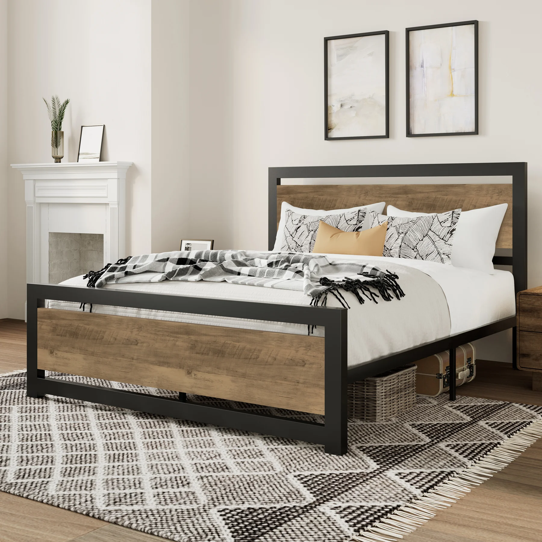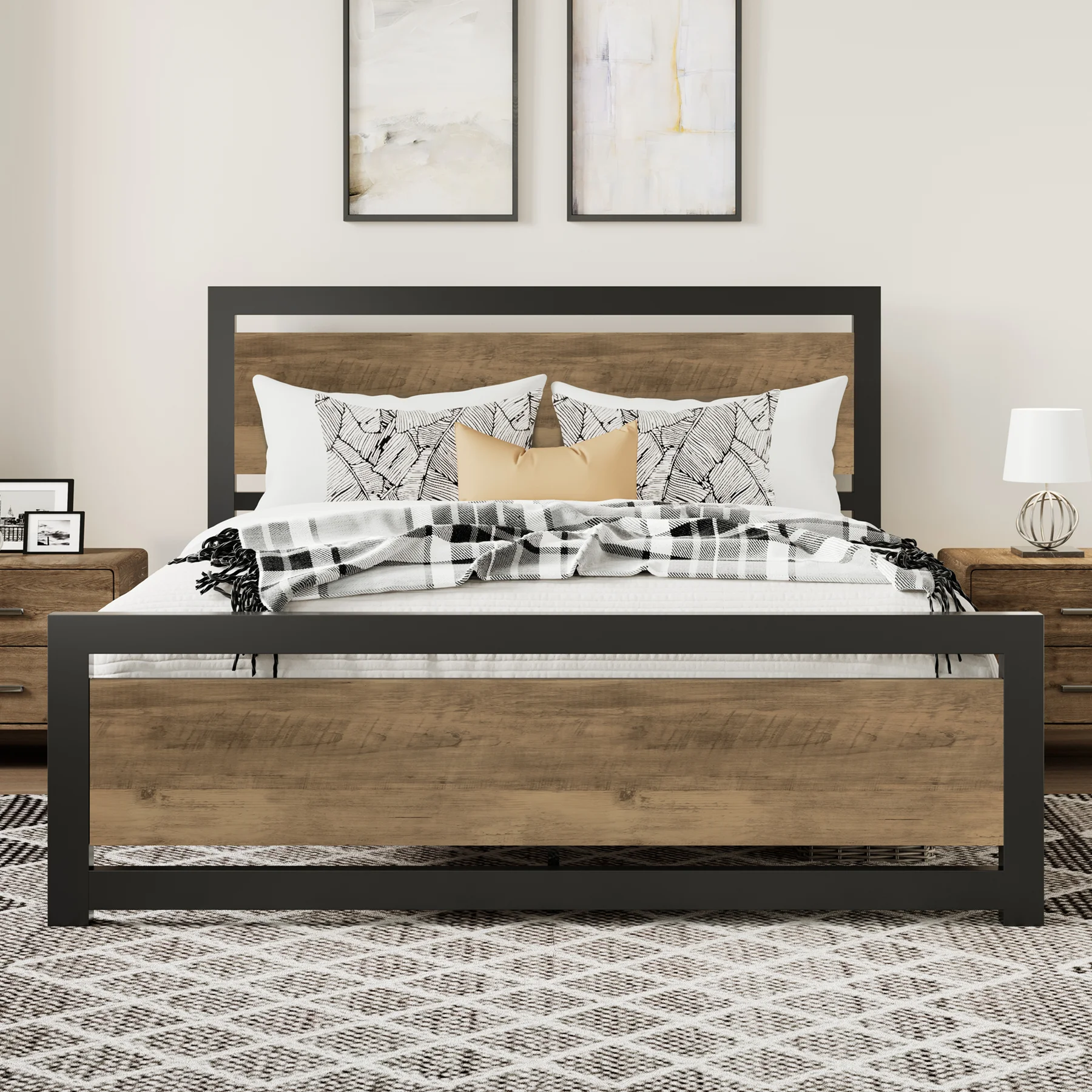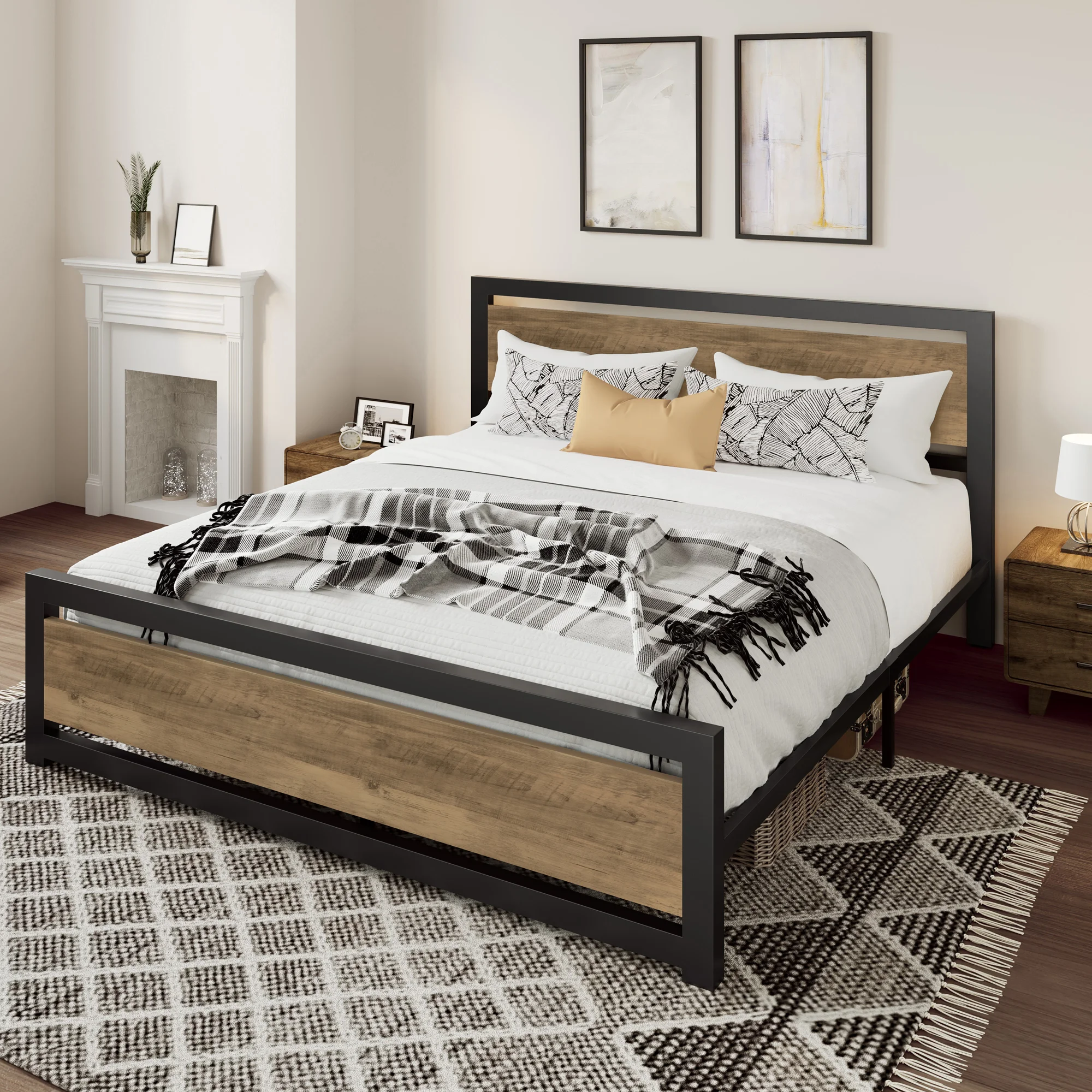 Amolife Queen Size Metal Platform Bed Frame with Headboard & Footboard, Rustic Brwon