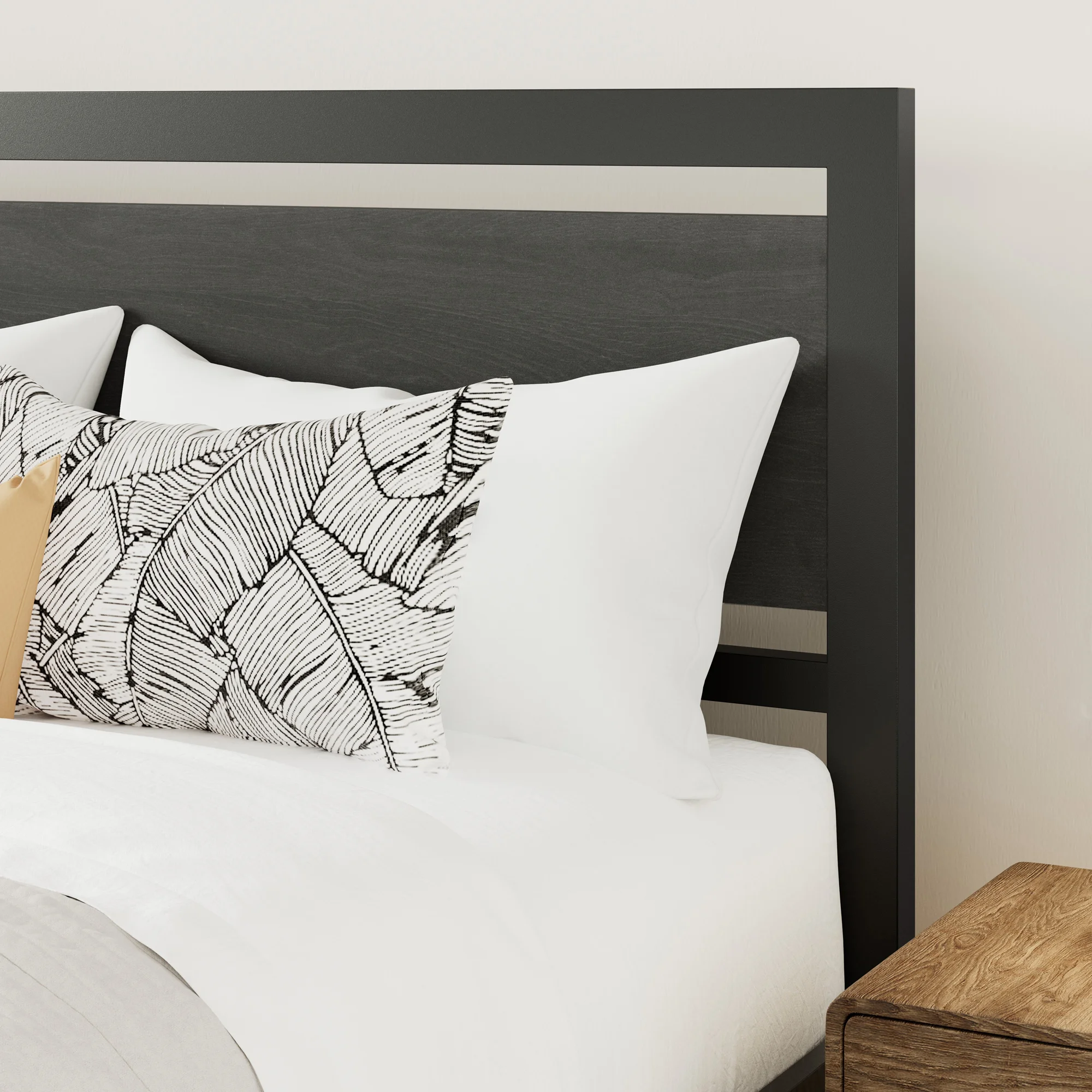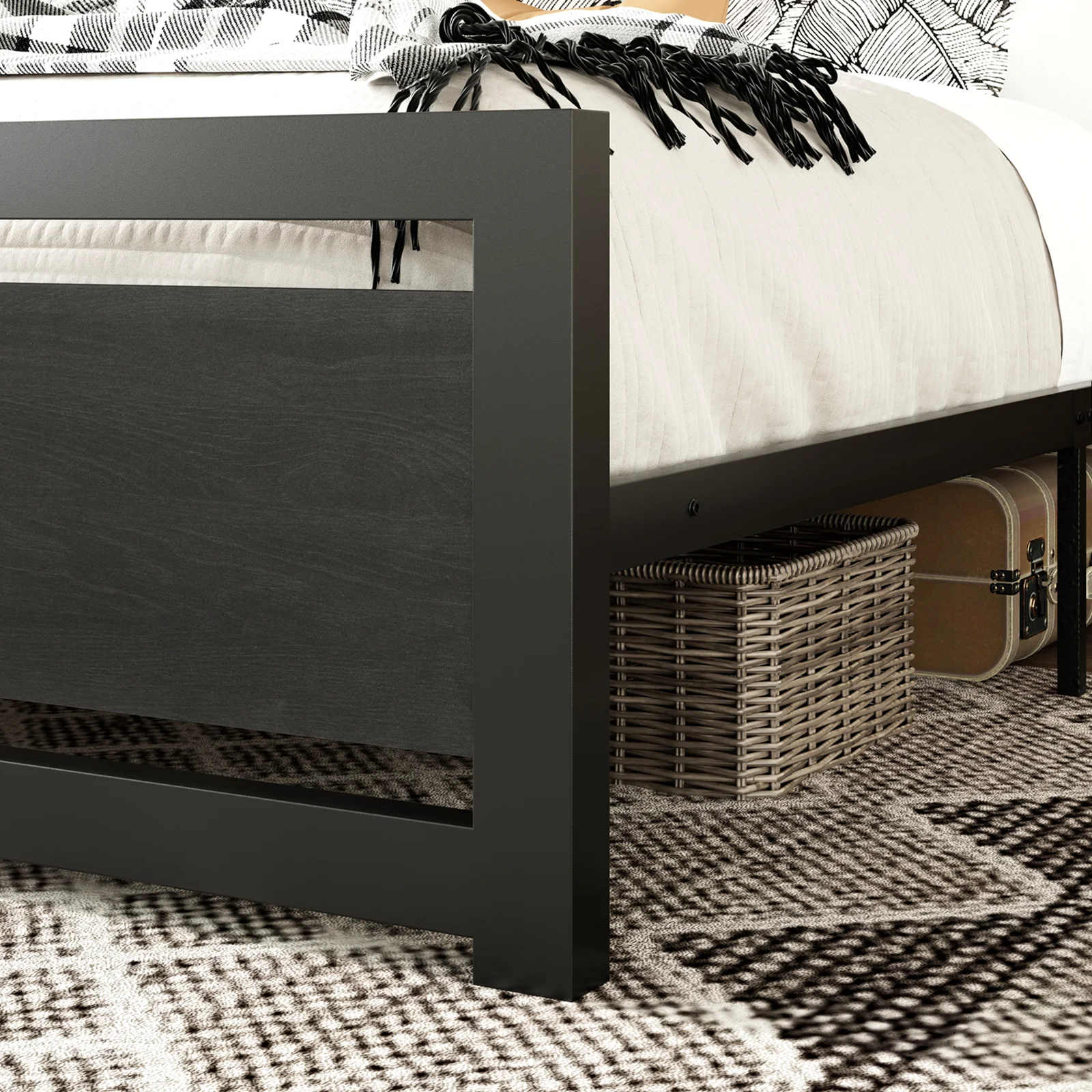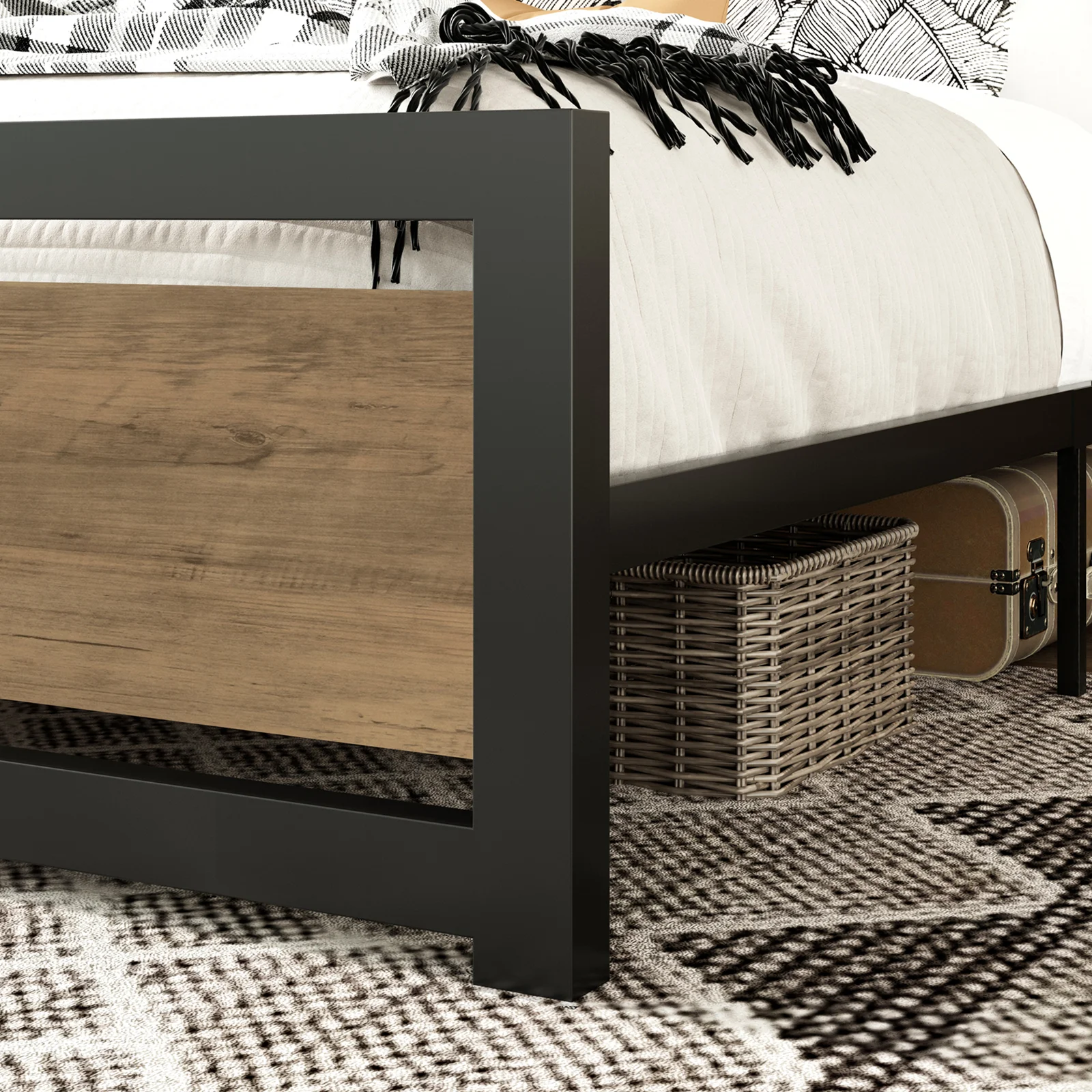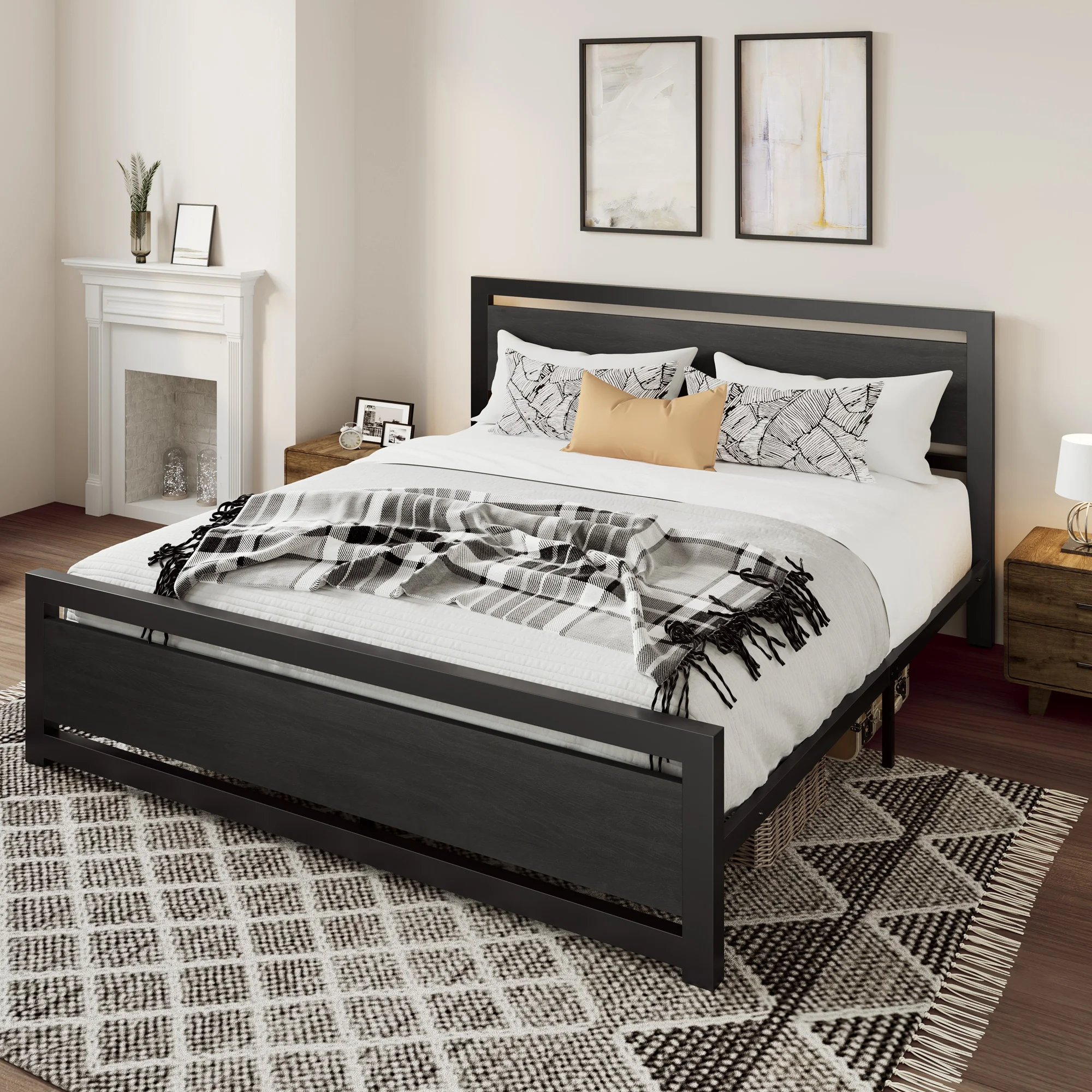 Amolife Queen Size Metal Platform Bed Frame with Headboard & Footboard, Rustic Brwon