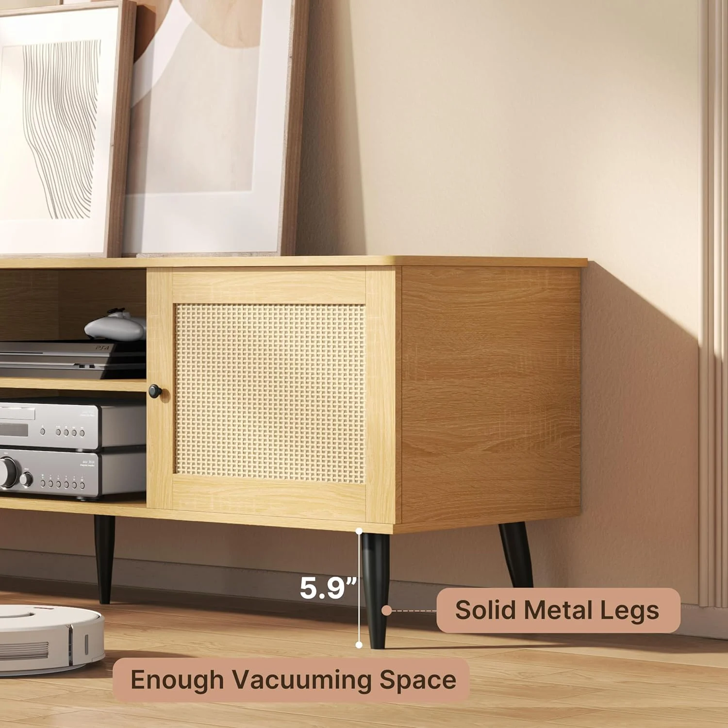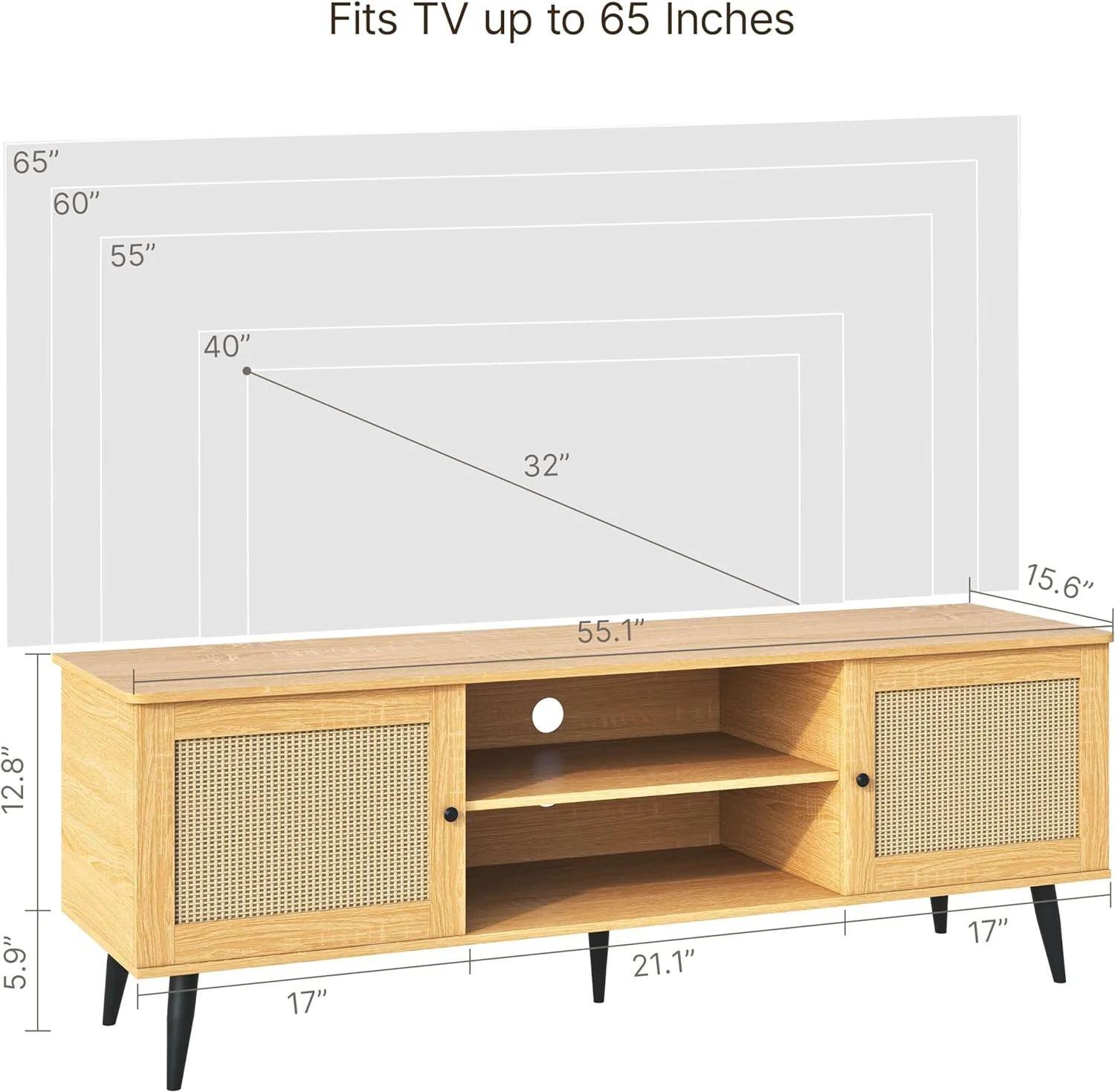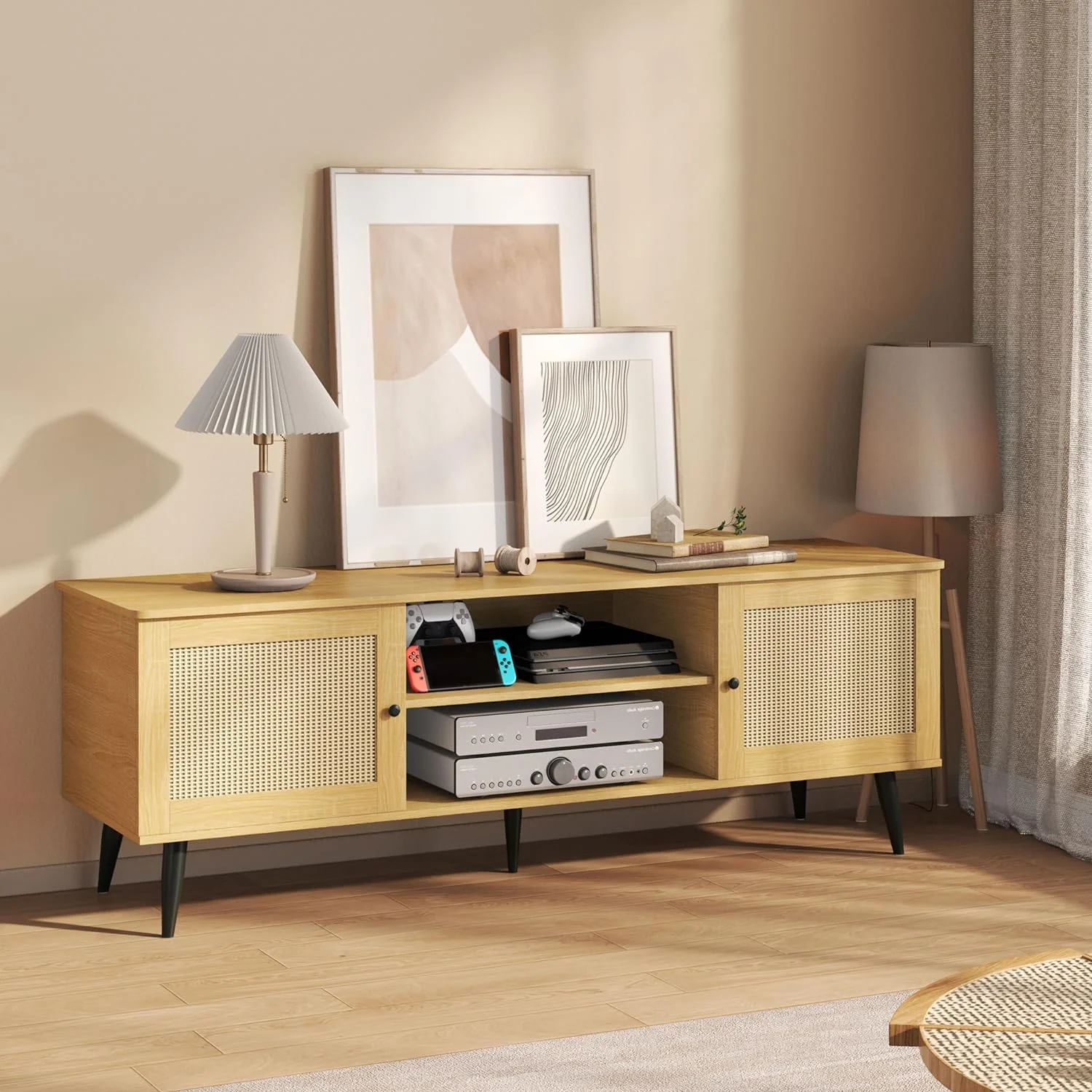 Aiho Rattan 55'' TV Stand , Entertainment Center for Living Room with 2 Cabinets