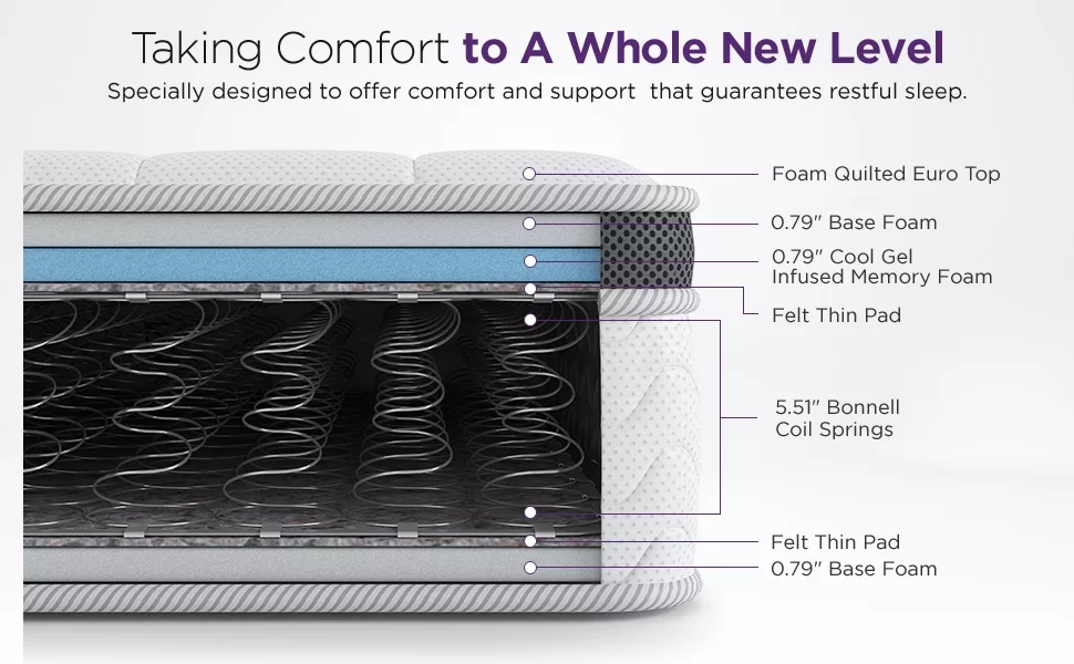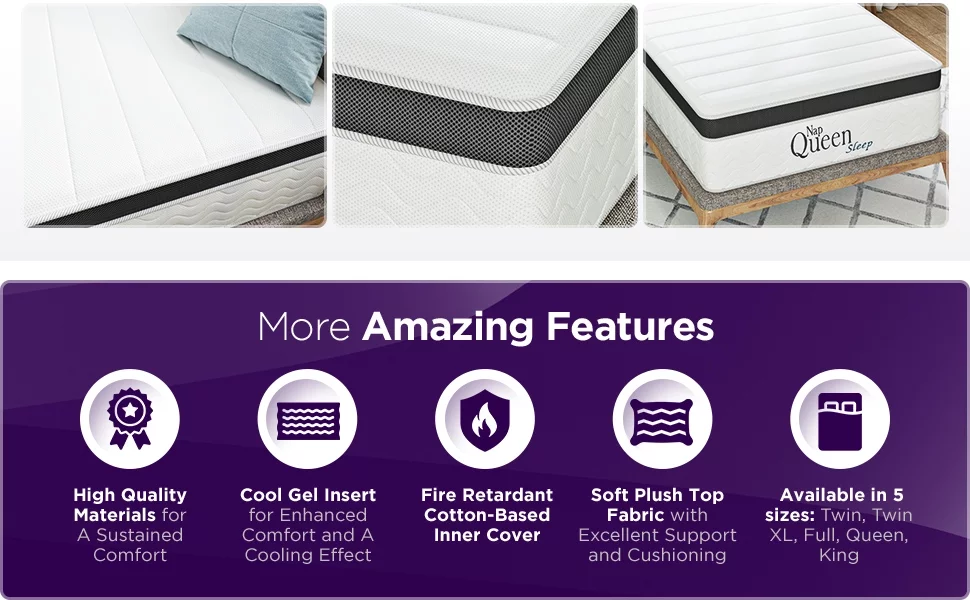 NapQueen Queen Mattress, Maxima 8” Hybrid of Cool Gel Infused Memory Foam and Coils Mattress, Adult, CertiPUR-US Certified, Mattress in a Box