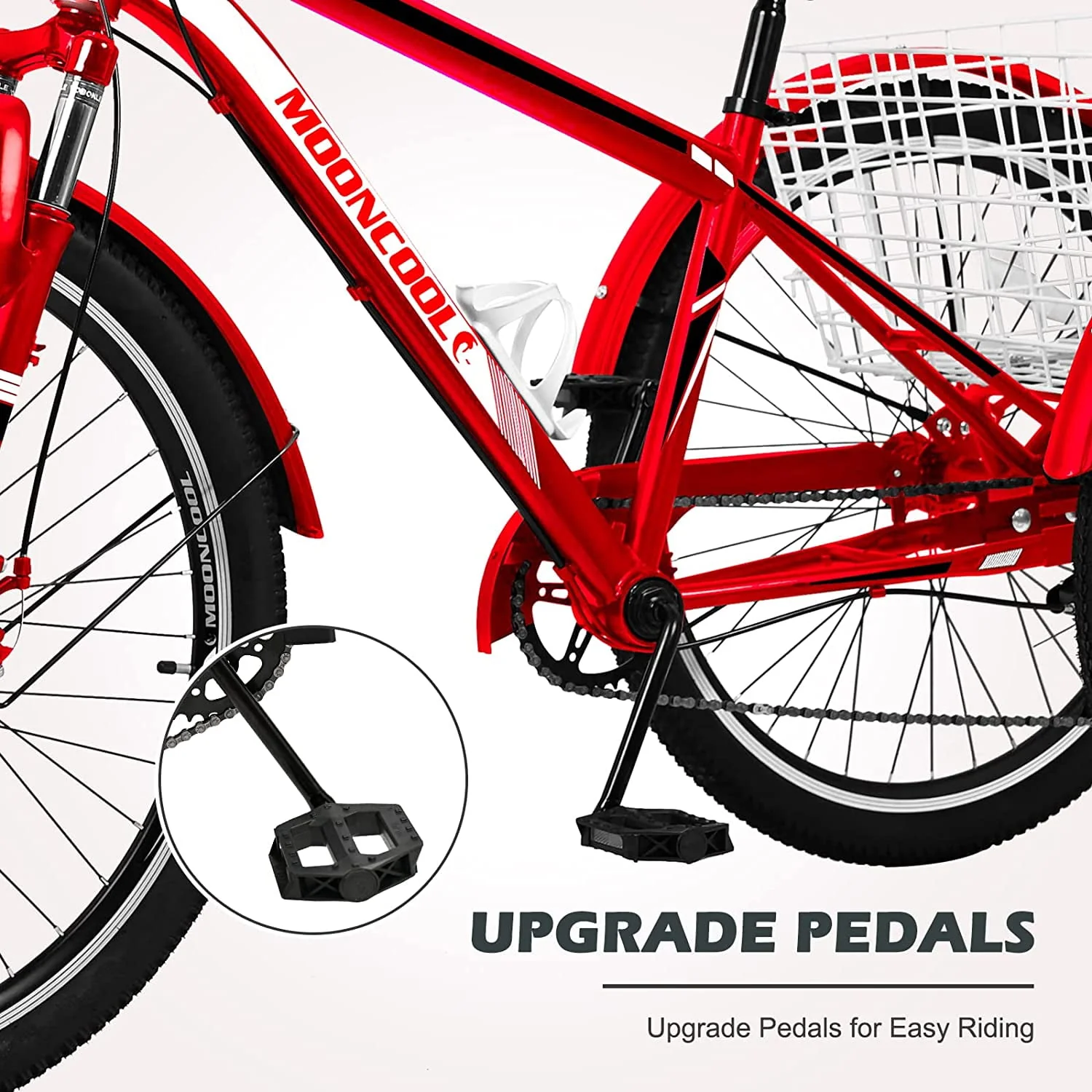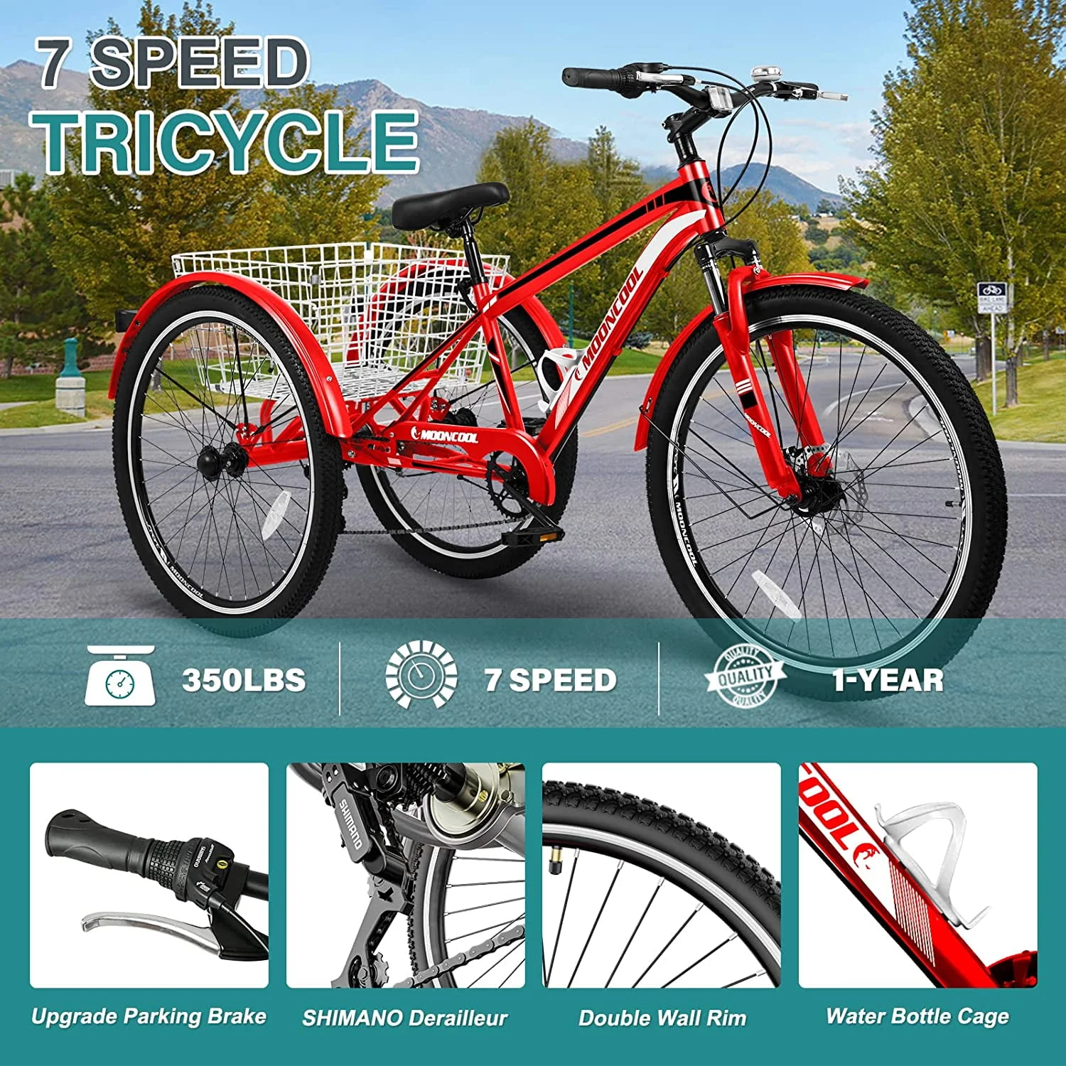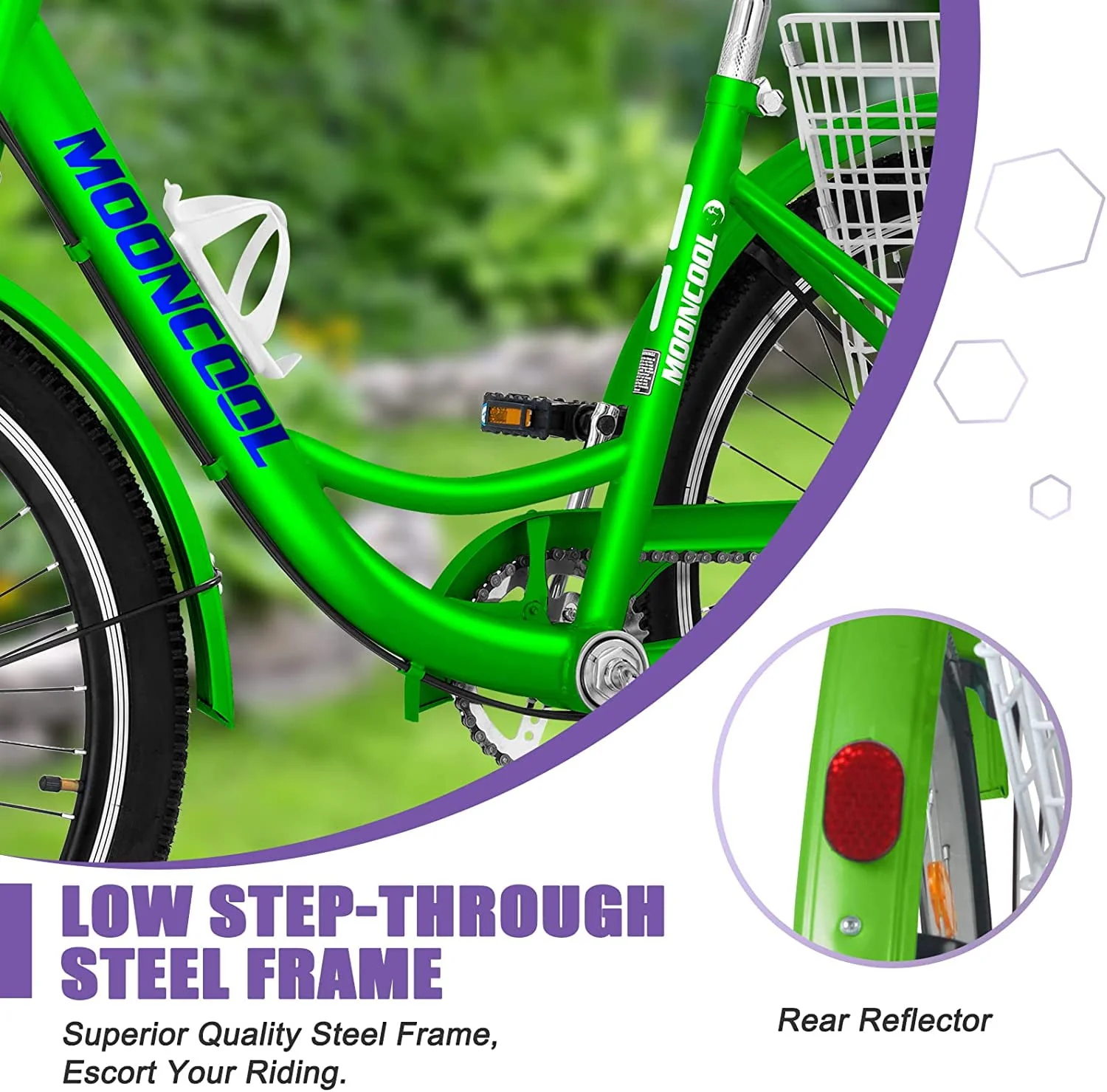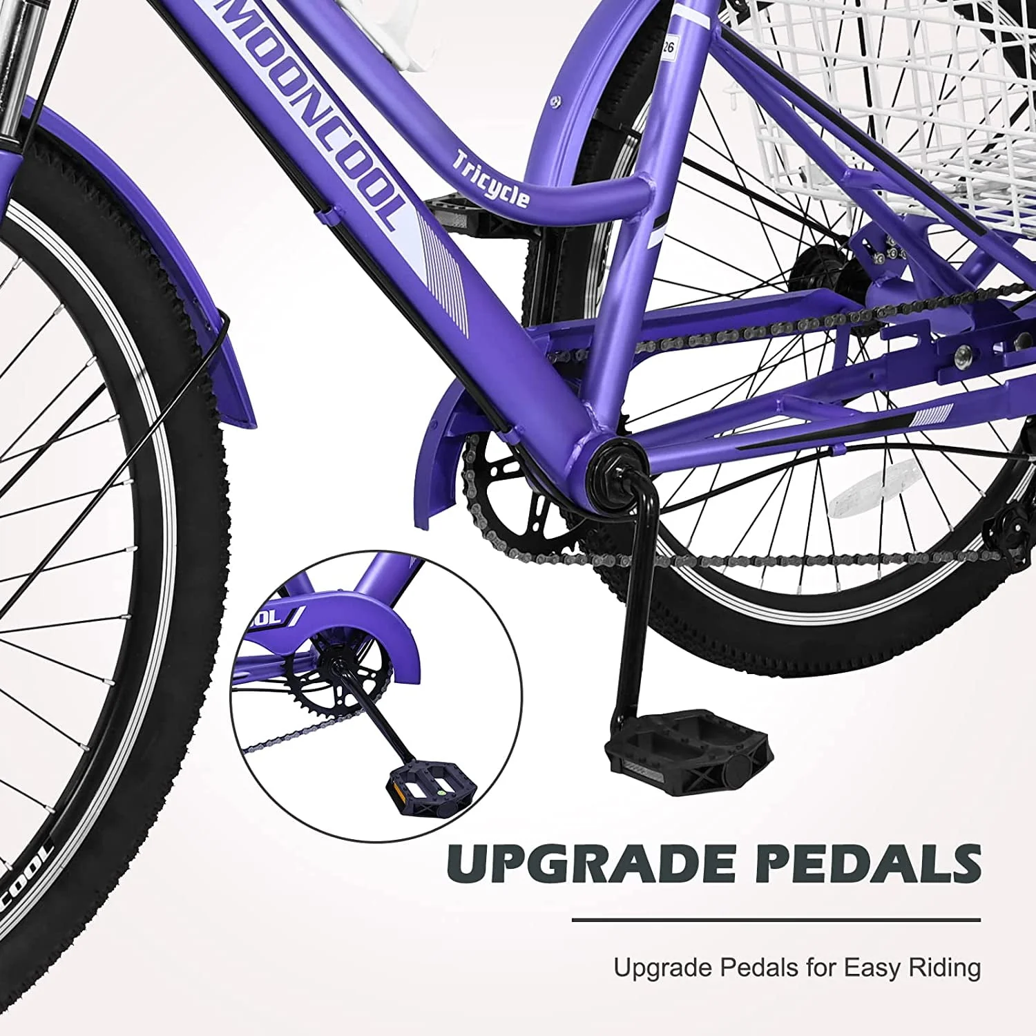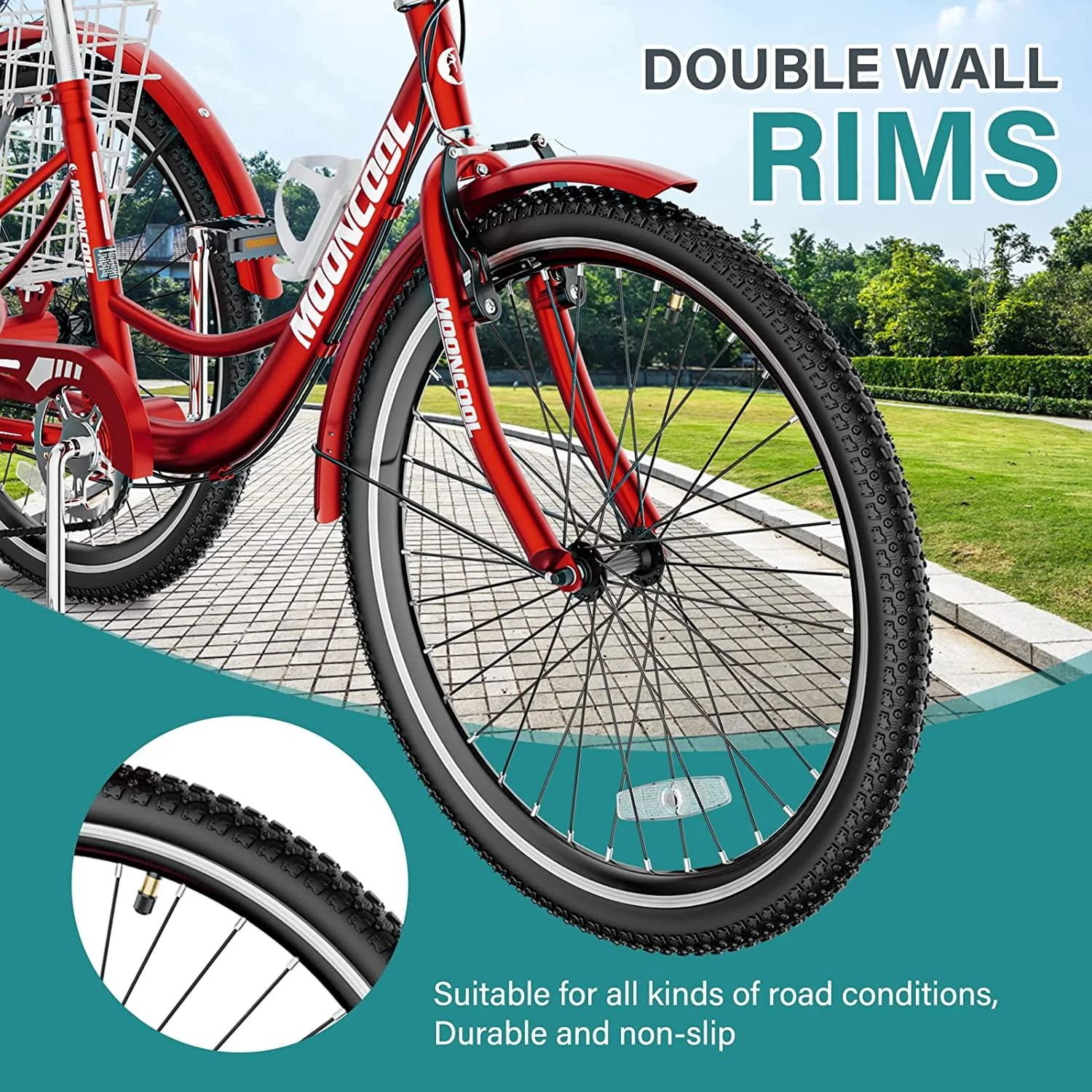 Mooncool Adult Tricycle 20/24/26 inch 7 Speed, Three Wheel Bicycle for Adult, Trike Cruiser W/ Tools & Big Basket for Exercise Shopping Picnic Outdoor Activities