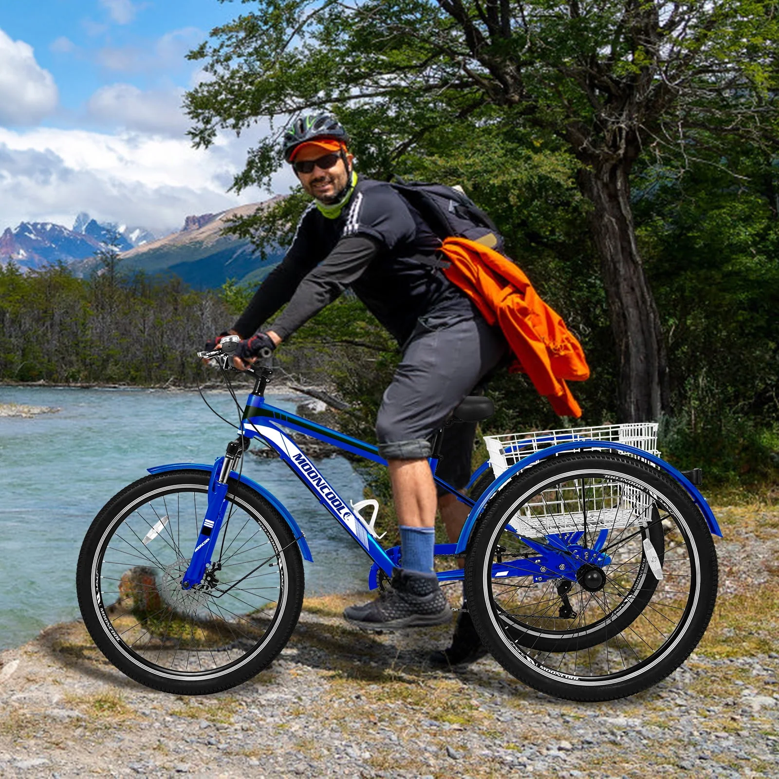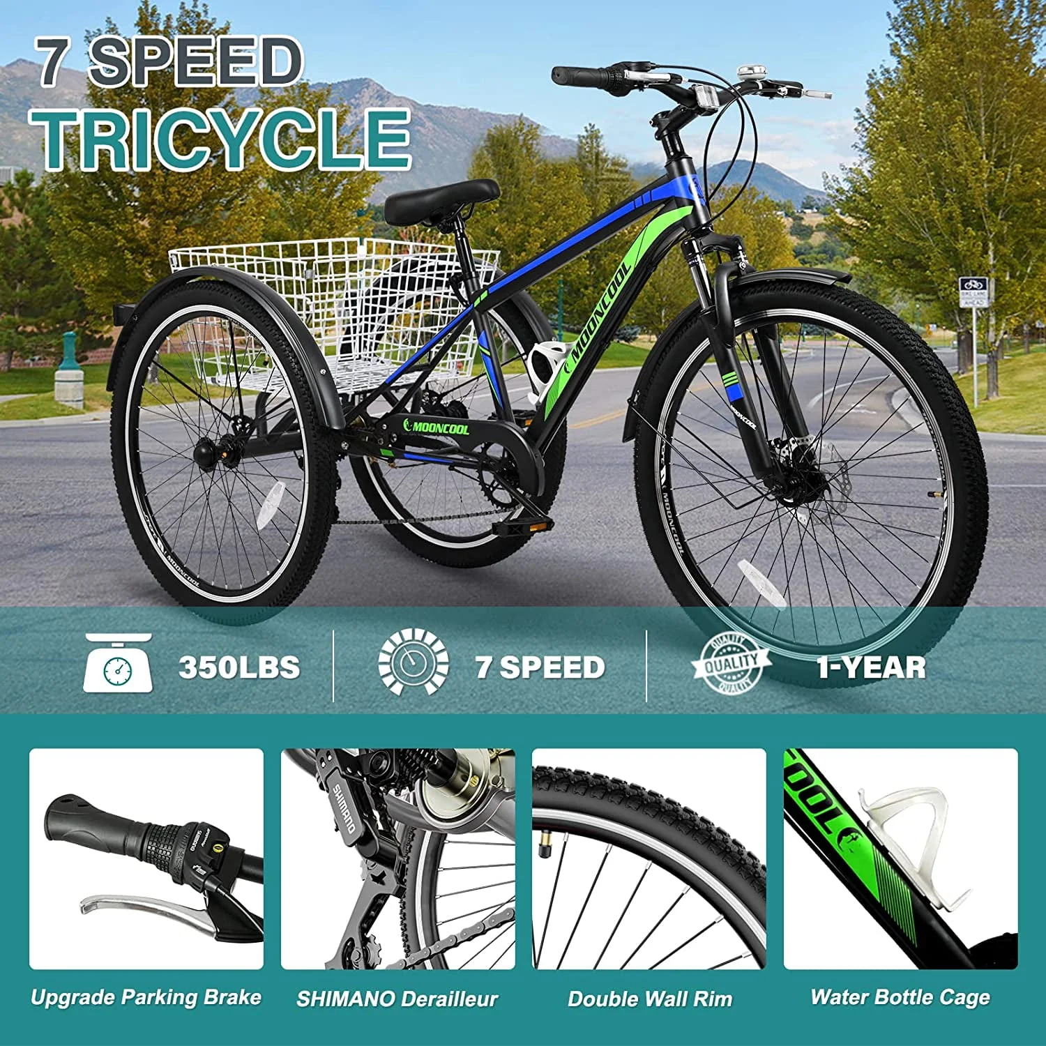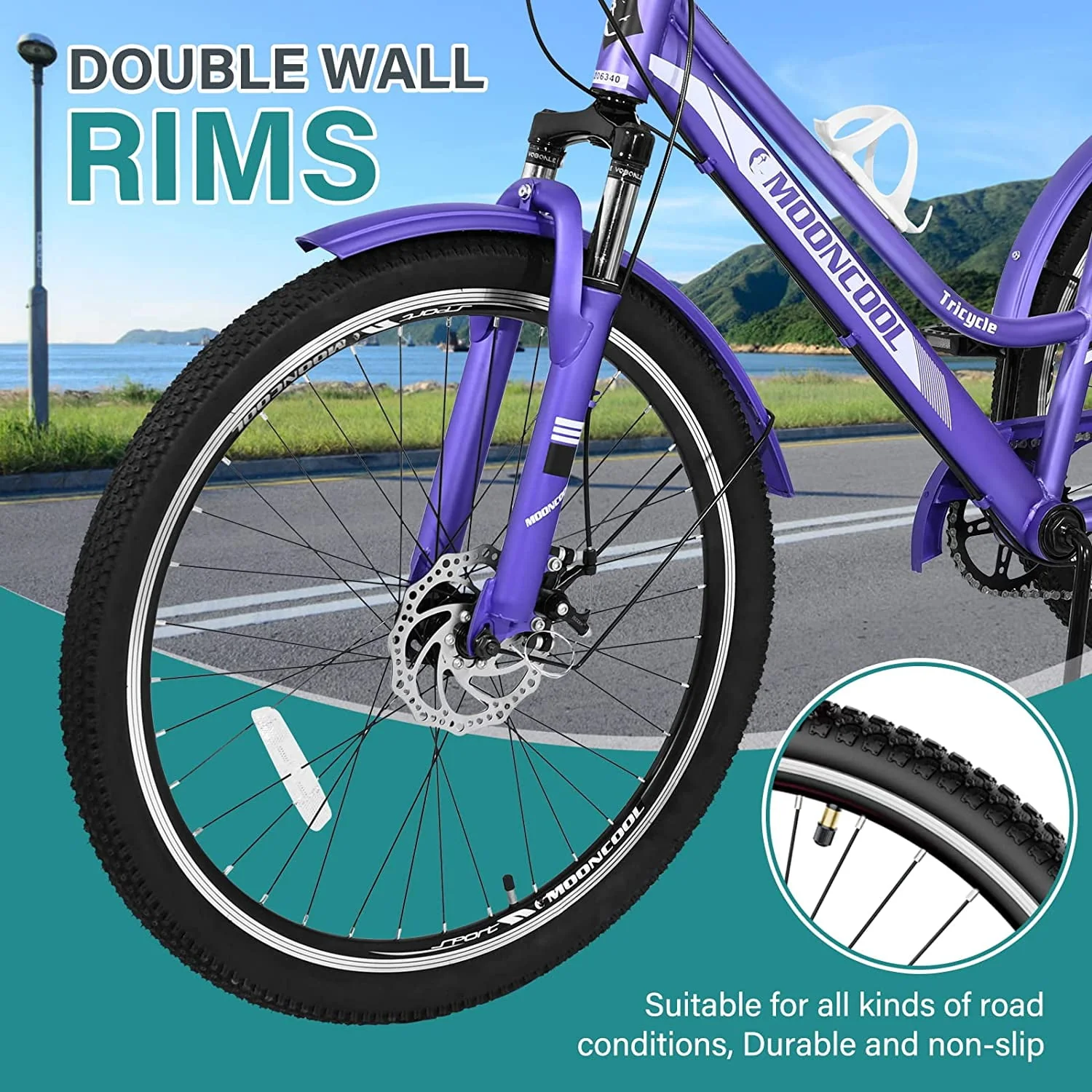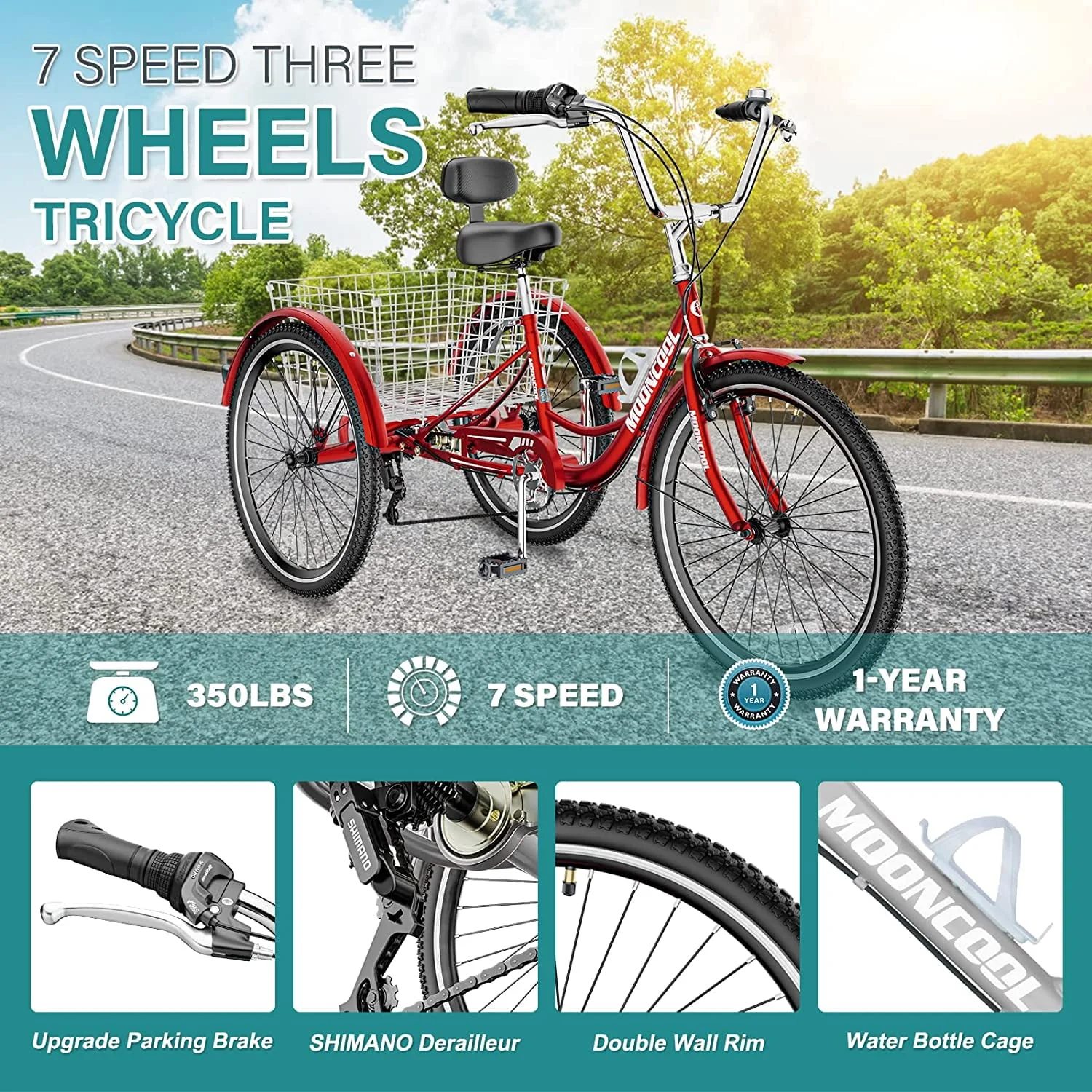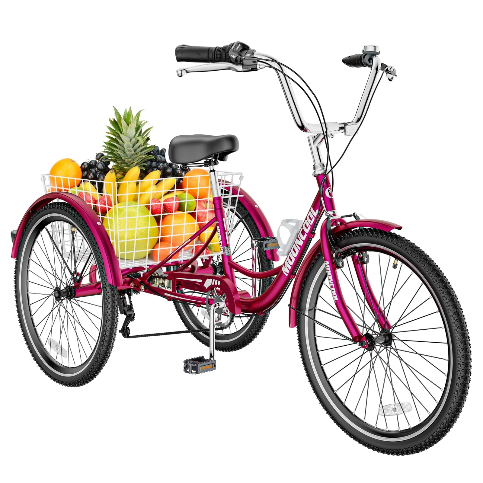 Mooncool Adult Tricycle 20/24/26 inch 7 Speed, Three Wheel Bicycle for Adult, Trike Cruiser W/ Tools & Big Basket for Exercise Shopping Picnic Outdoor Activities