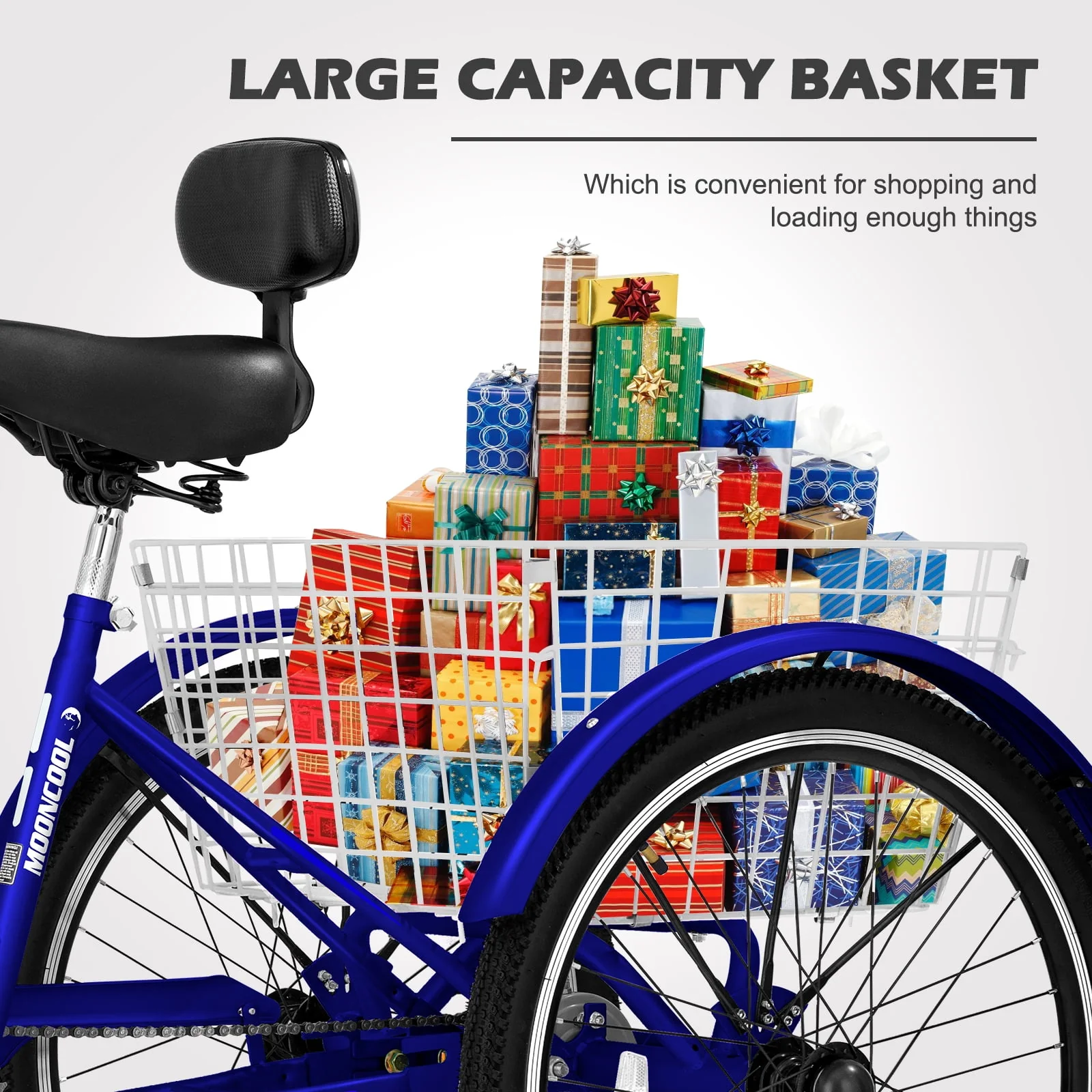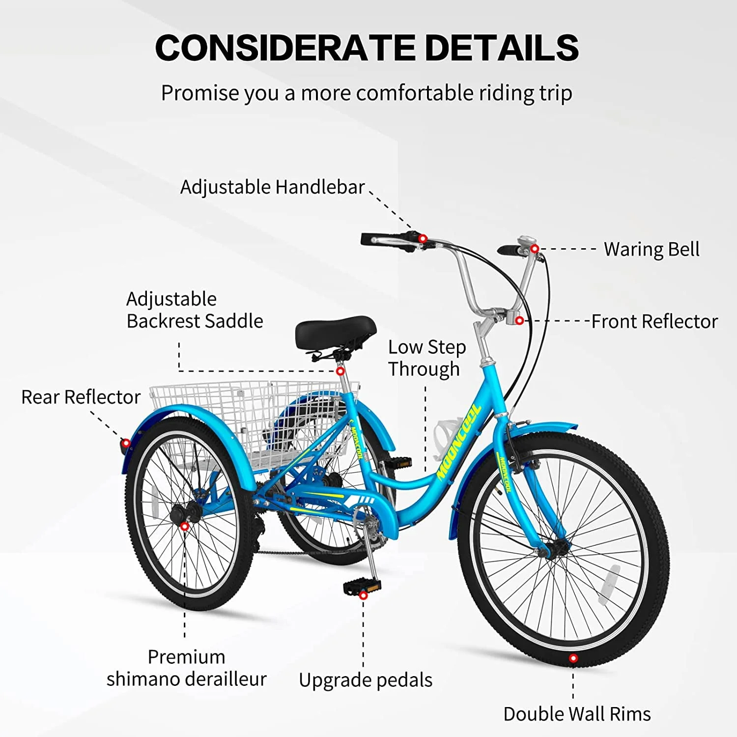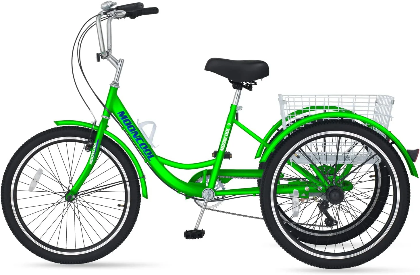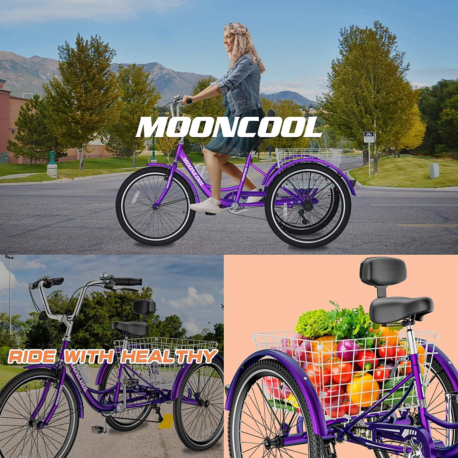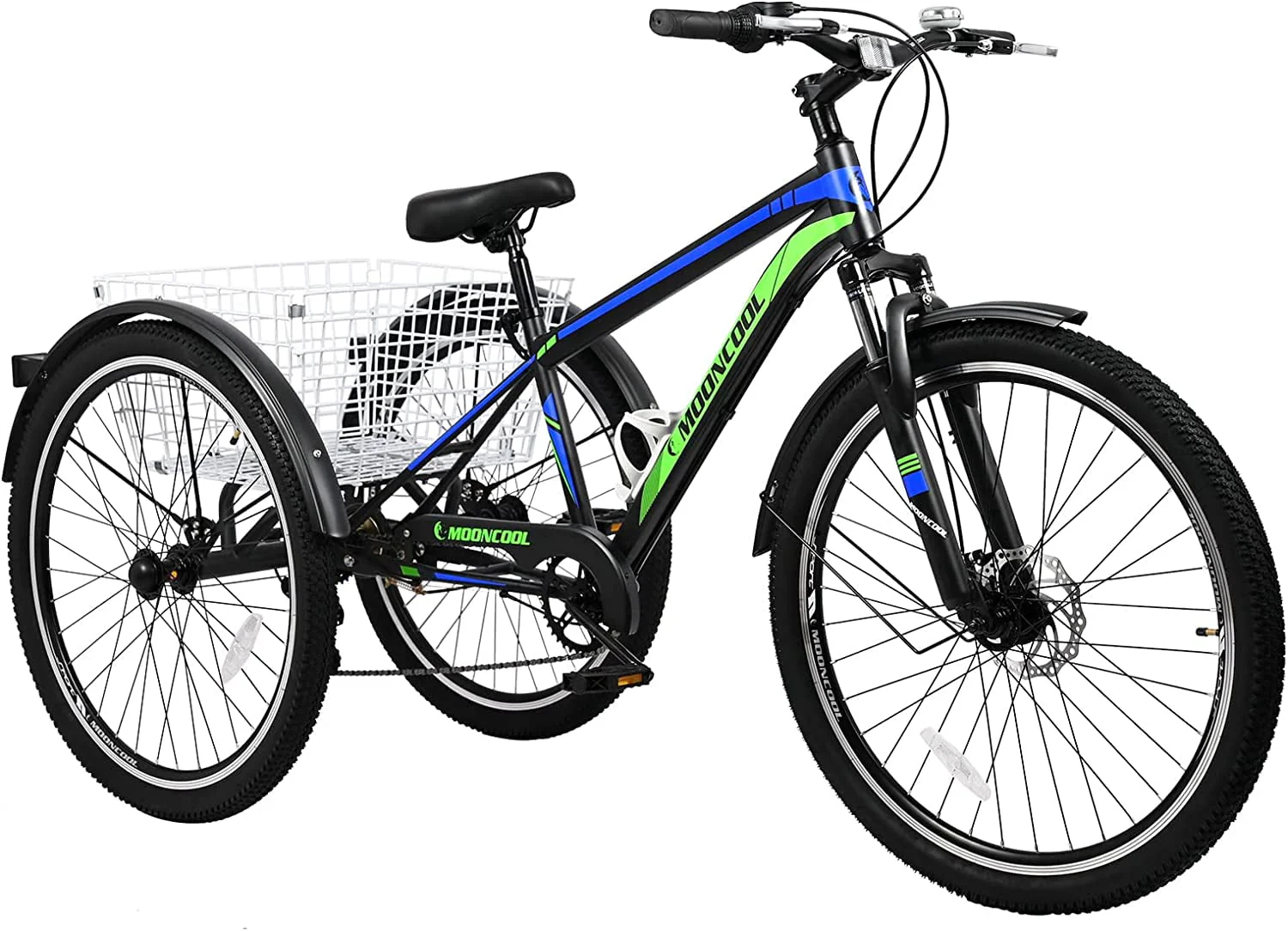 Mooncool Adult Tricycle 20/24/26 inch 7 Speed, Three Wheel Bicycle for Adult, Trike Cruiser W/ Tools & Big Basket for Exercise Shopping Picnic Outdoor Activities