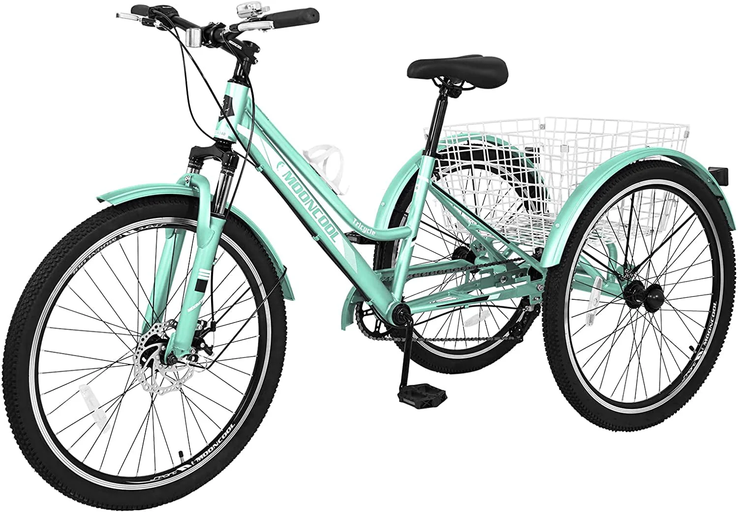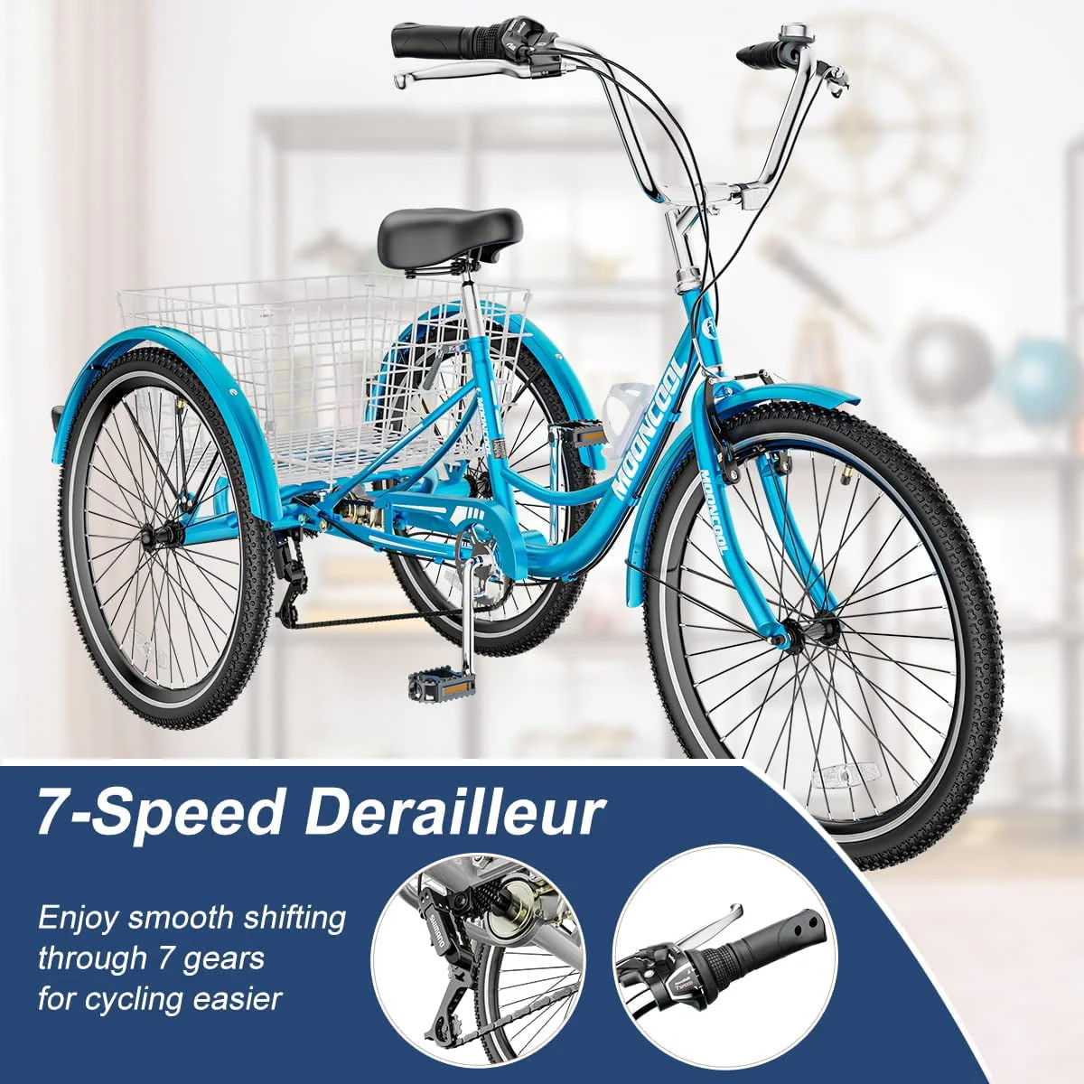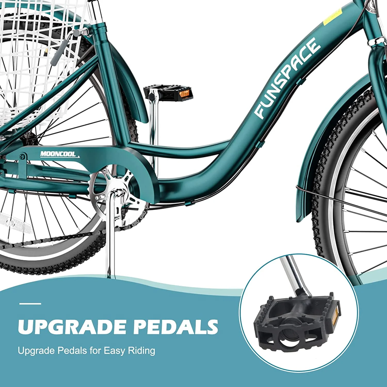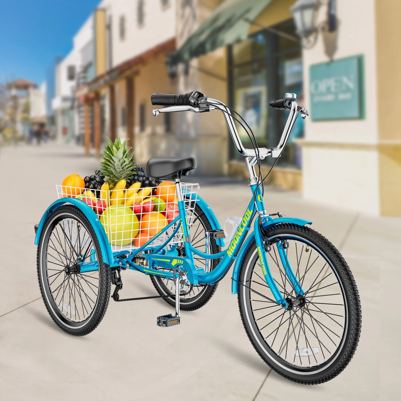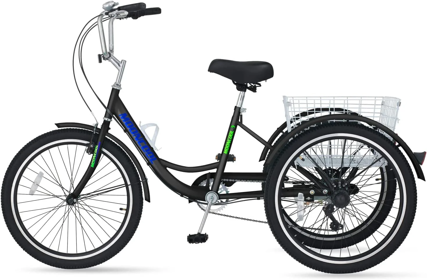Mooncool Adult Tricycle 20/24/26 inch 7 Speed, Three Wheel Bicycle for Adult, Trike Cruiser W/ Tools & Big Basket for Exercise Shopping Picnic Outdoor Activities