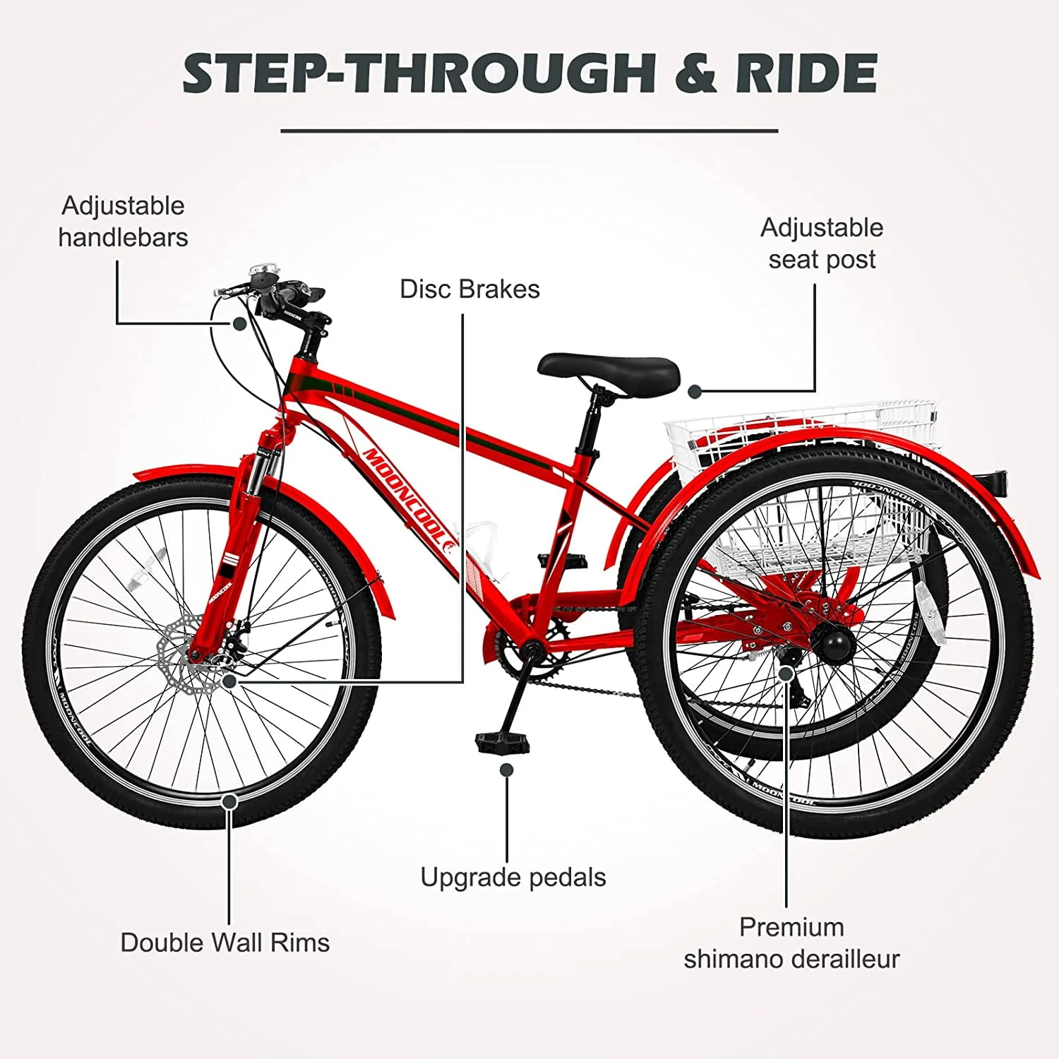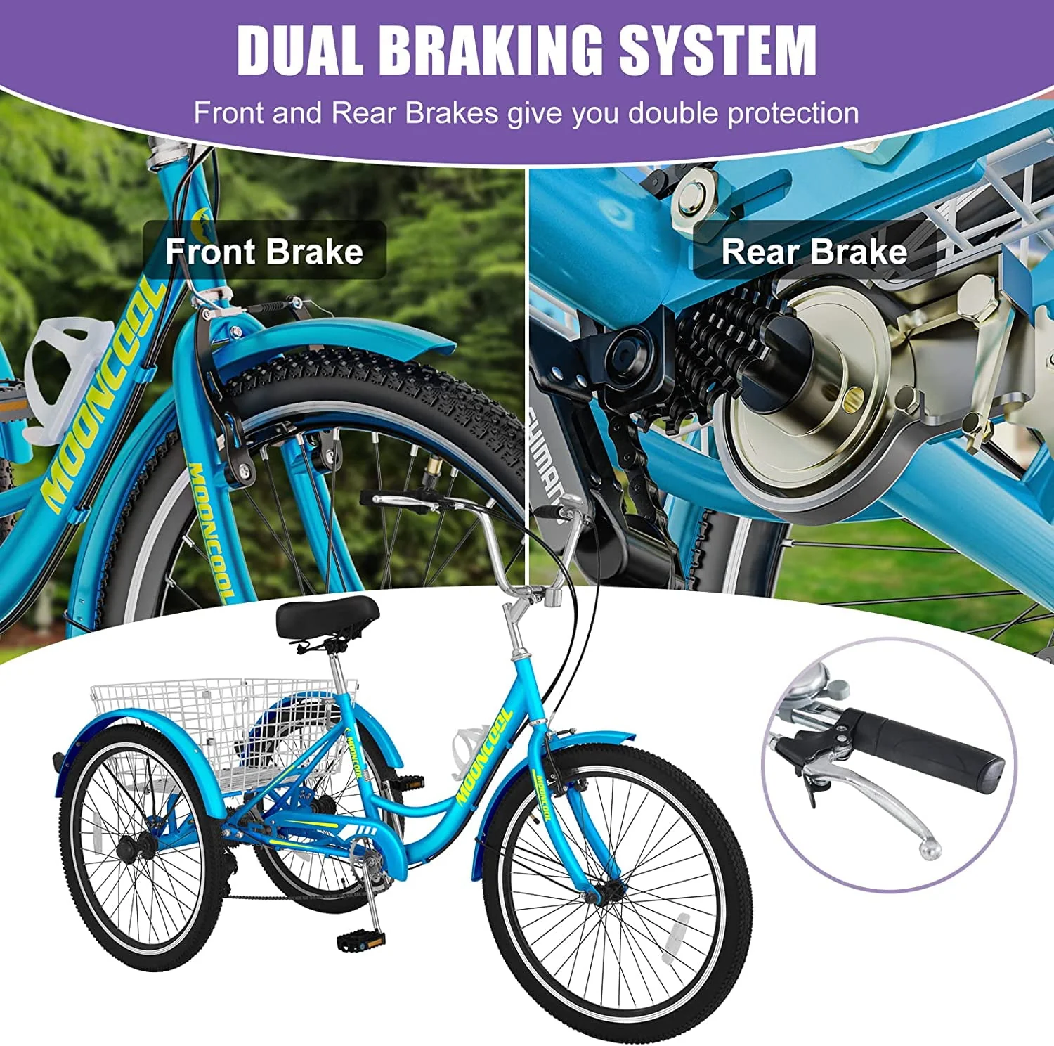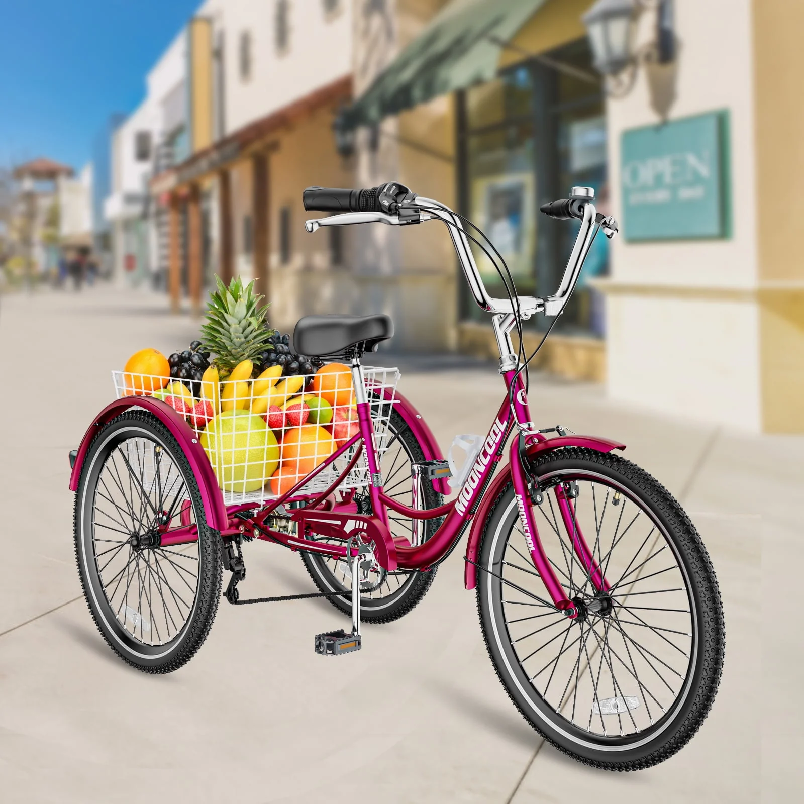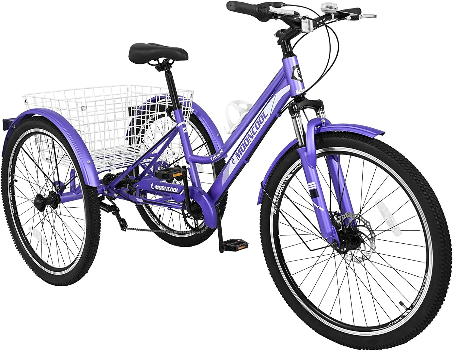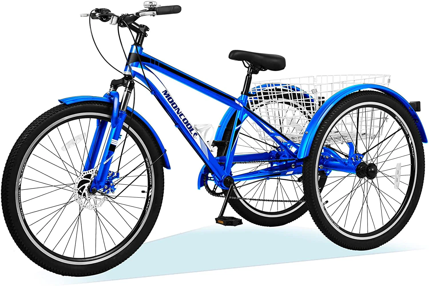 Mooncool Adult Tricycle 20/24/26 inch 7 Speed, Three Wheel Bicycle for Adult, Trike Cruiser W/ Tools & Big Basket for Exercise Shopping Picnic Outdoor Activities