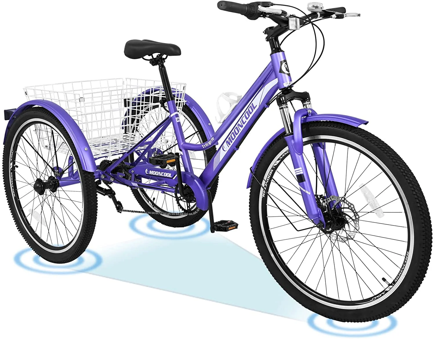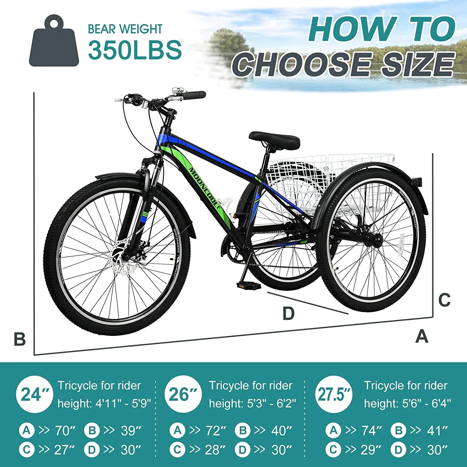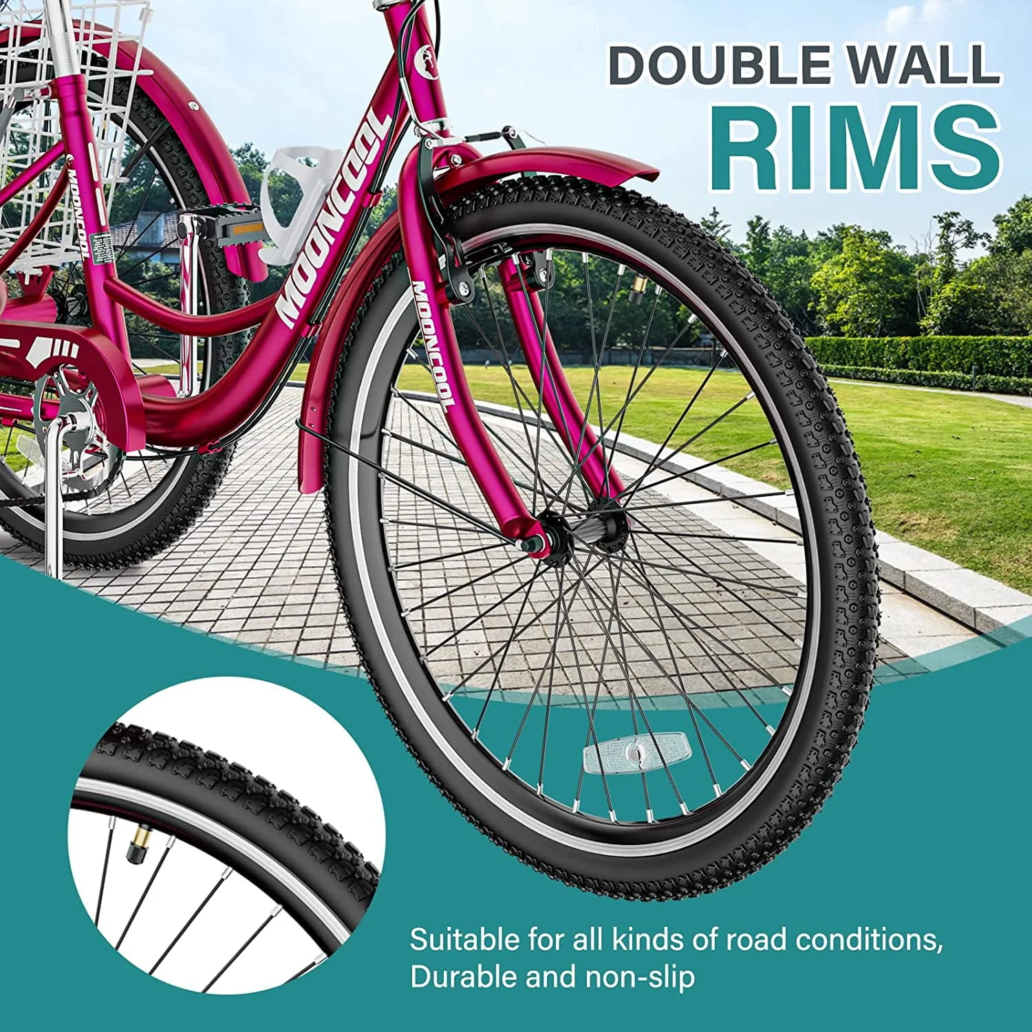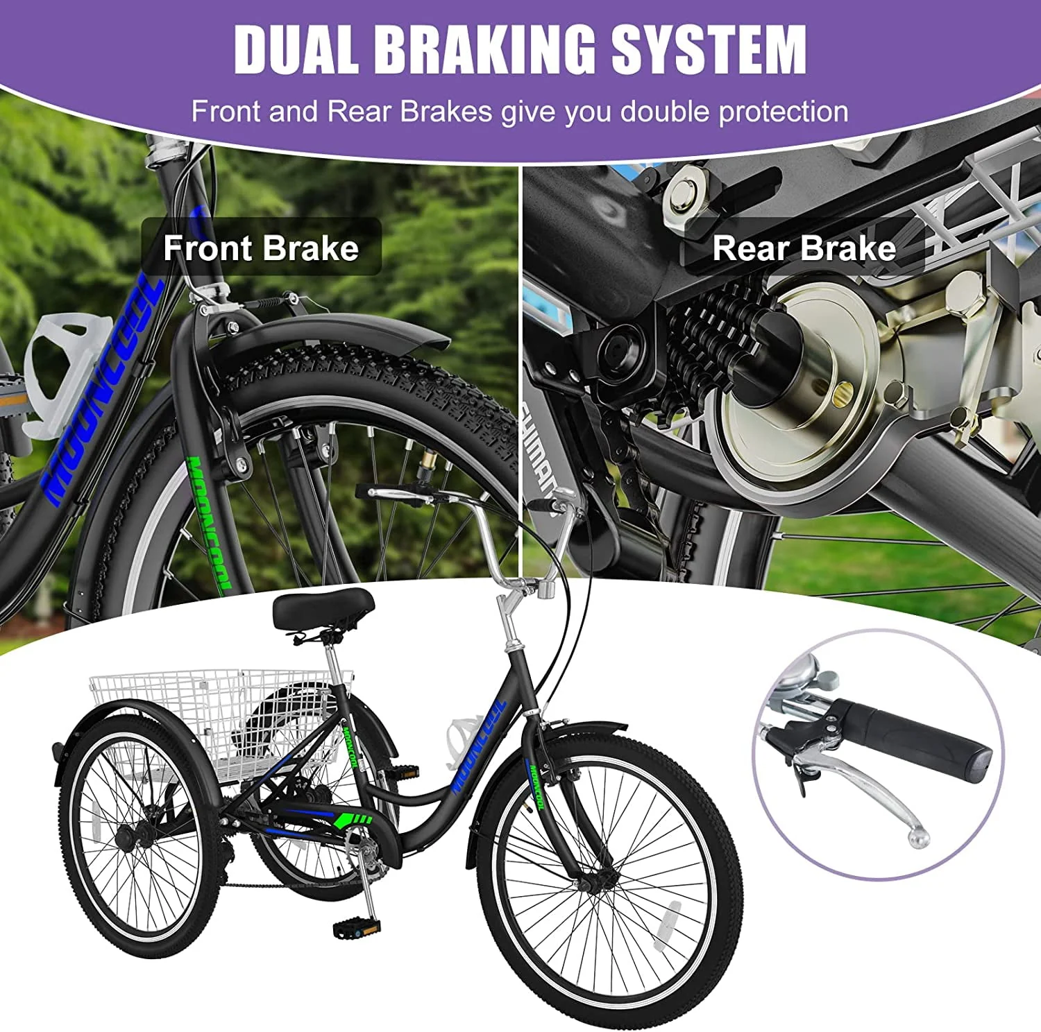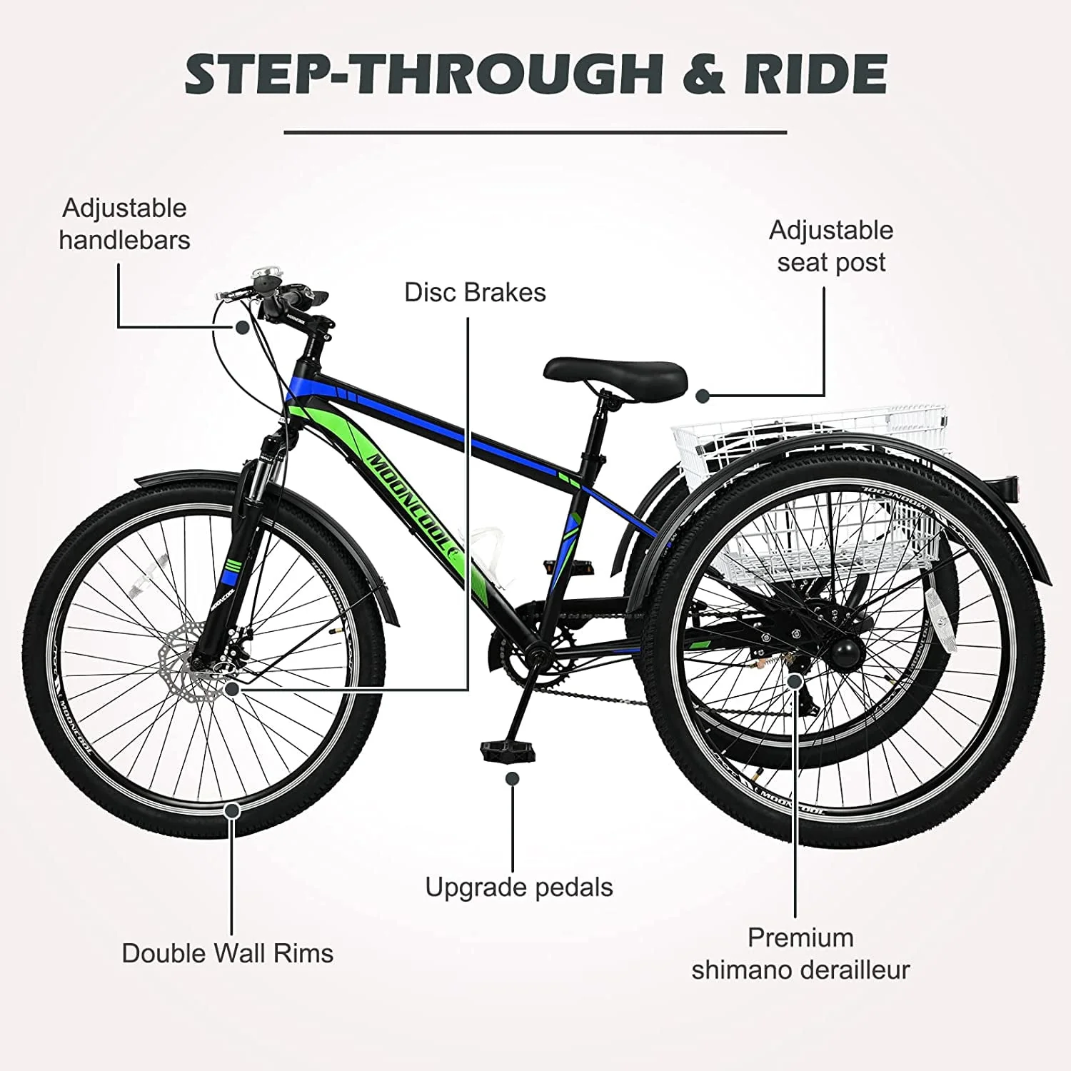 Mooncool Adult Tricycle 20/24/26 inch 7 Speed, Three Wheel Bicycle for Adult, Trike Cruiser W/ Tools & Big Basket for Exercise Shopping Picnic Outdoor Activities