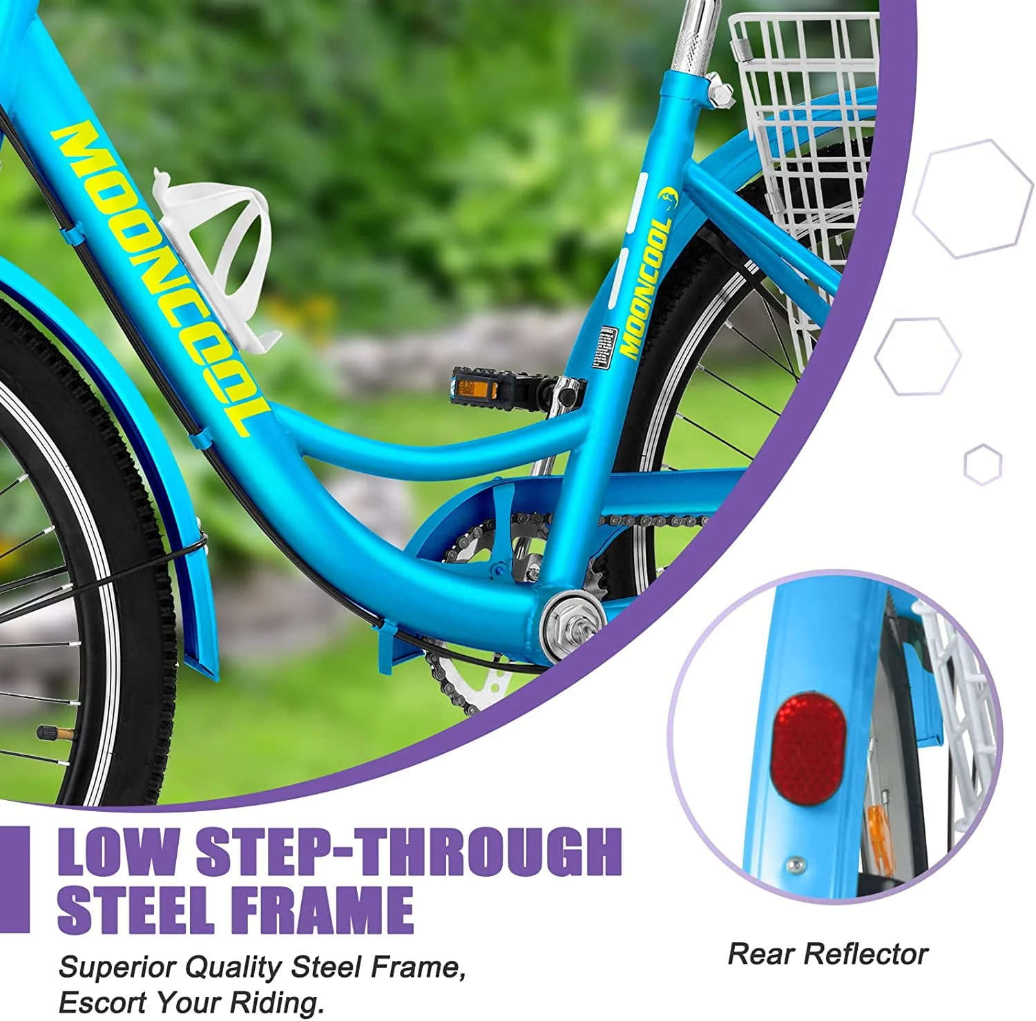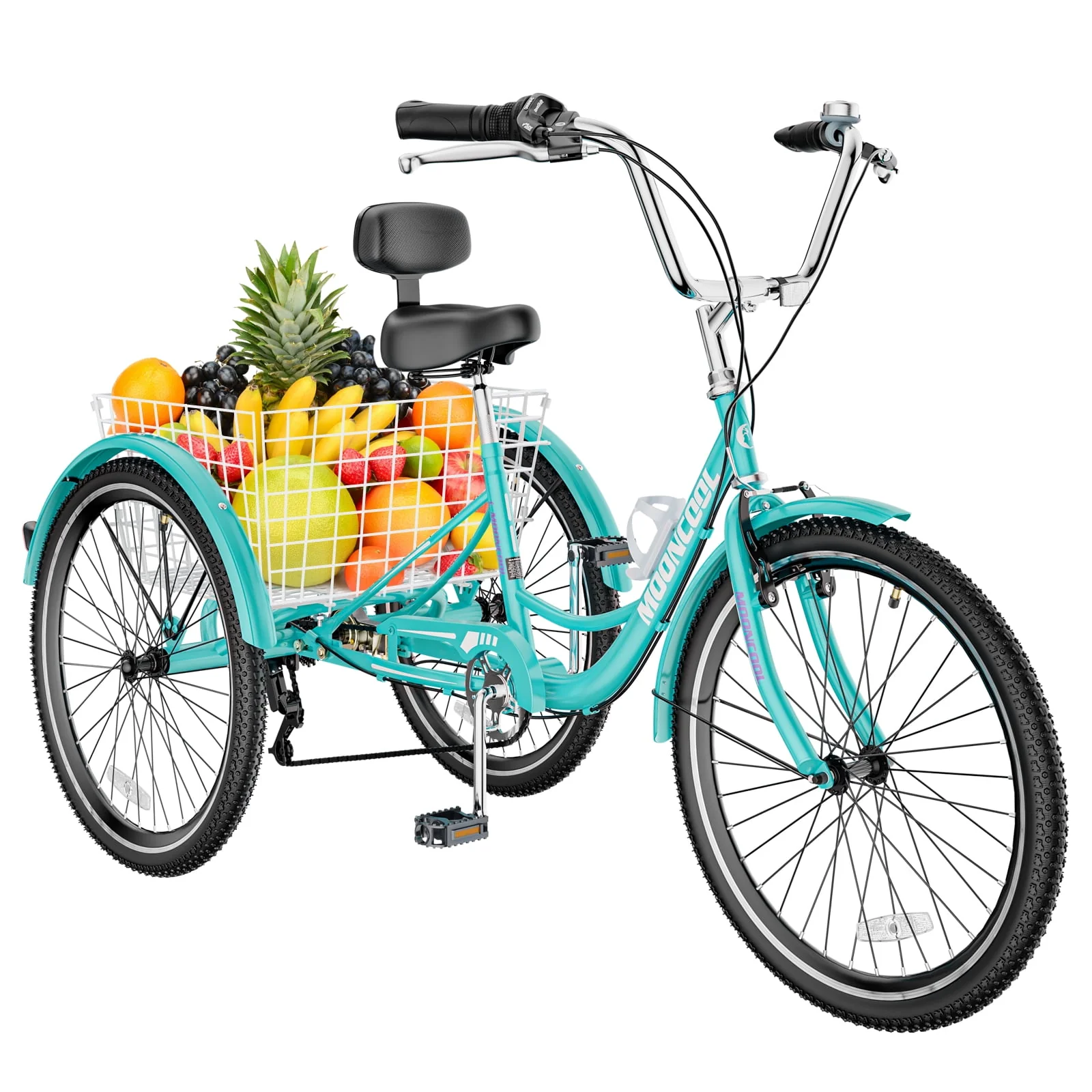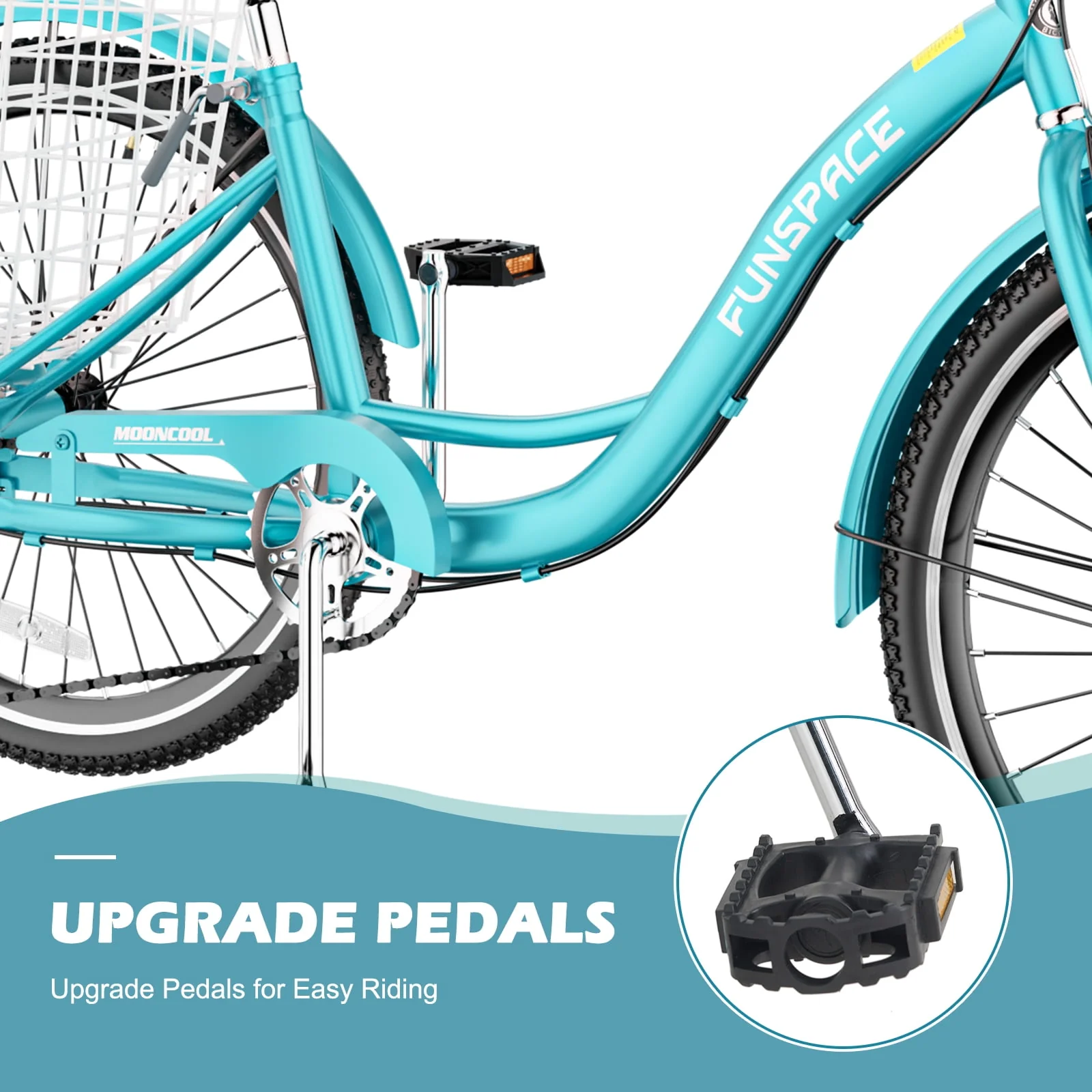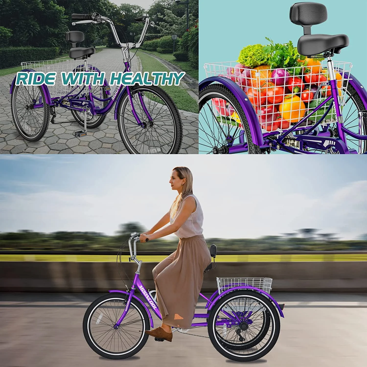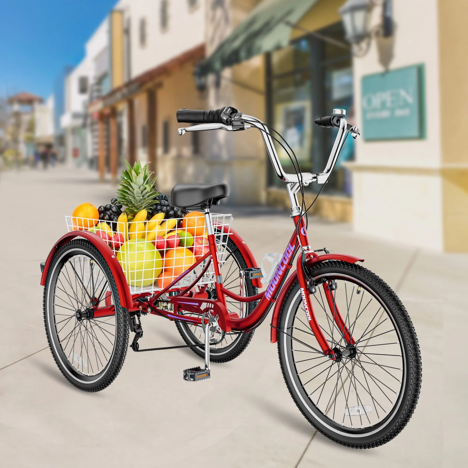 Mooncool Adult Tricycle 20/24/26 inch 7 Speed, Three Wheel Bicycle for Adult, Trike Cruiser W/ Tools & Big Basket for Exercise Shopping Picnic Outdoor Activities