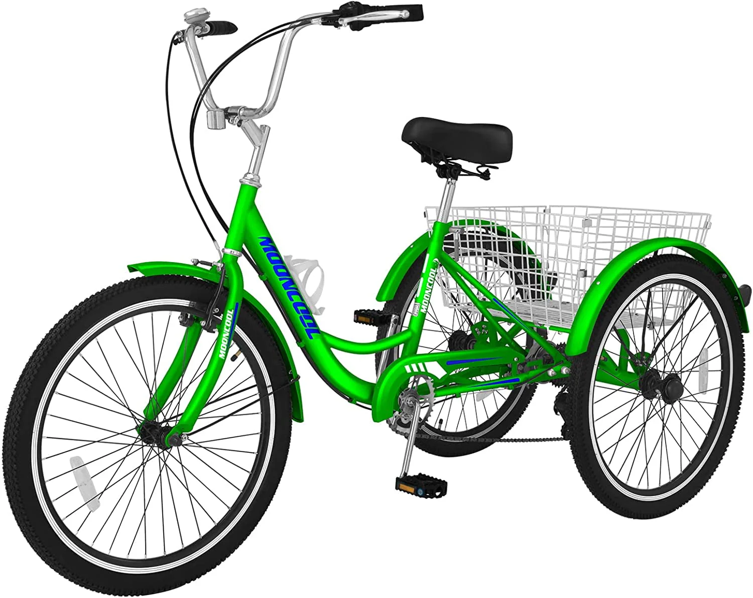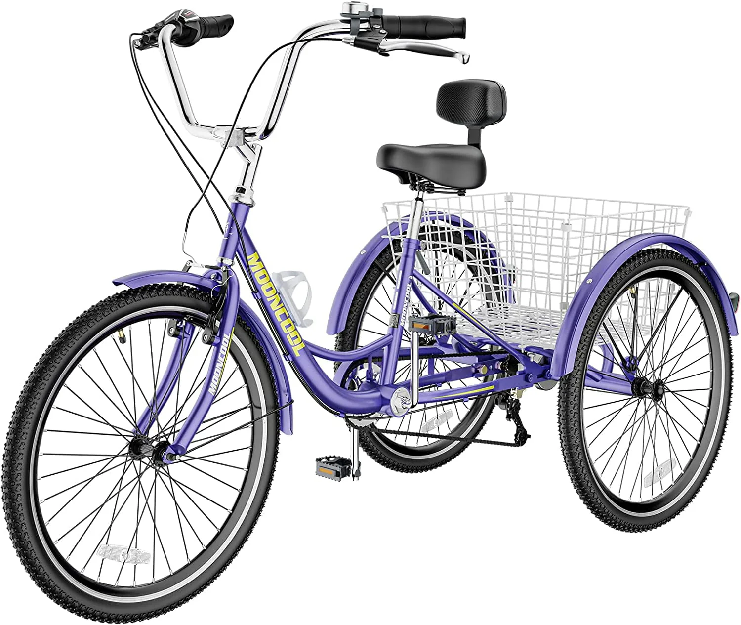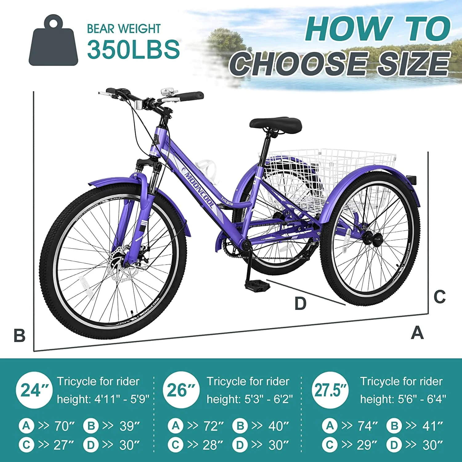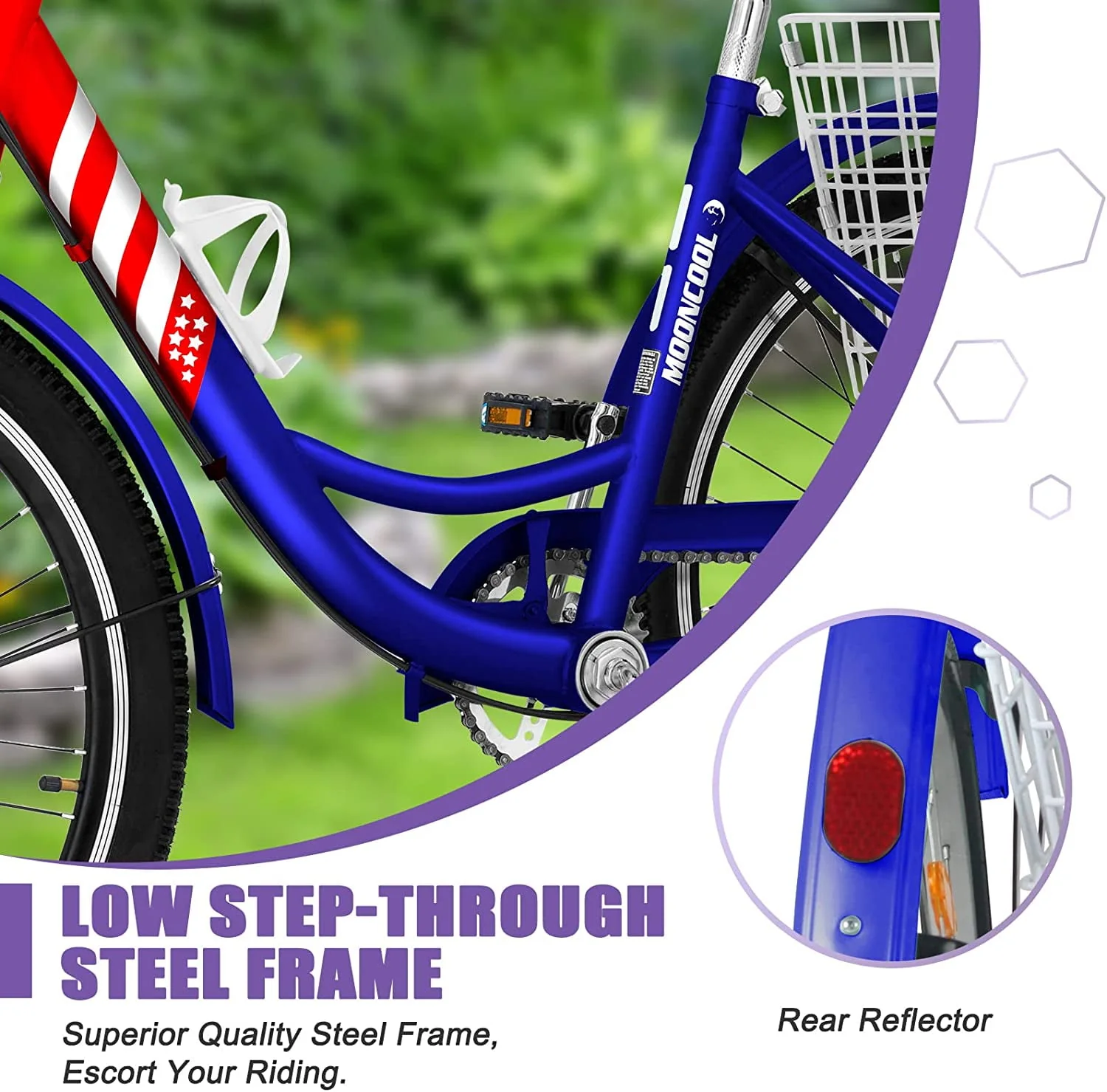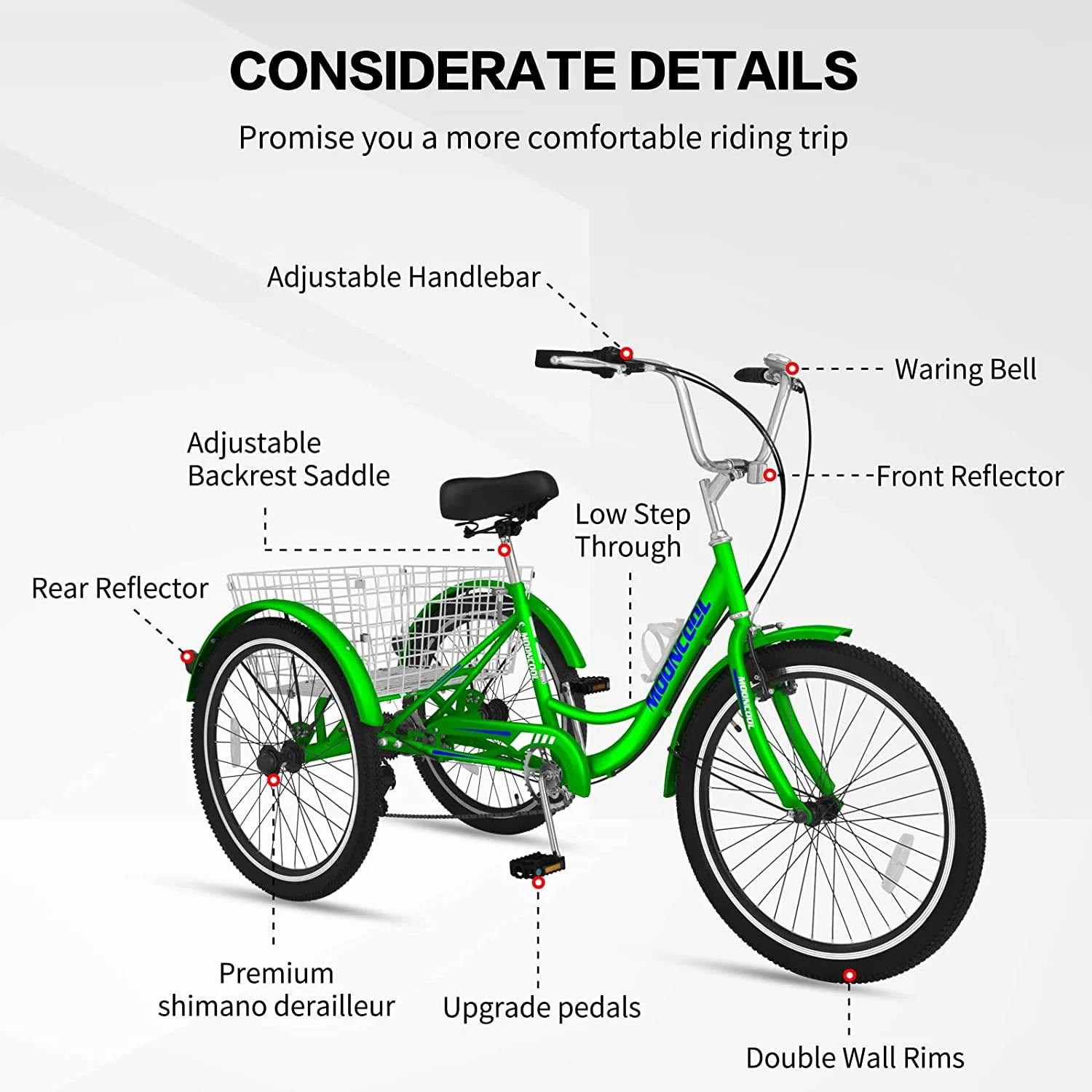 Mooncool Adult Tricycle 20/24/26 inch 7 Speed, Three Wheel Bicycle for Adult, Trike Cruiser W/ Tools & Big Basket for Exercise Shopping Picnic Outdoor Activities