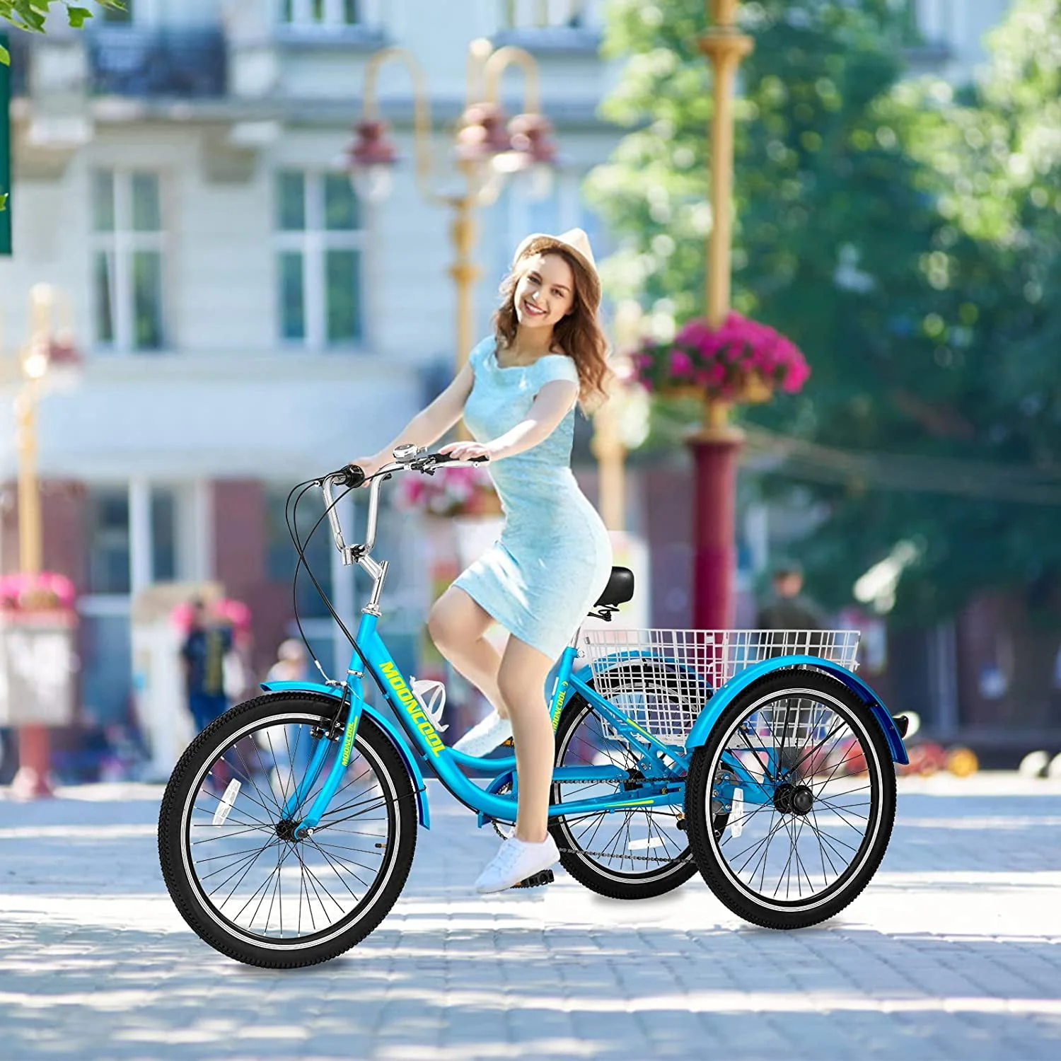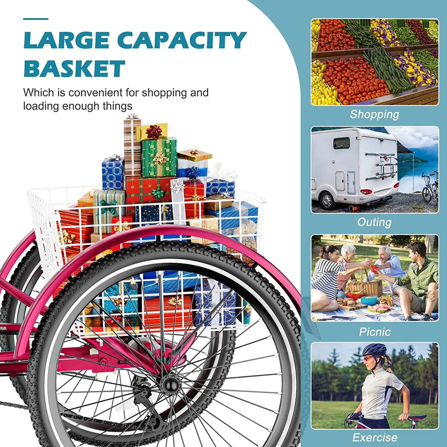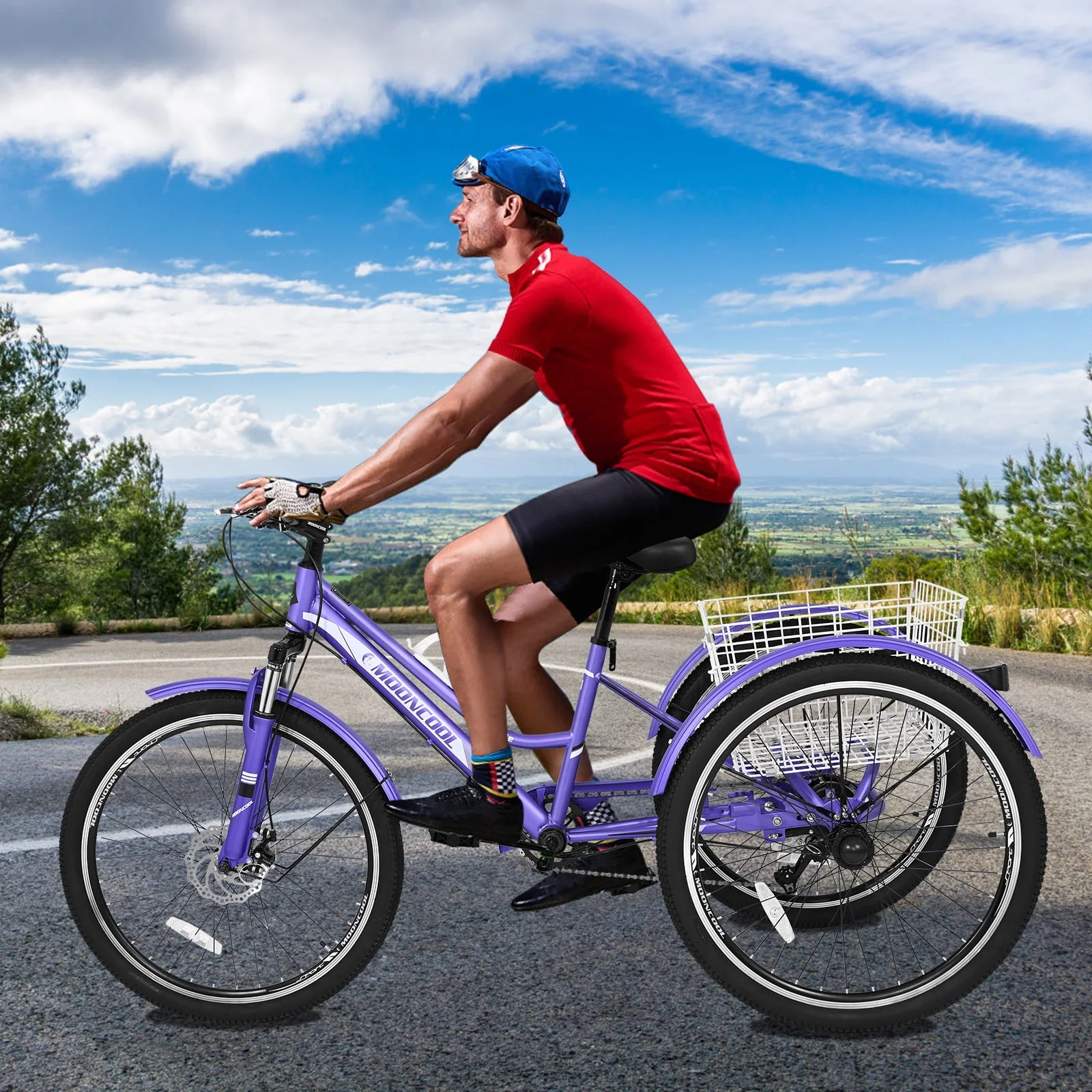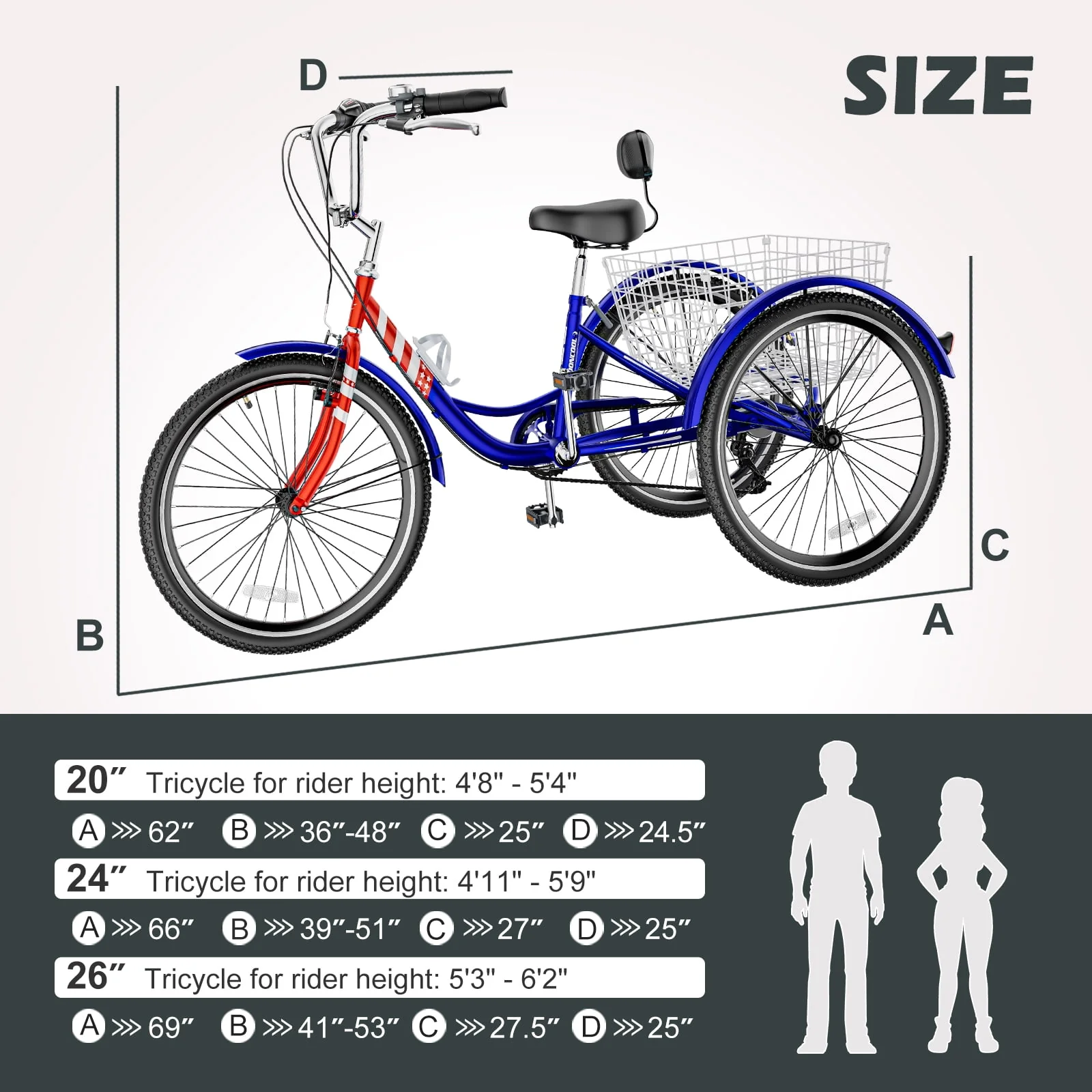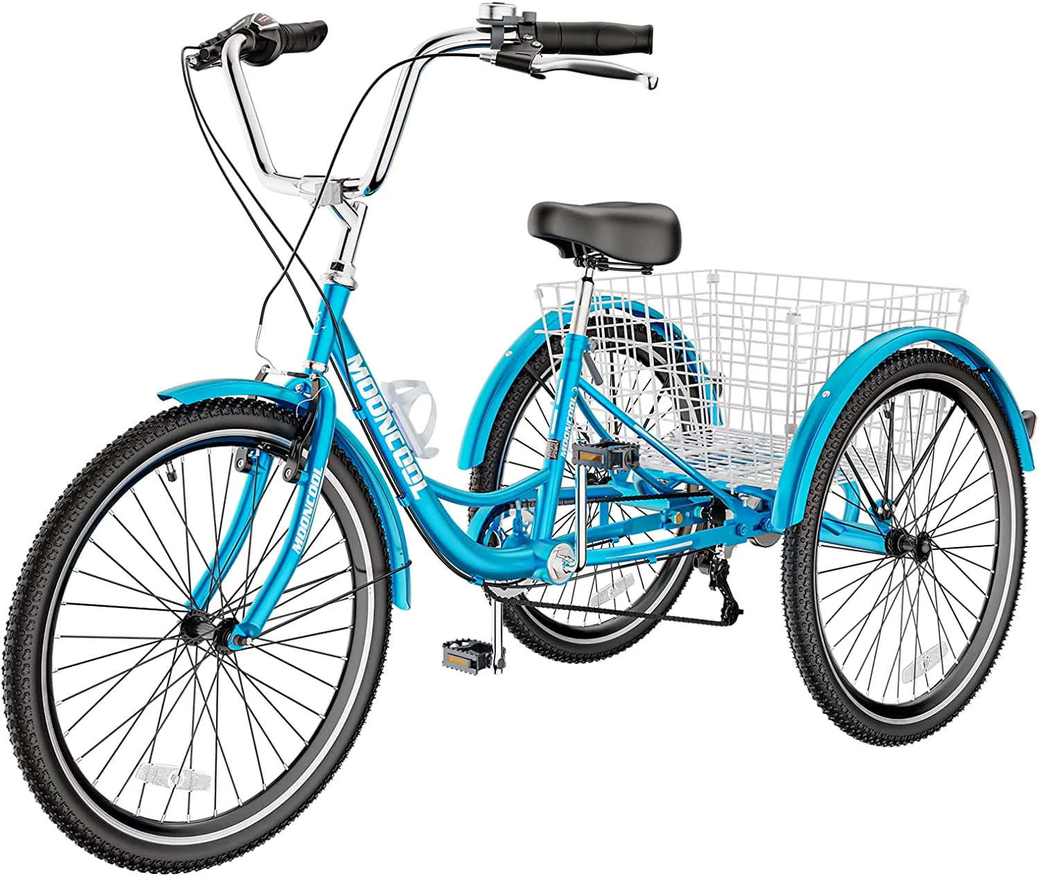 Mooncool Adult Tricycle 20/24/26 inch 7 Speed, Three Wheel Bicycle for Adult, Trike Cruiser W/ Tools & Big Basket for Exercise Shopping Picnic Outdoor Activities