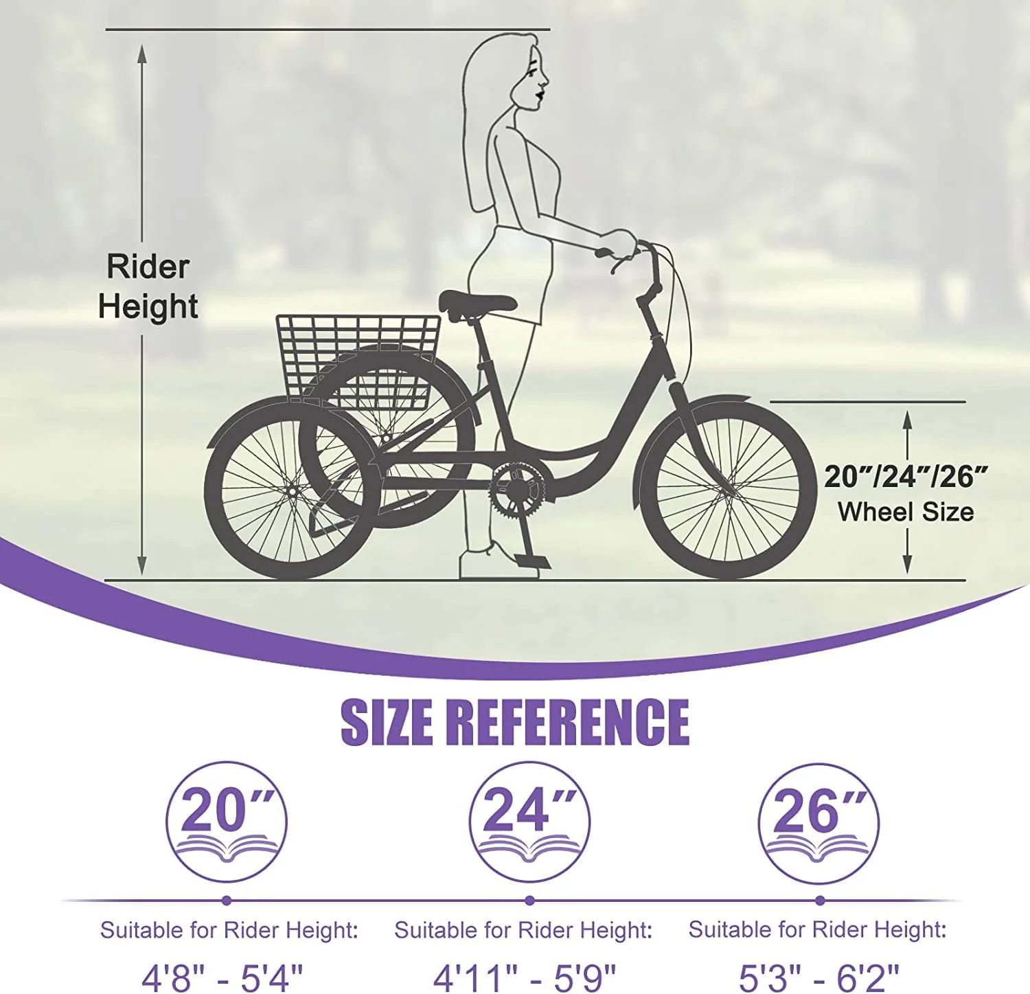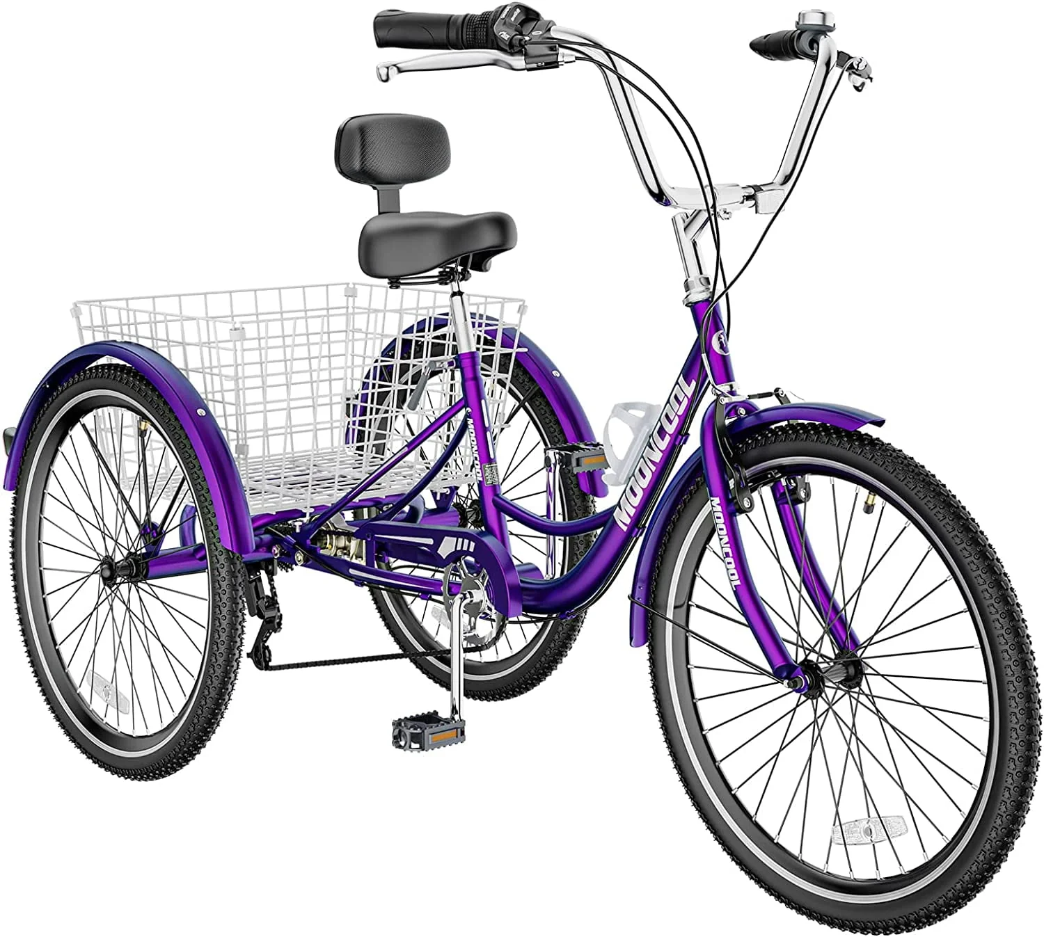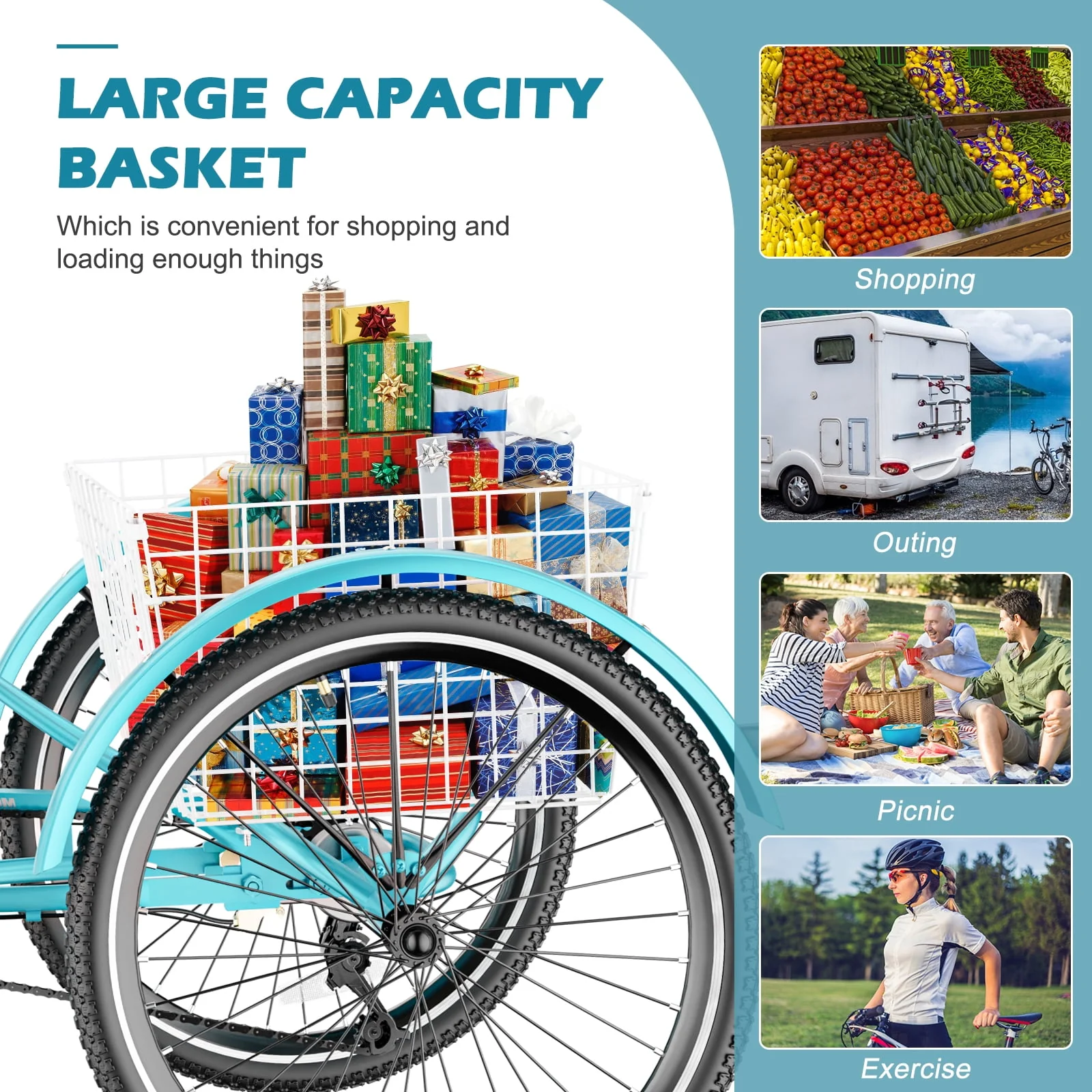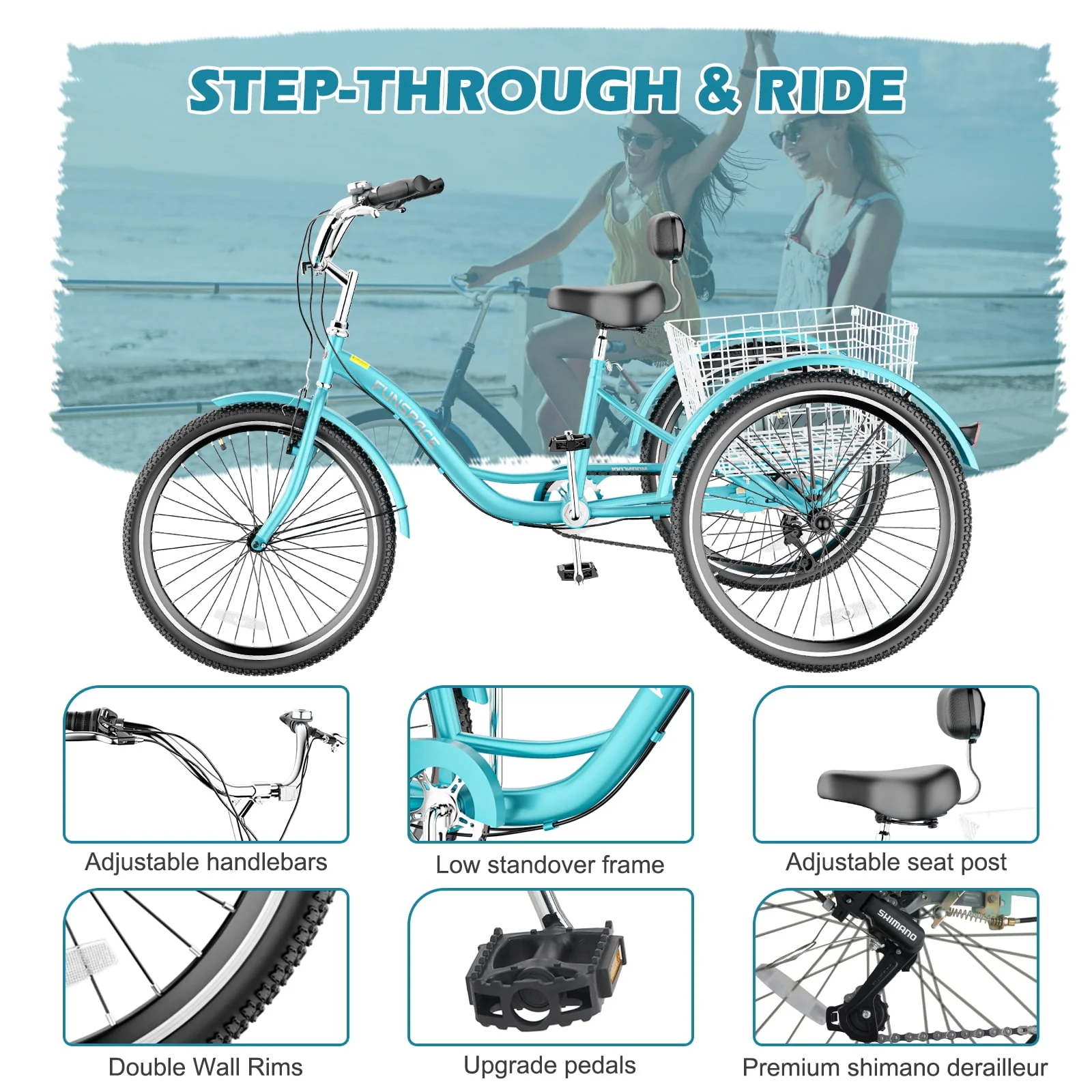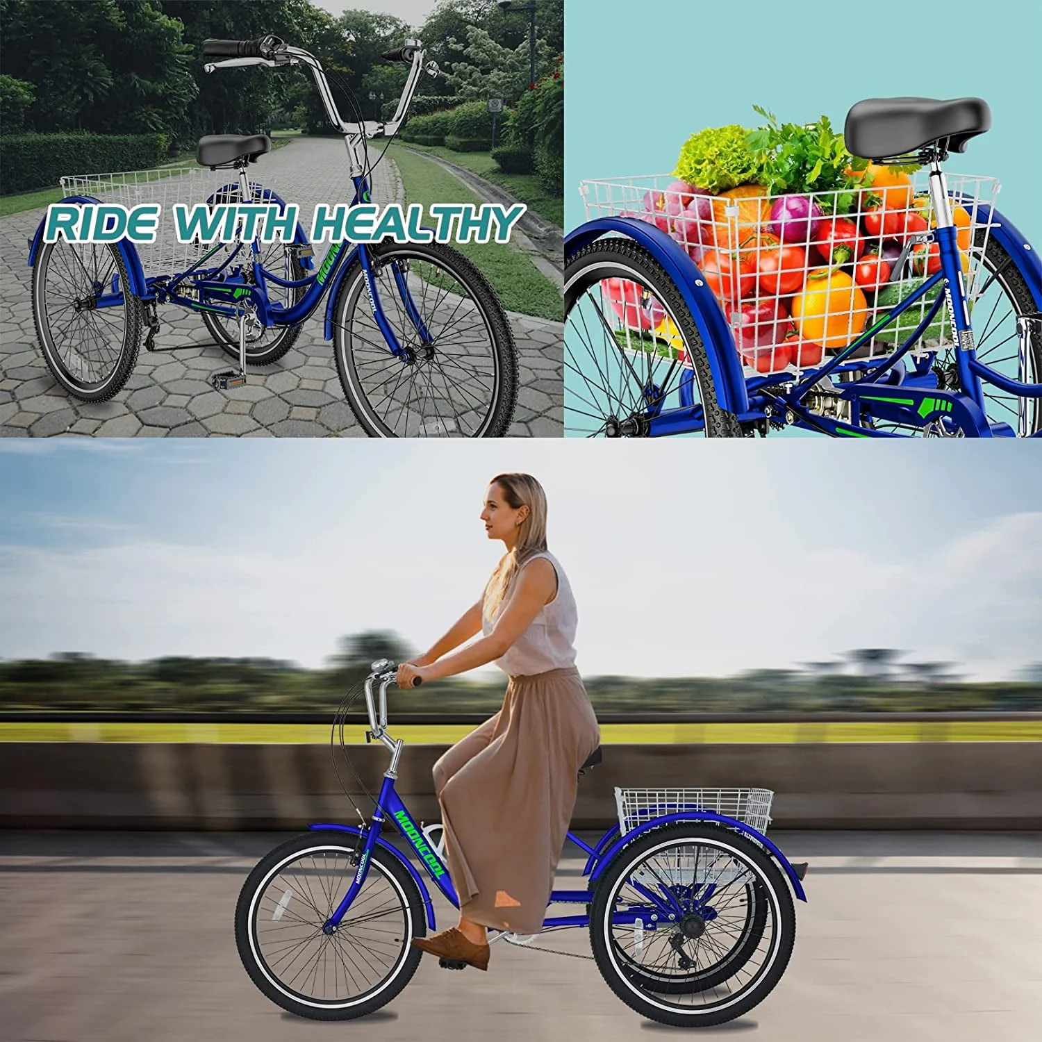 Mooncool Adult Tricycle 20/24/26 inch 7 Speed, Three Wheel Bicycle for Adult, Trike Cruiser W/ Tools & Big Basket for Exercise Shopping Picnic Outdoor Activities