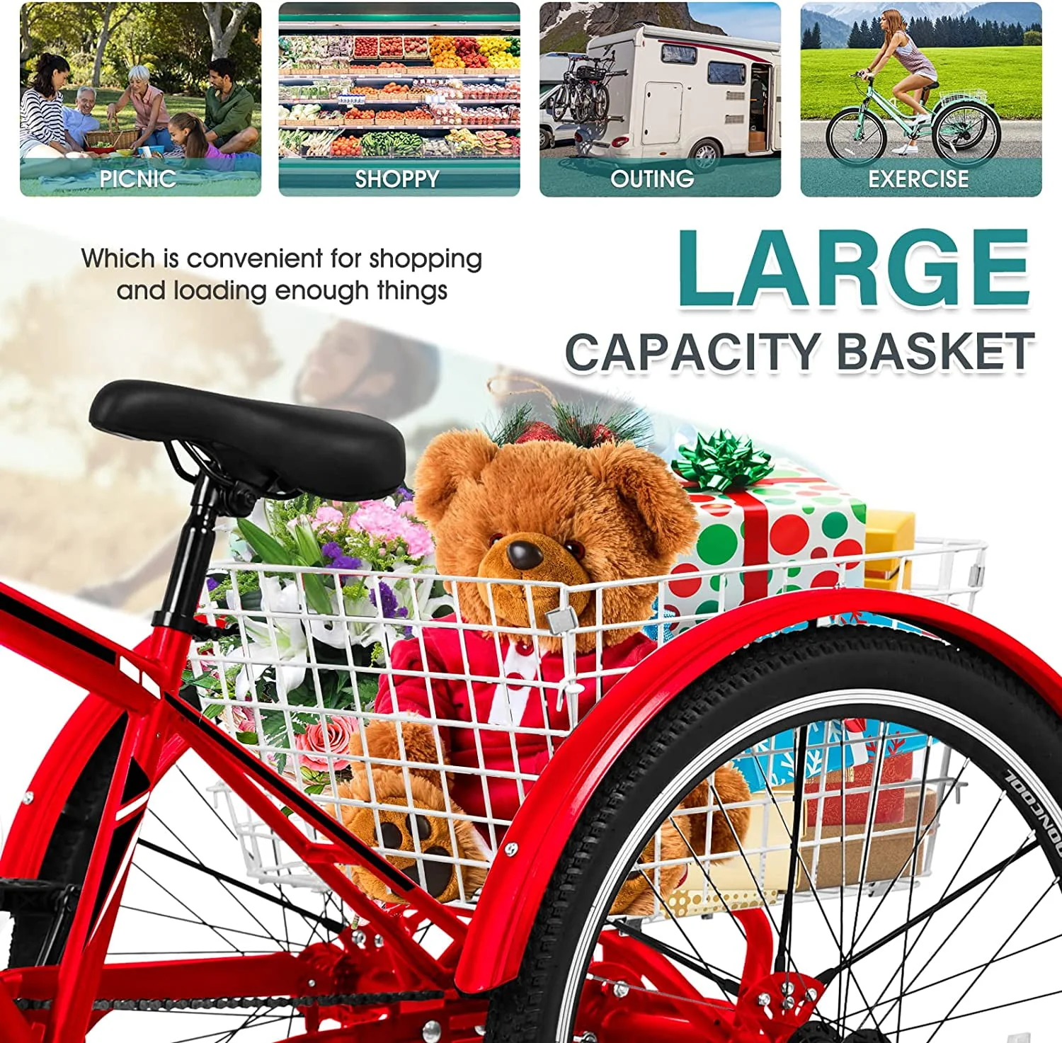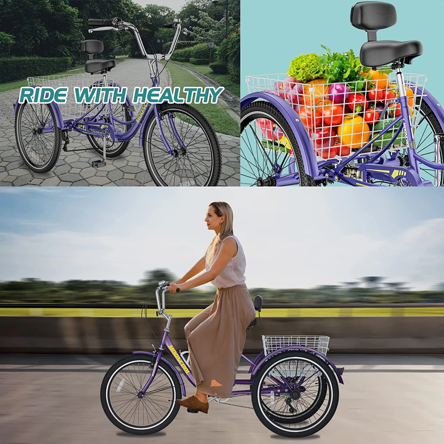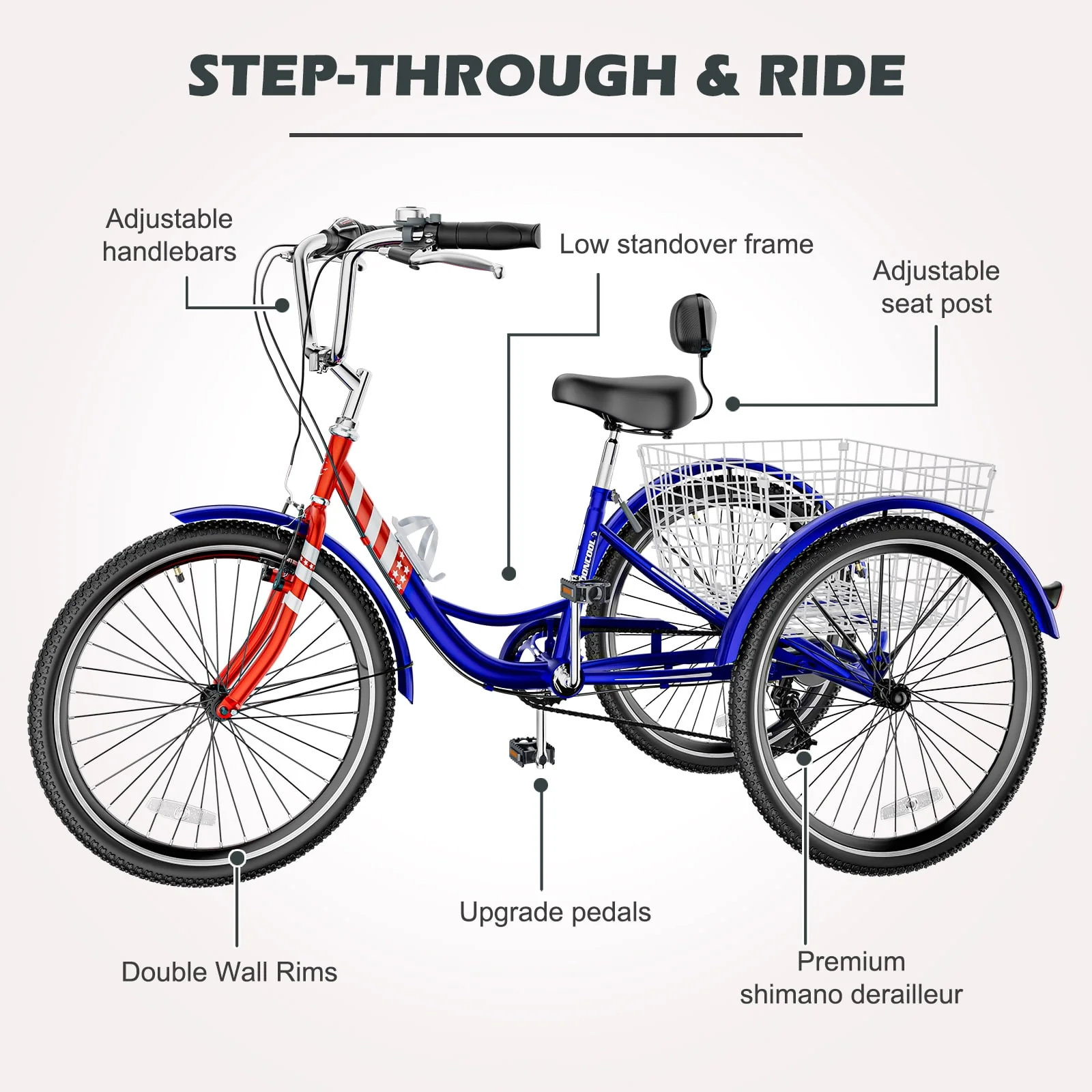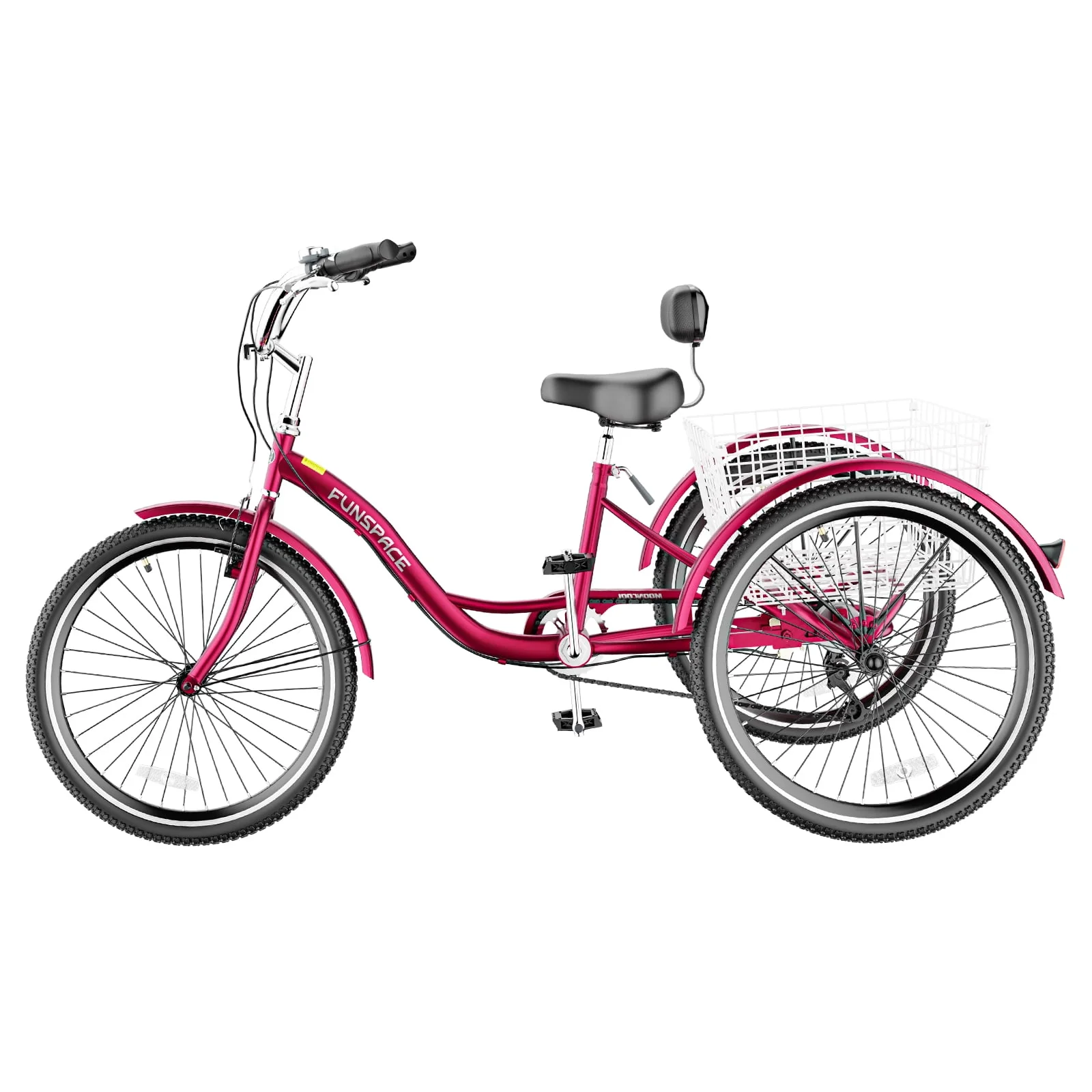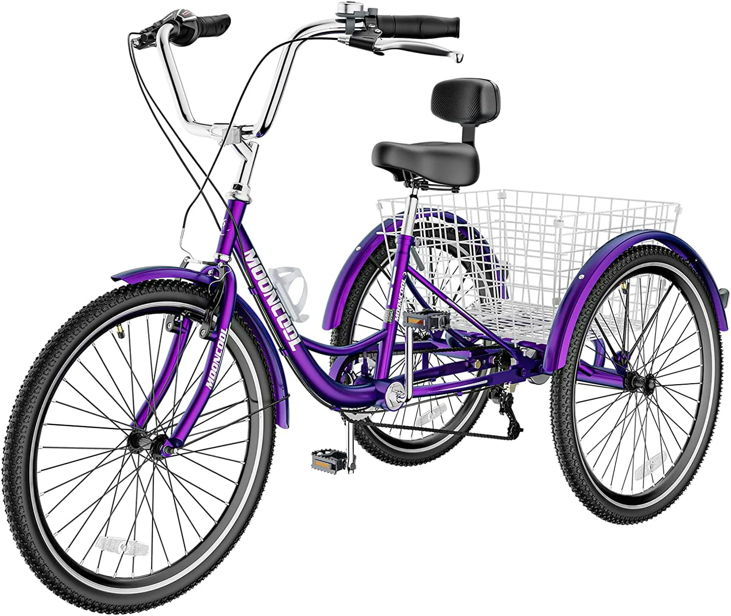Mooncool Adult Tricycle 20/24/26 inch 7 Speed, Three Wheel Bicycle for Adult, Trike Cruiser W/ Tools & Big Basket for Exercise Shopping Picnic Outdoor Activities