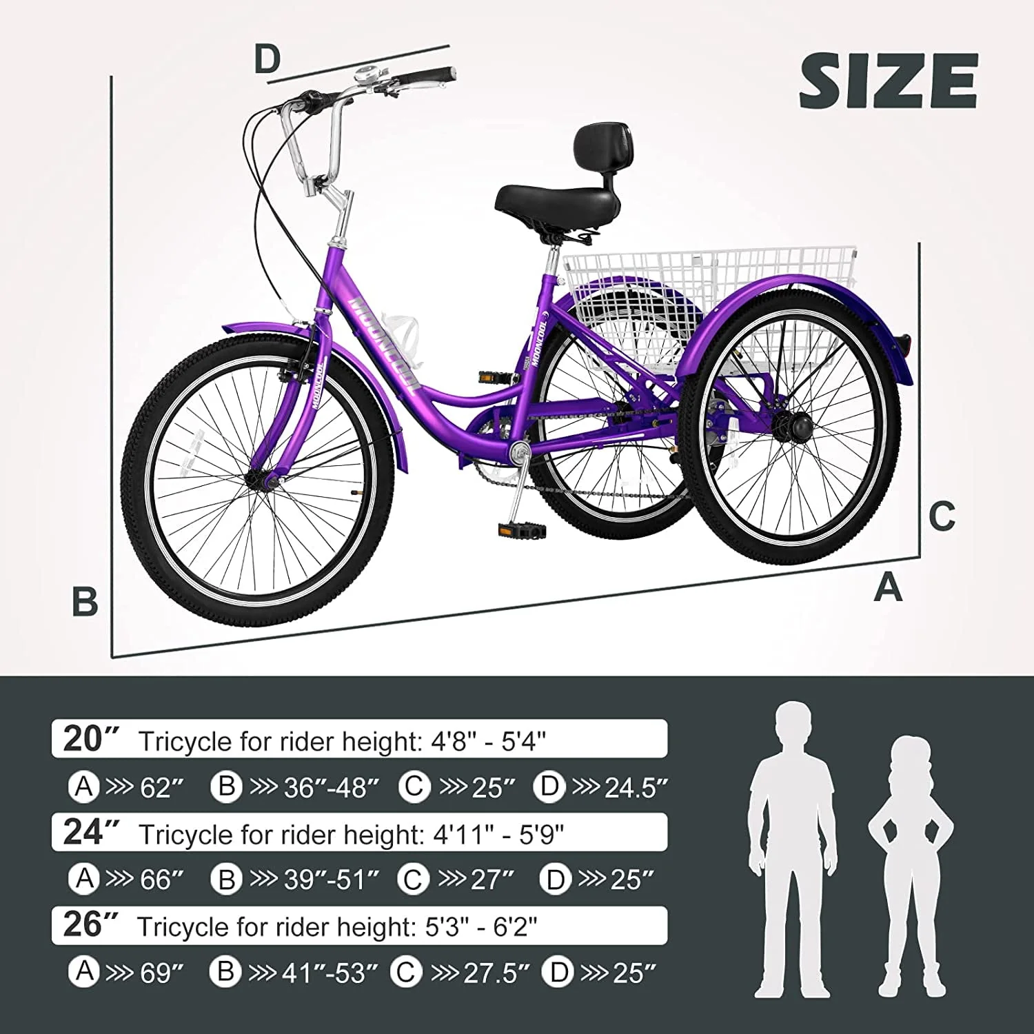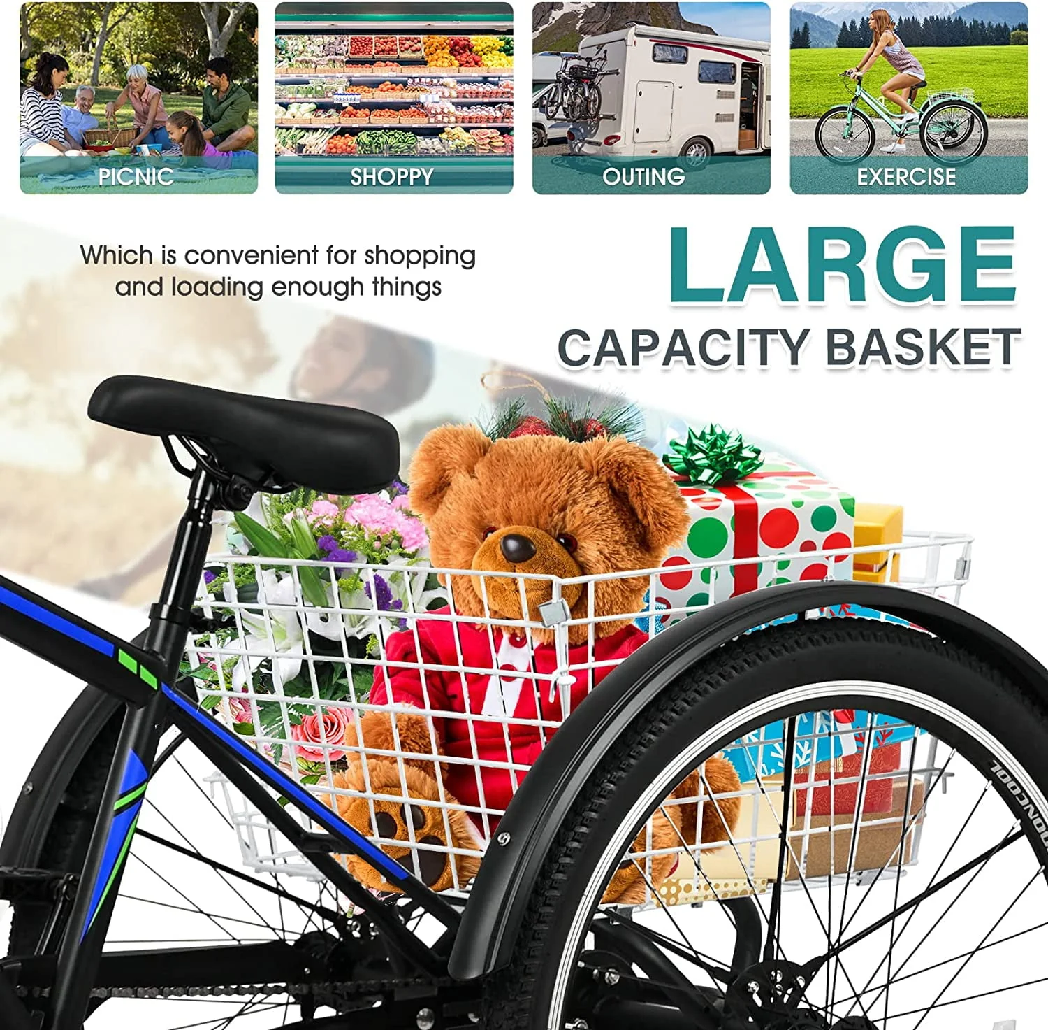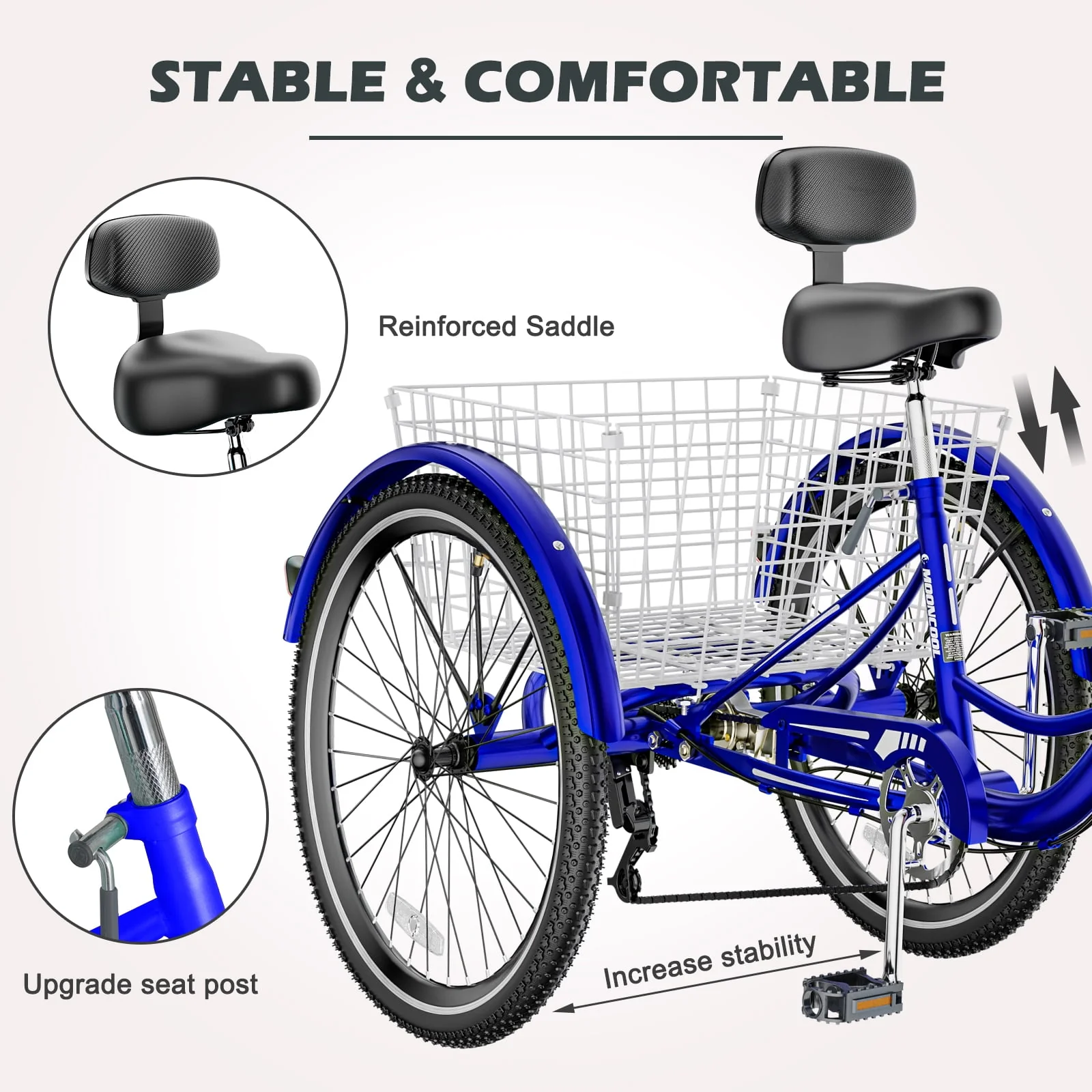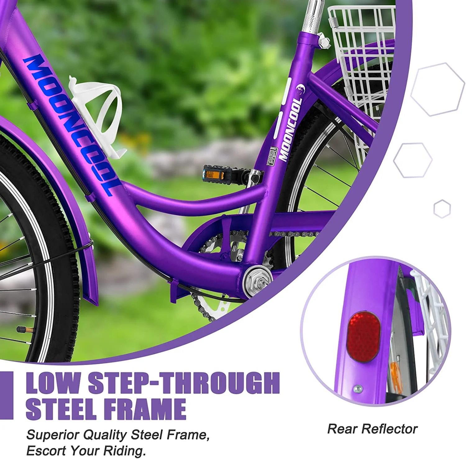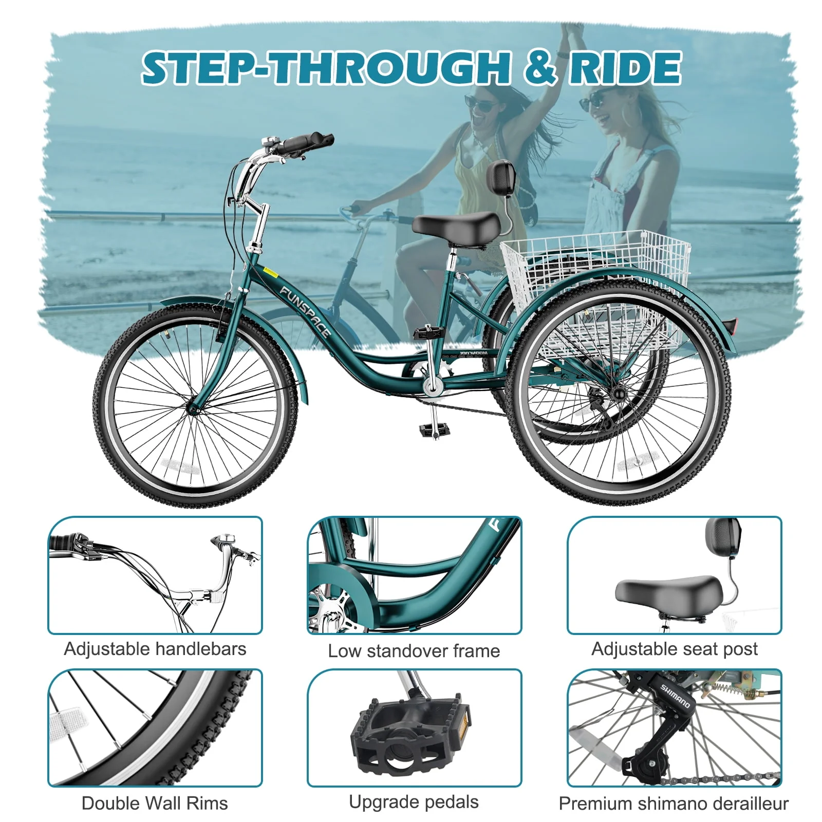 Mooncool Adult Tricycle 20/24/26 inch 7 Speed, Three Wheel Bicycle for Adult, Trike Cruiser W/ Tools & Big Basket for Exercise Shopping Picnic Outdoor Activities
