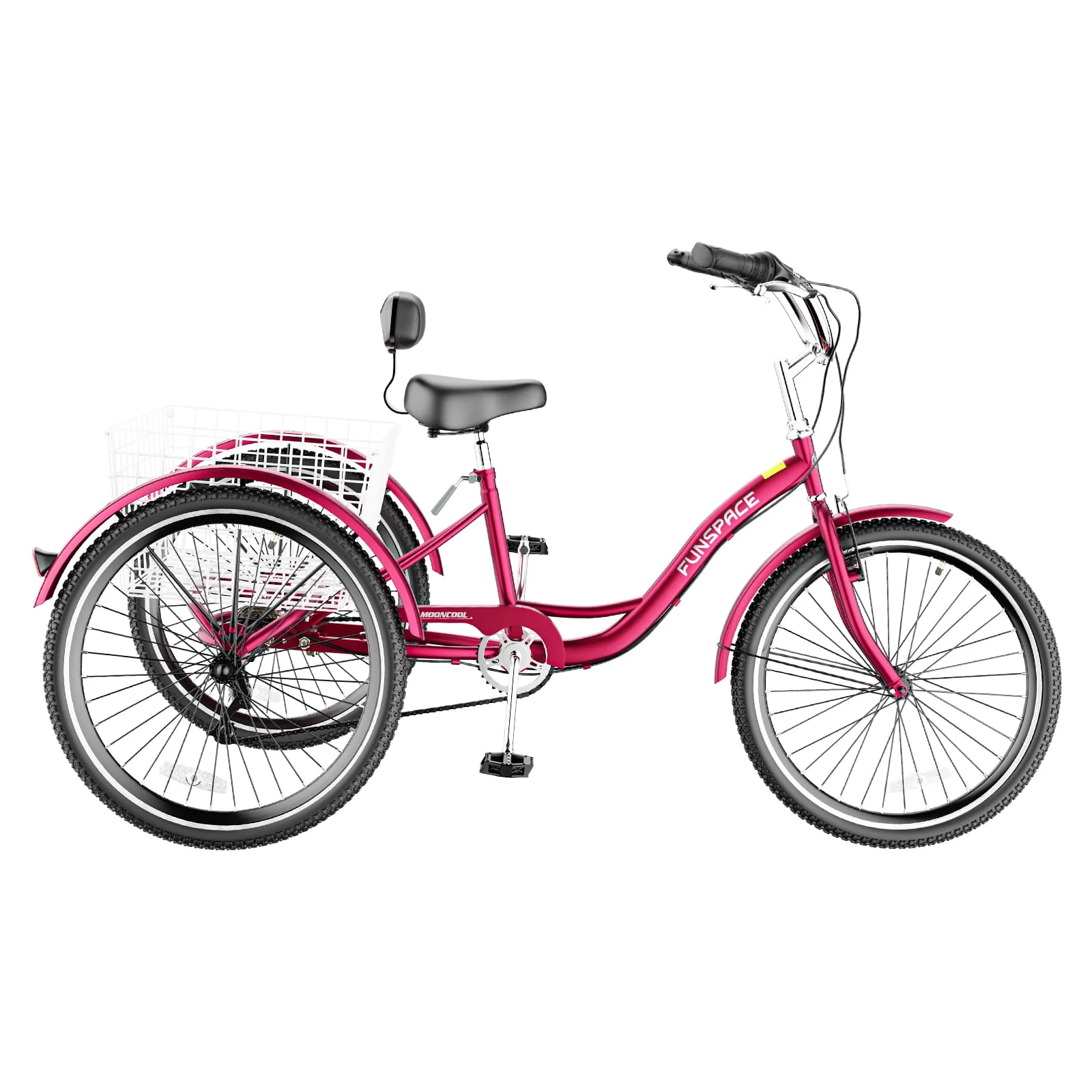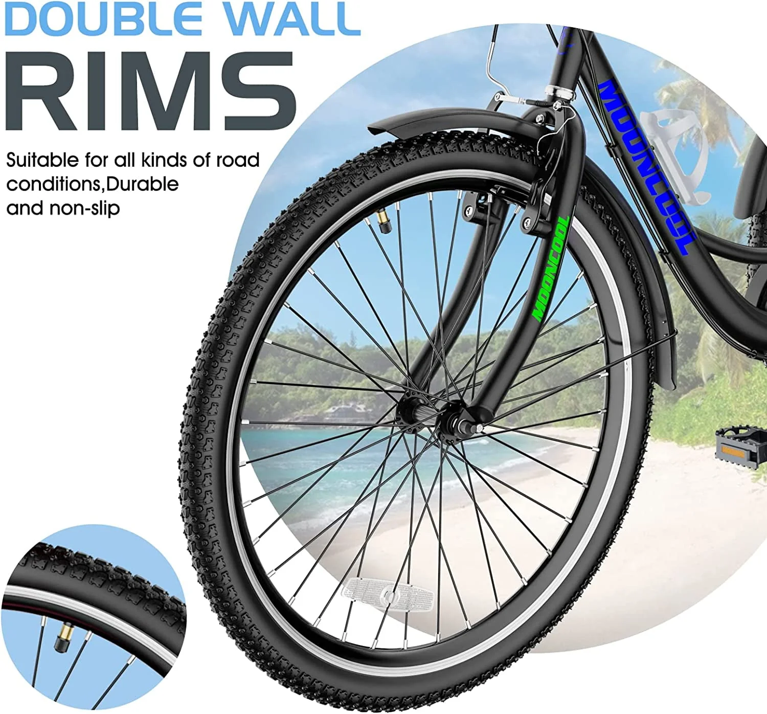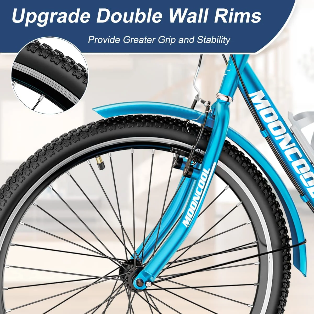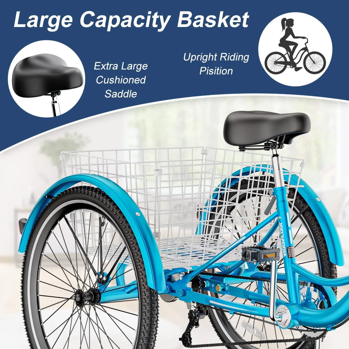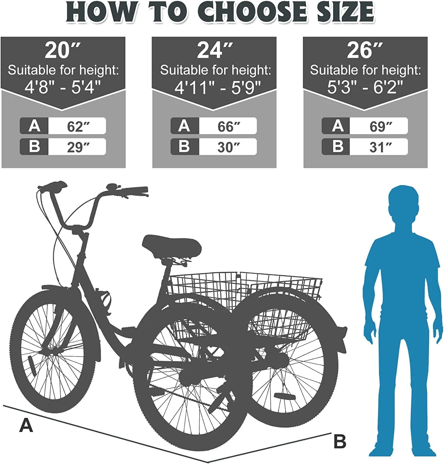 Mooncool Adult Tricycle 20/24/26 inch 7 Speed, Three Wheel Bicycle for Adult, Trike Cruiser W/ Tools & Big Basket for Exercise Shopping Picnic Outdoor Activities