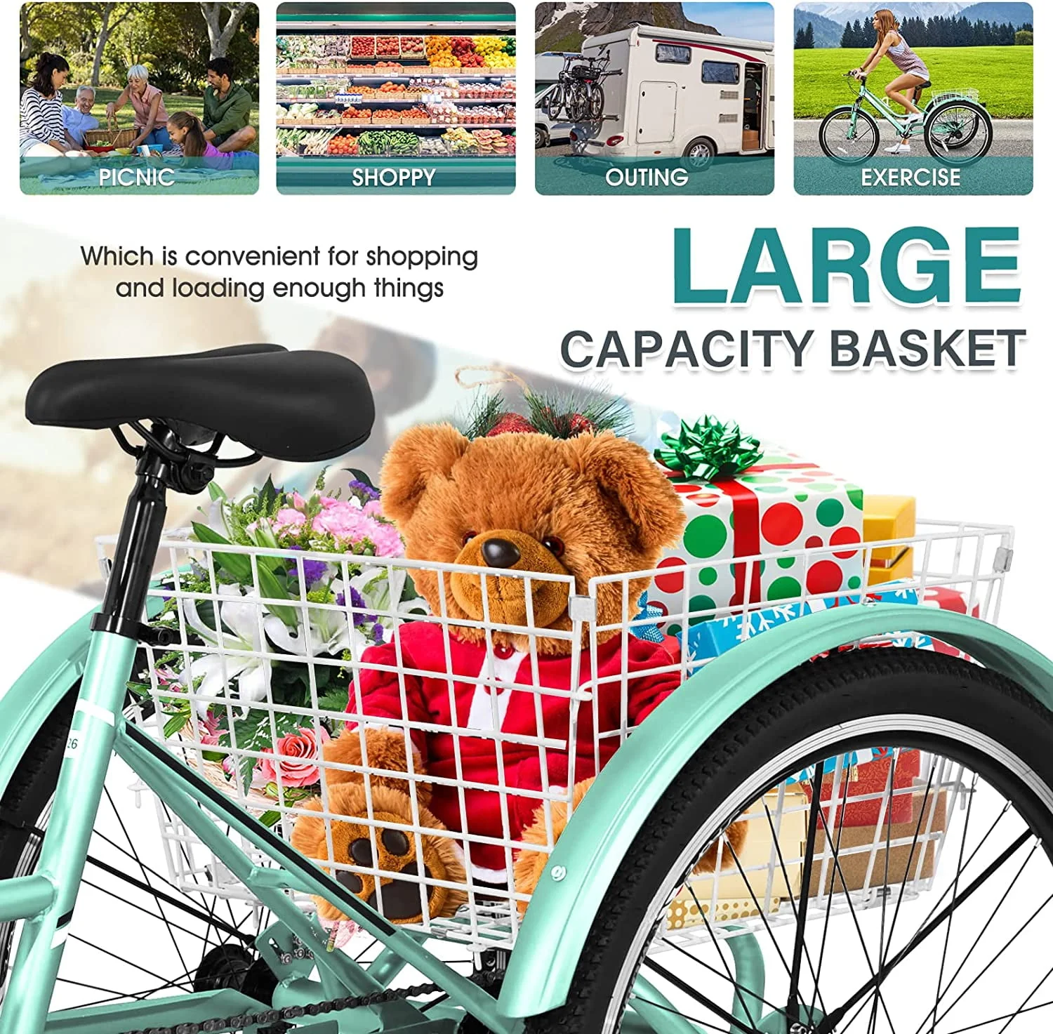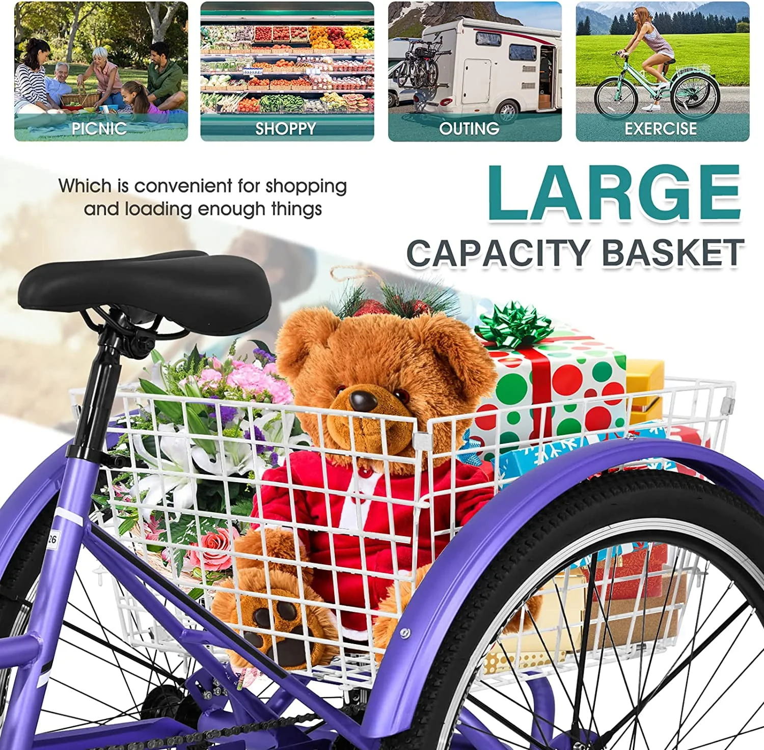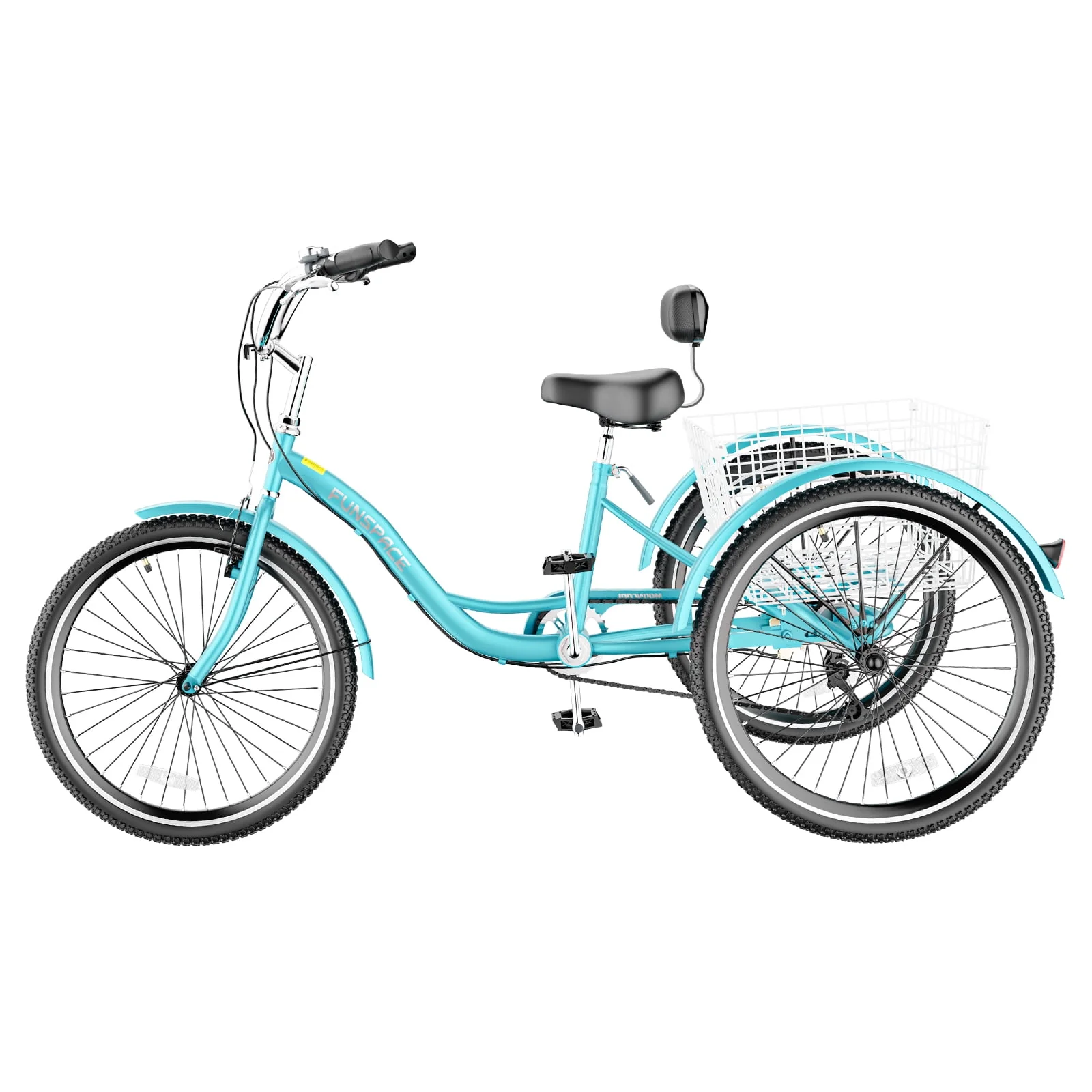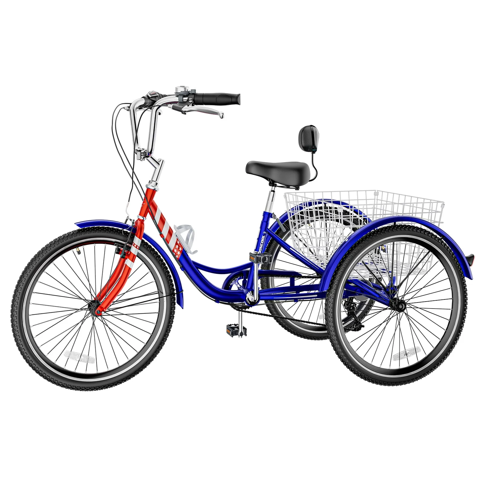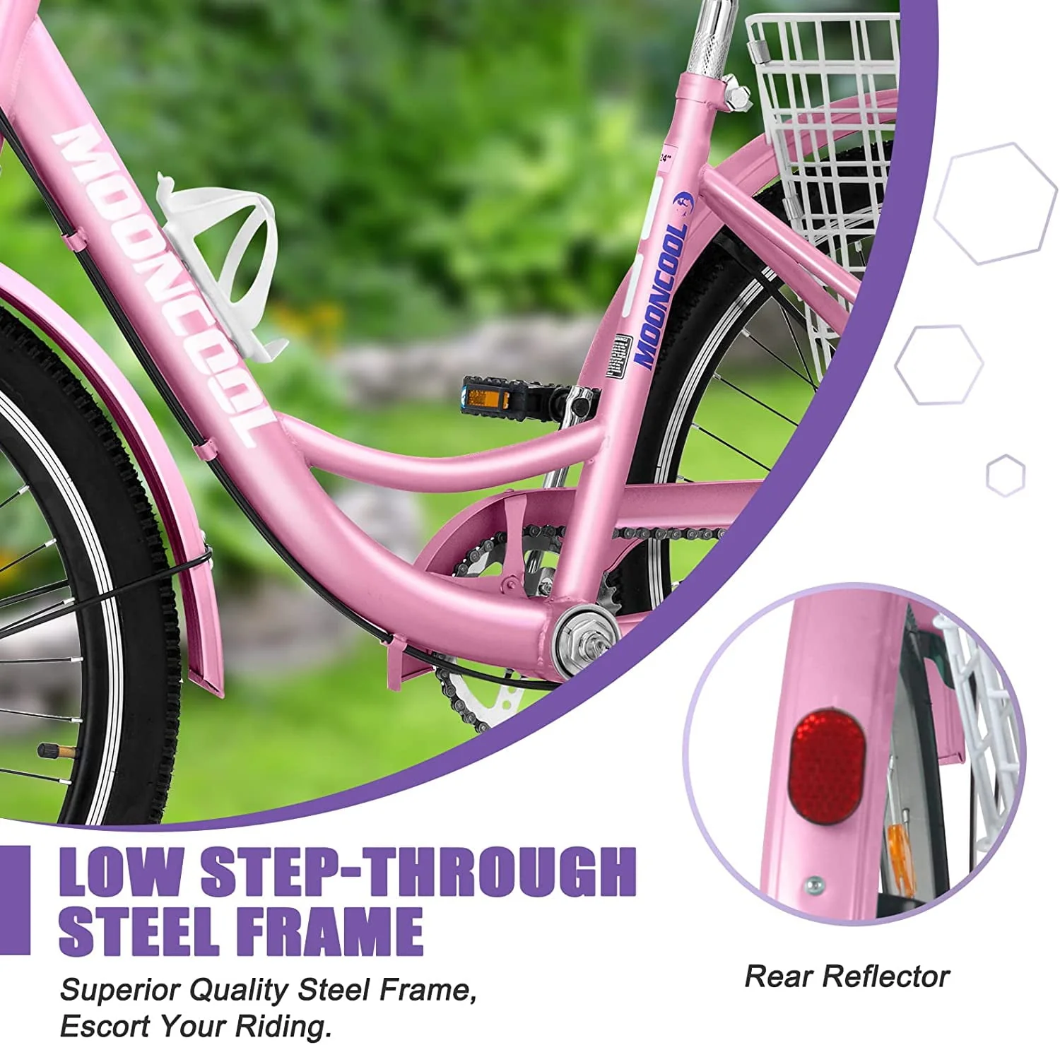 Mooncool Adult Tricycle 20/24/26 inch 7 Speed, Three Wheel Bicycle for Adult, Trike Cruiser W/ Tools & Big Basket for Exercise Shopping Picnic Outdoor Activities