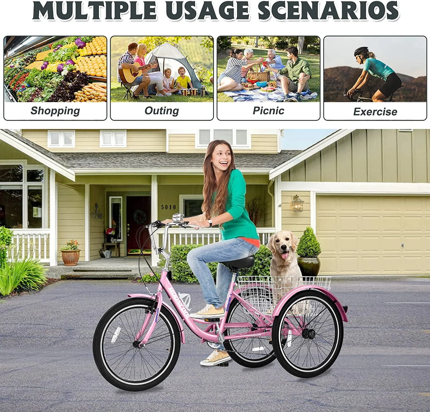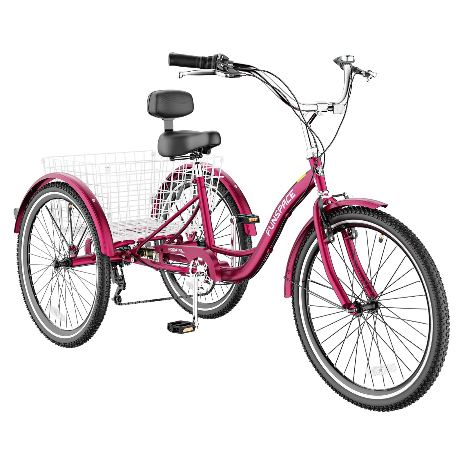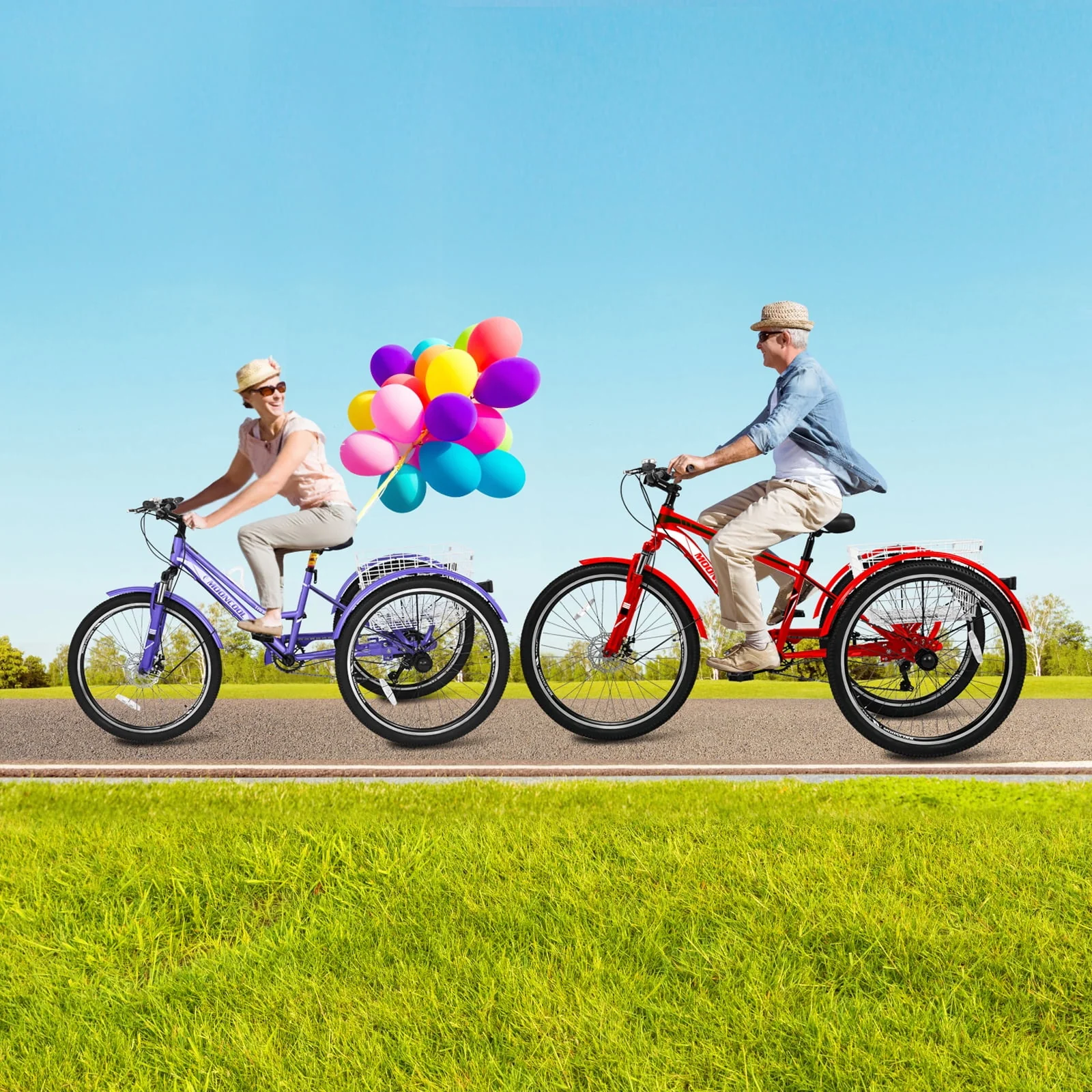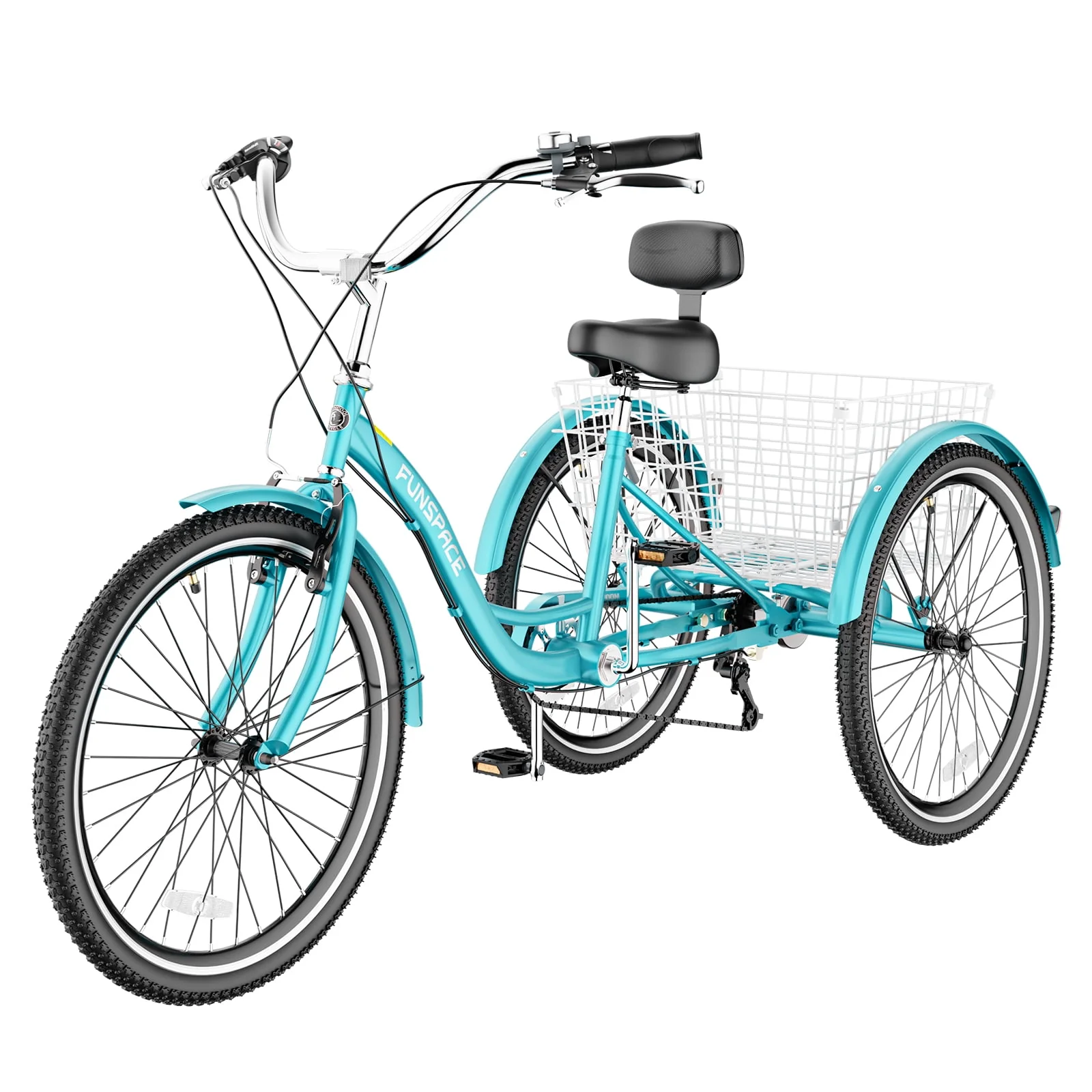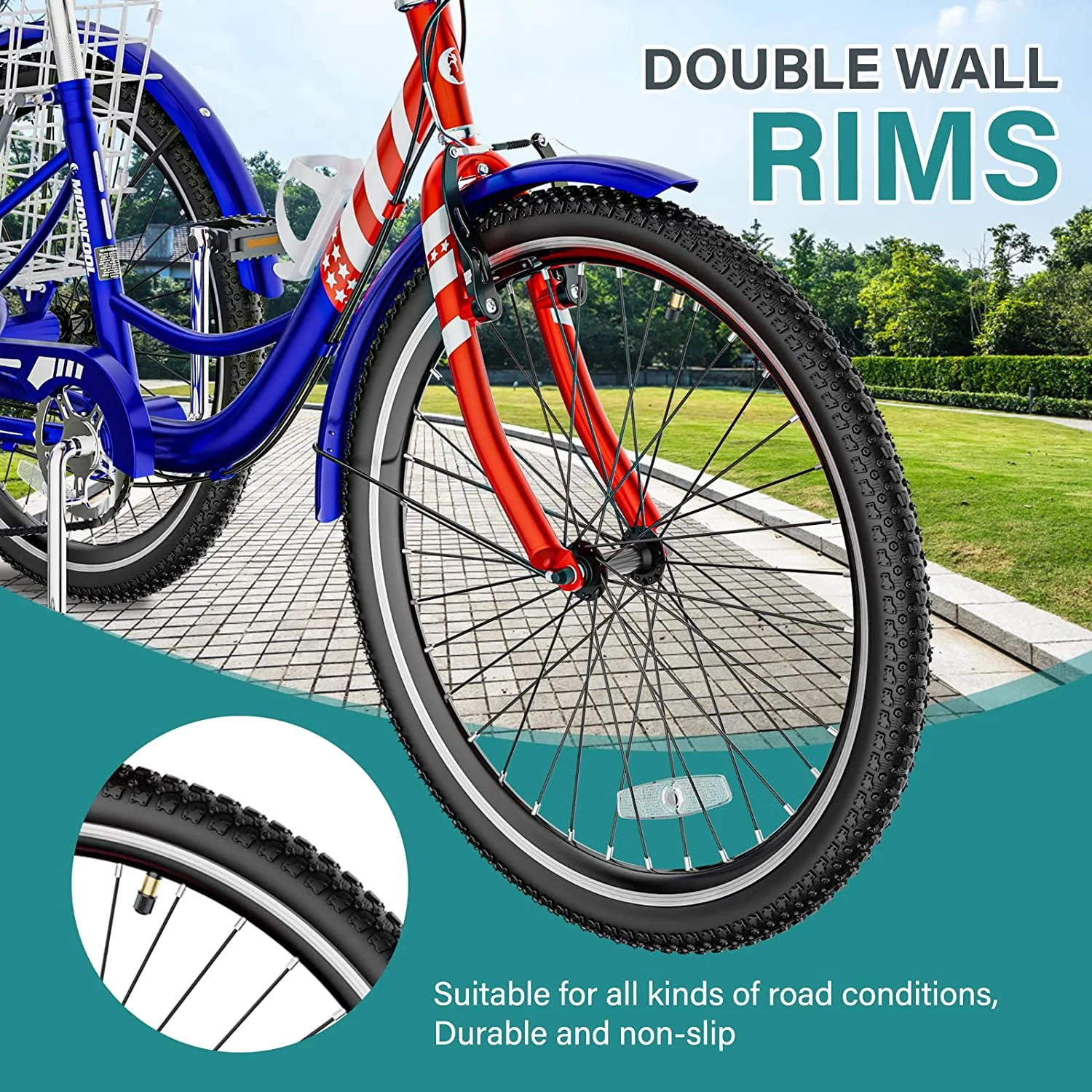 Mooncool Adult Tricycle 20/24/26 inch 7 Speed, Three Wheel Bicycle for Adult, Trike Cruiser W/ Tools & Big Basket for Exercise Shopping Picnic Outdoor Activities