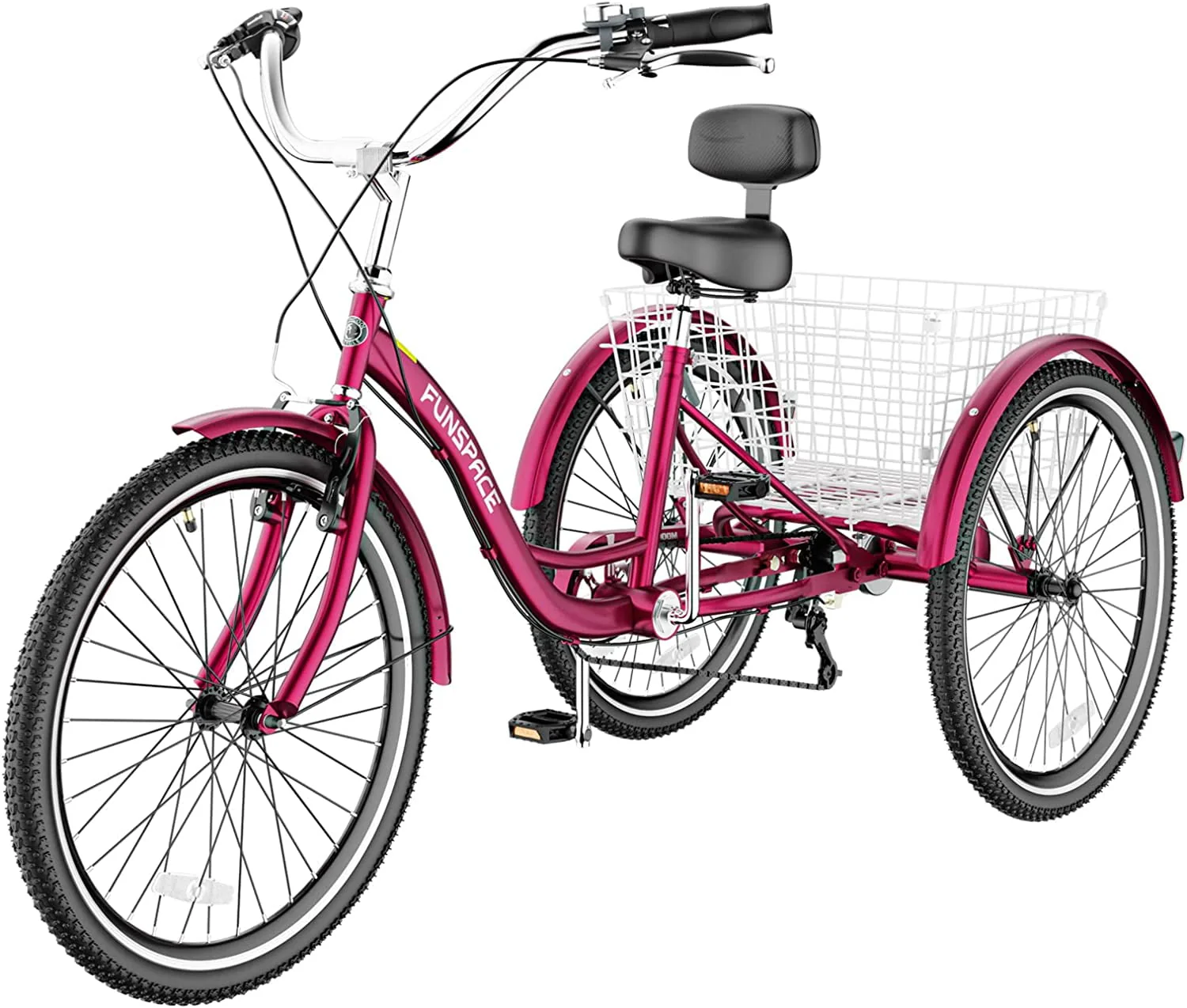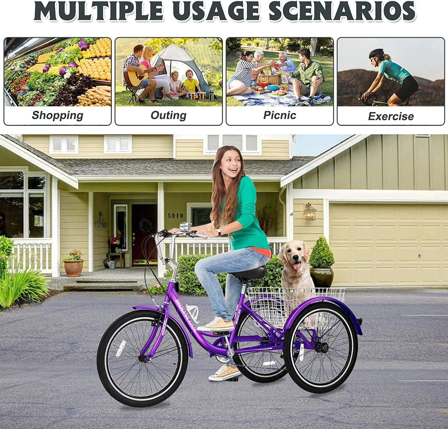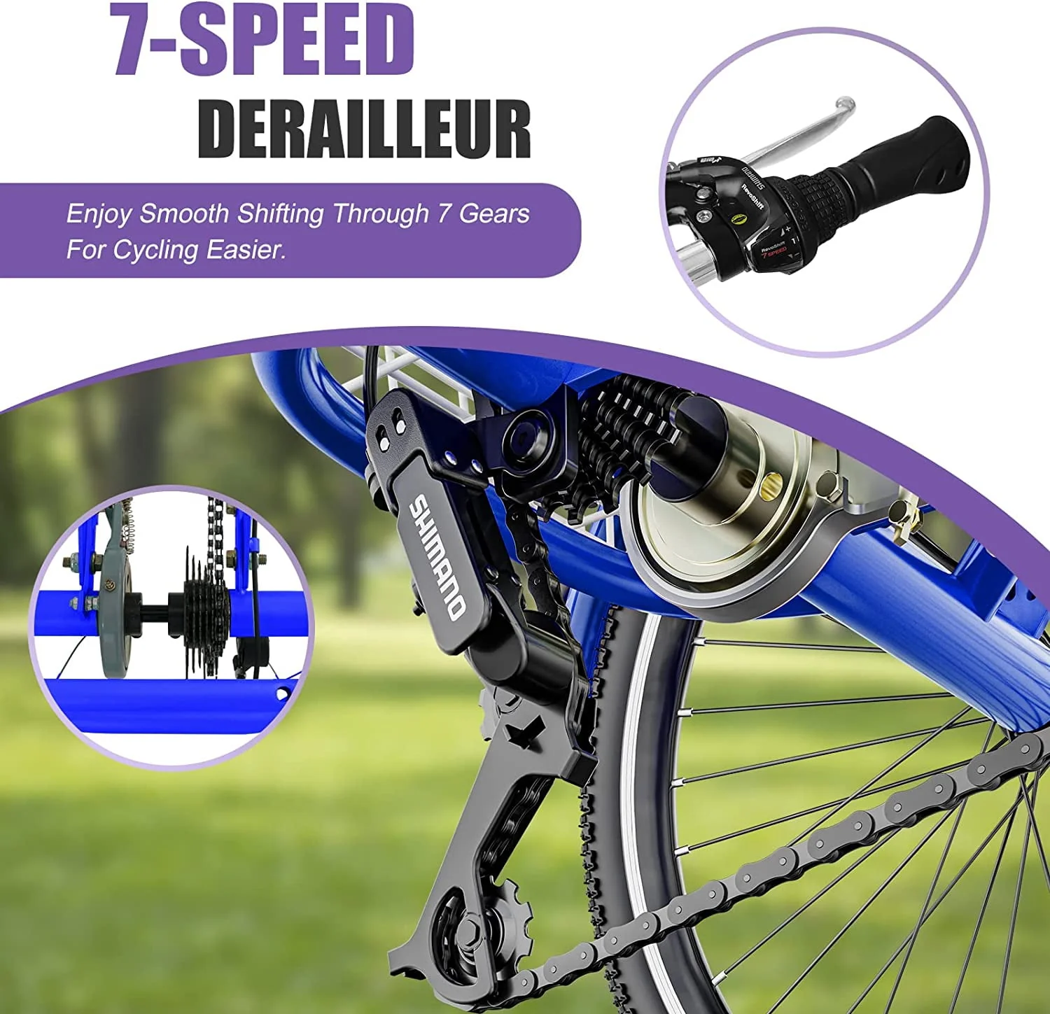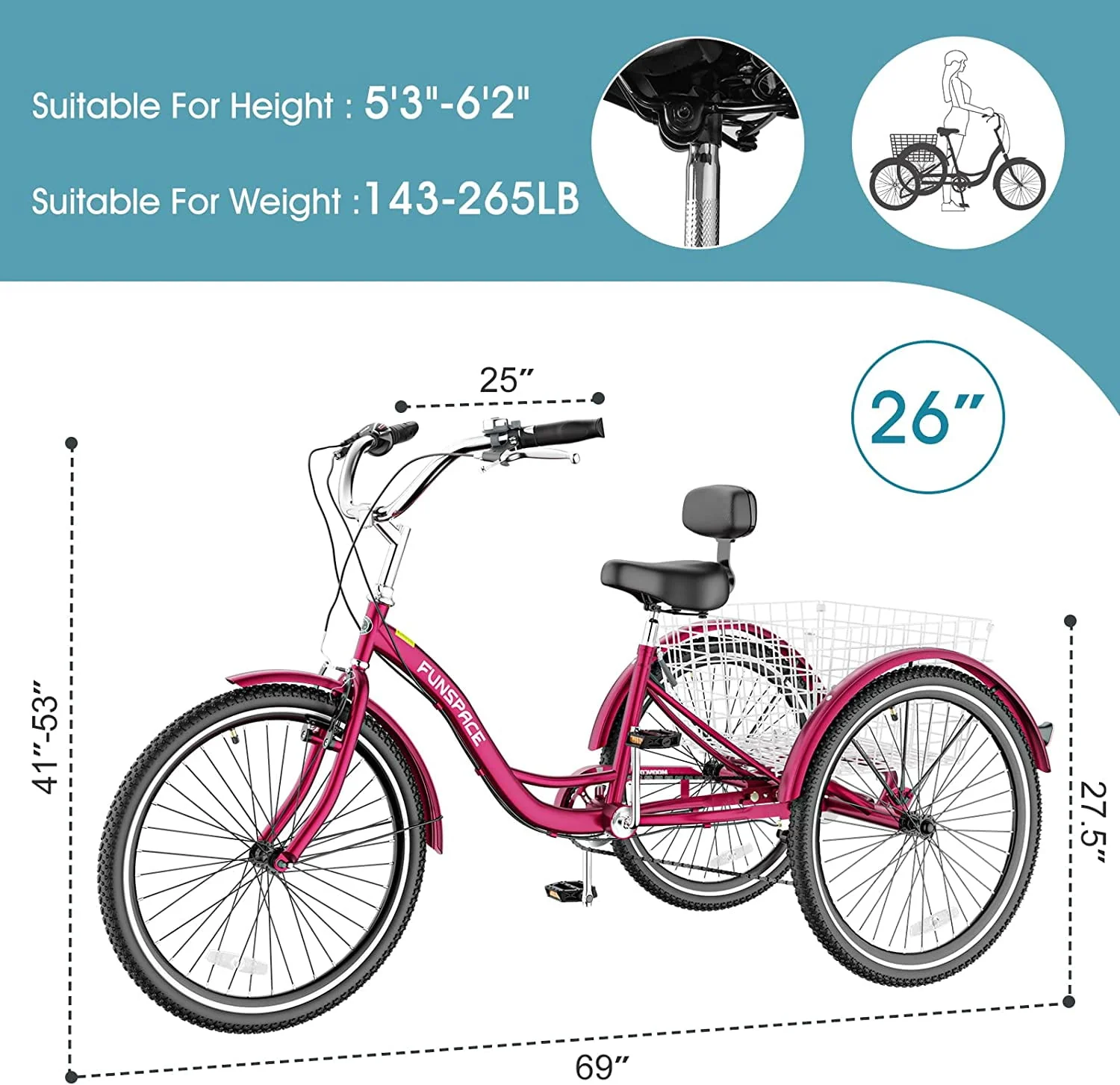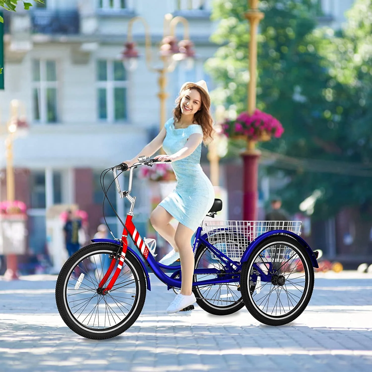 Mooncool Adult Tricycle 20/24/26 inch 7 Speed, Three Wheel Bicycle for Adult, Trike Cruiser W/ Tools & Big Basket for Exercise Shopping Picnic Outdoor Activities