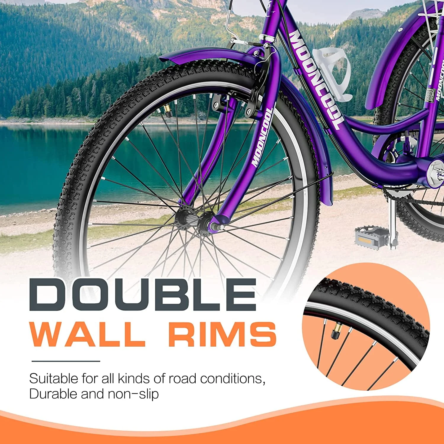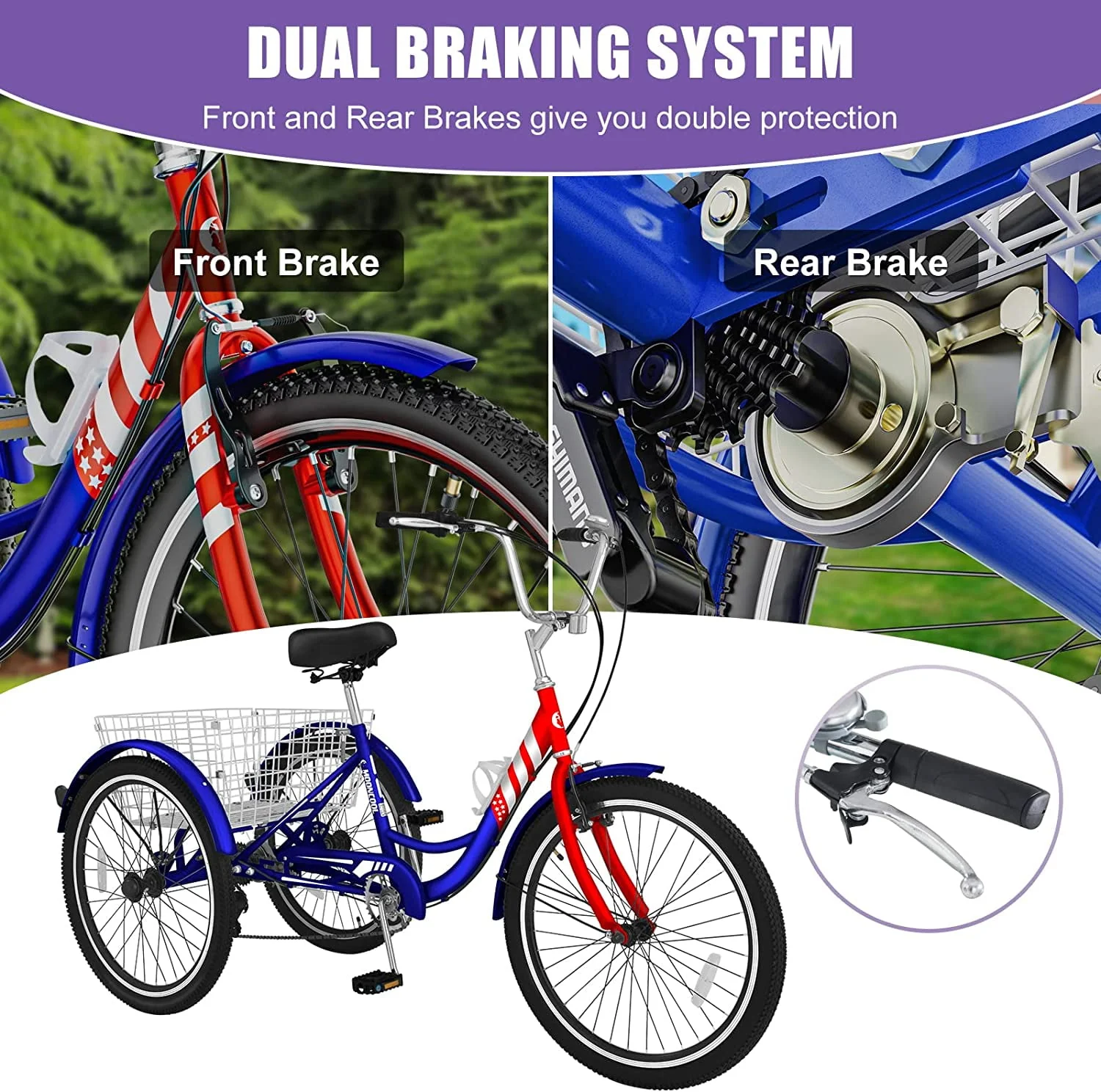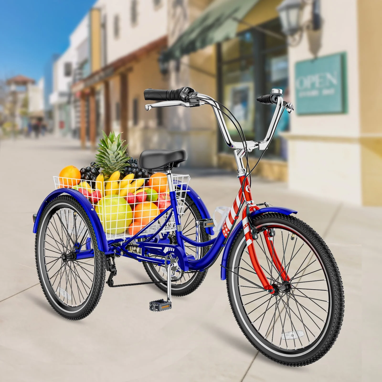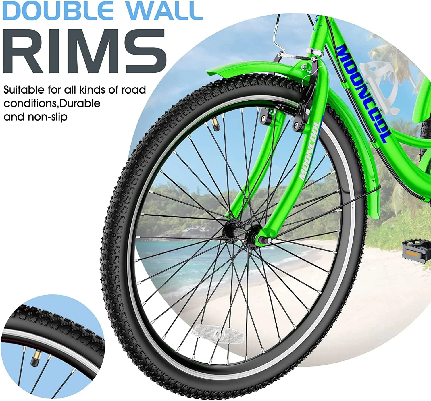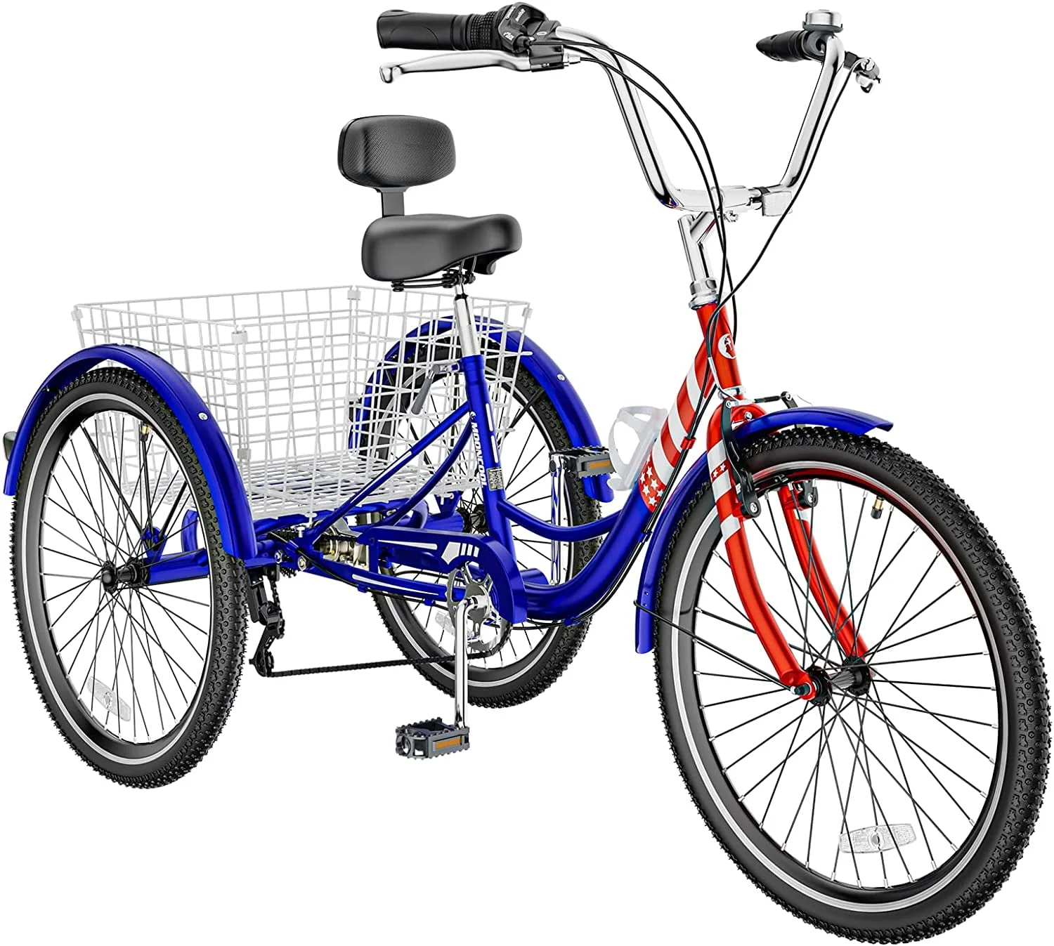 Mooncool Adult Tricycle 20/24/26 inch 7 Speed, Three Wheel Bicycle for Adult, Trike Cruiser W/ Tools & Big Basket for Exercise Shopping Picnic Outdoor Activities