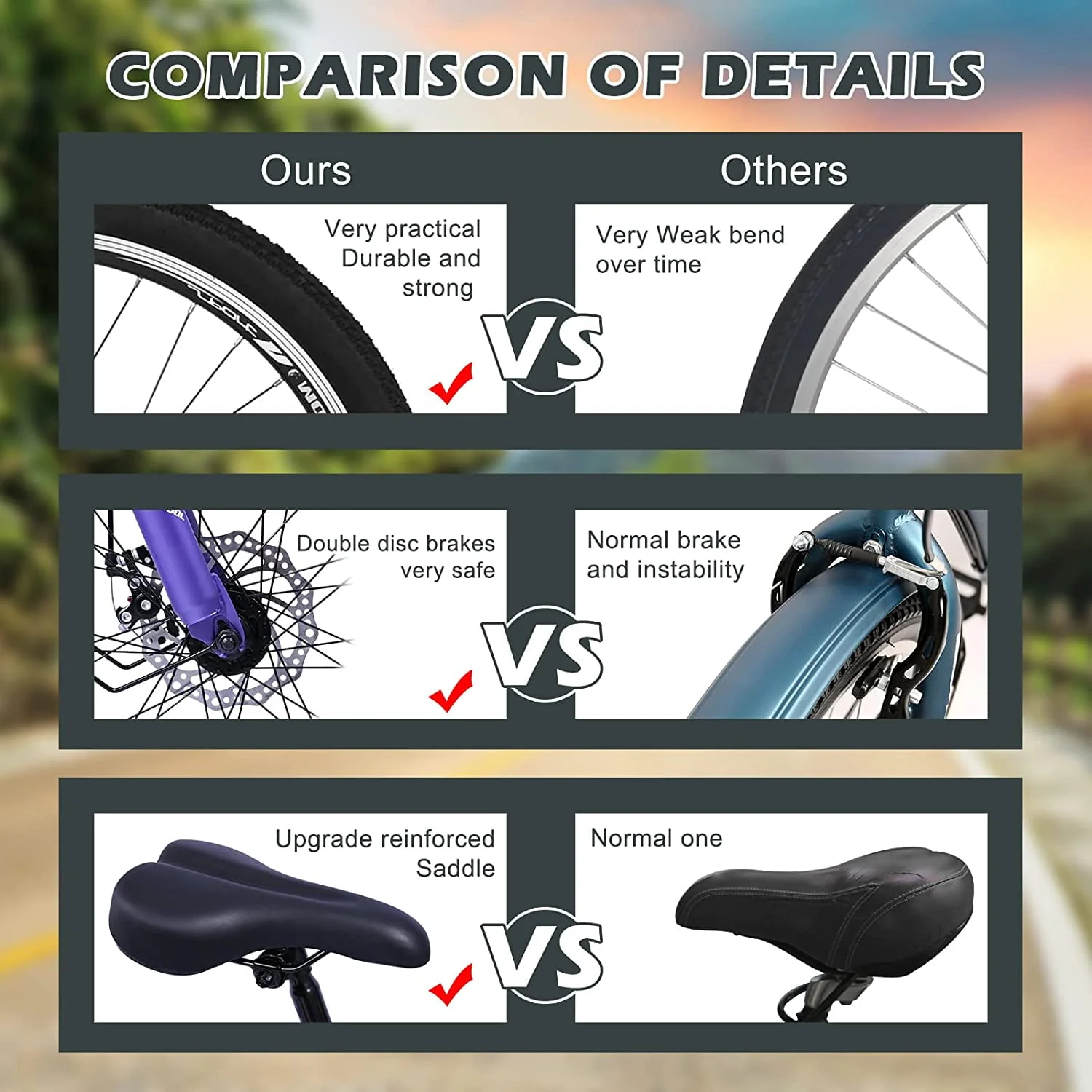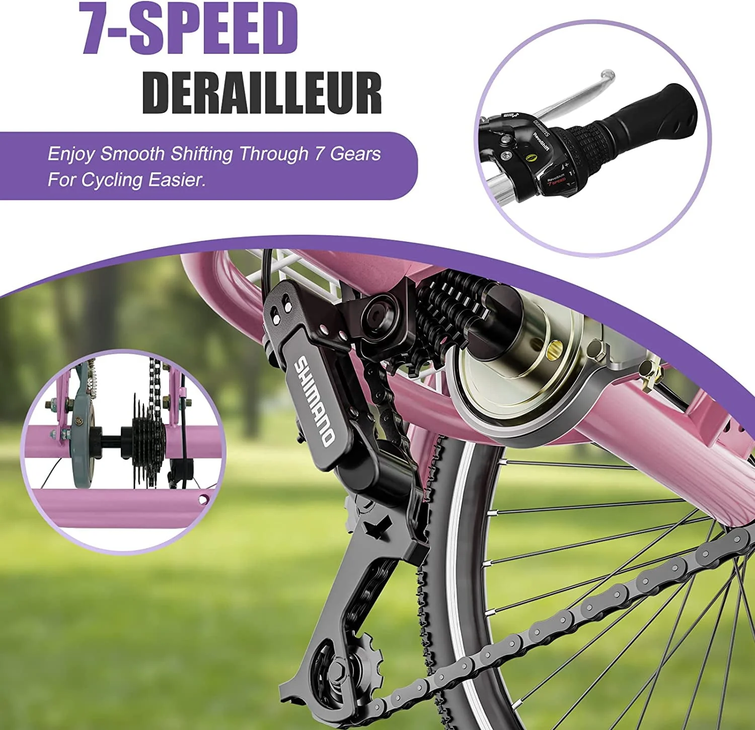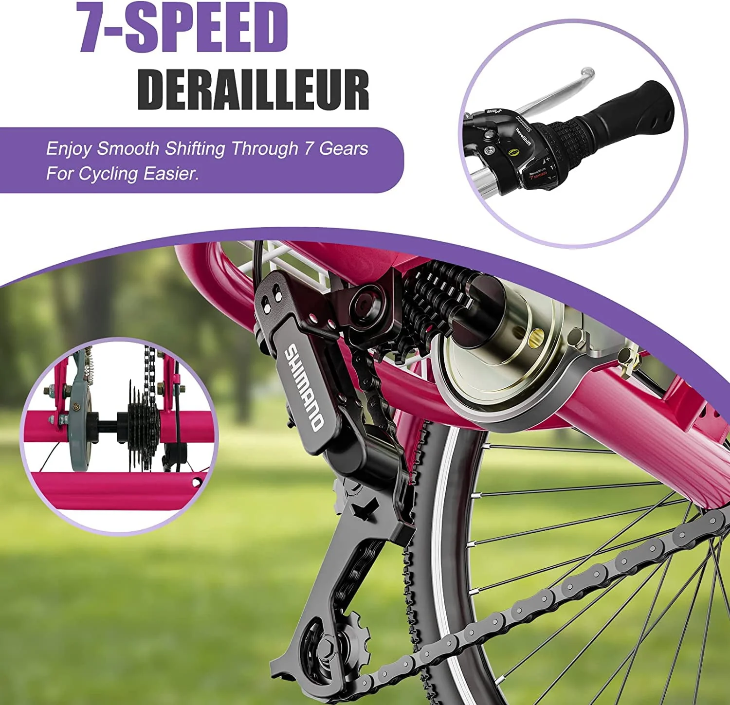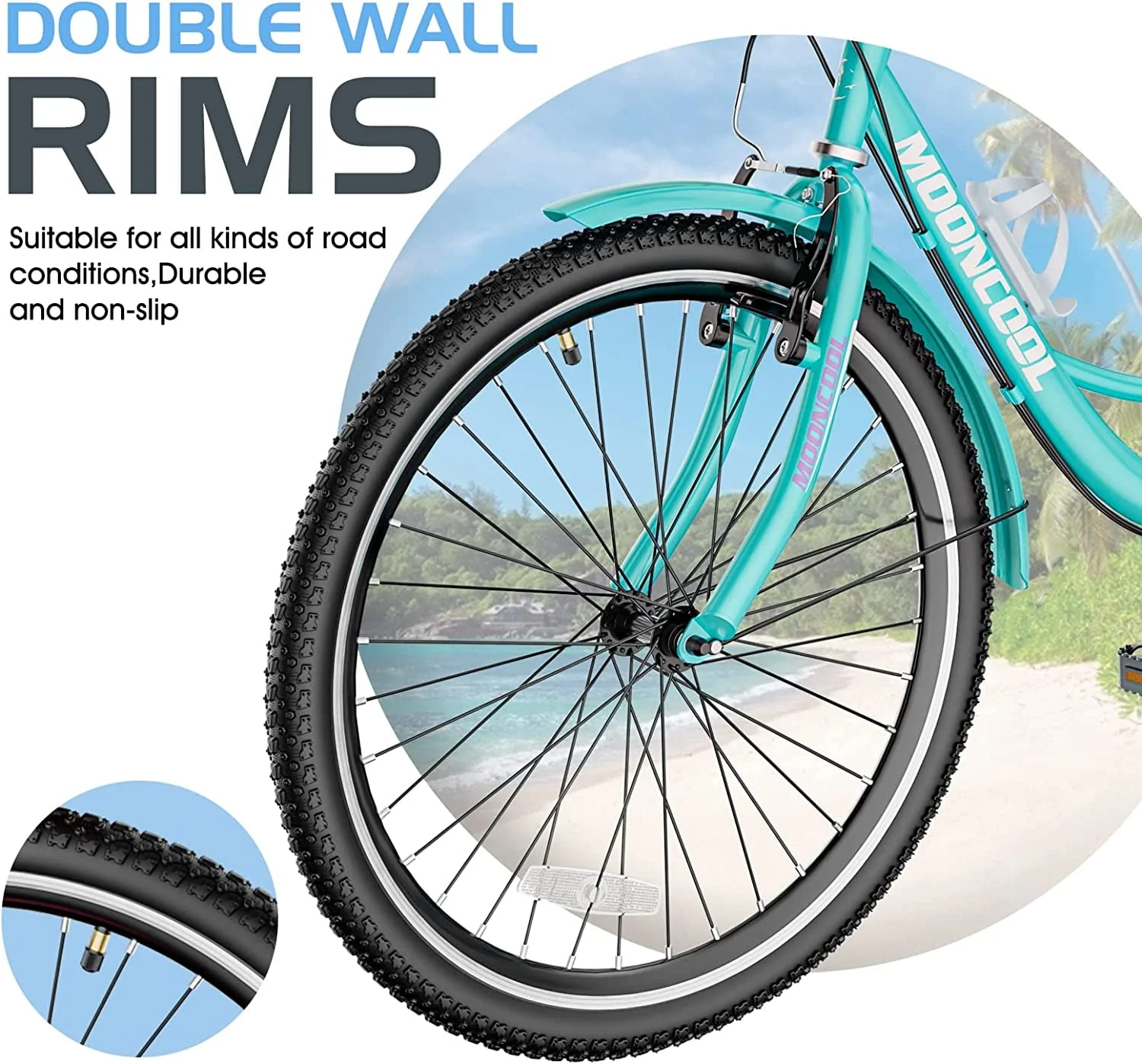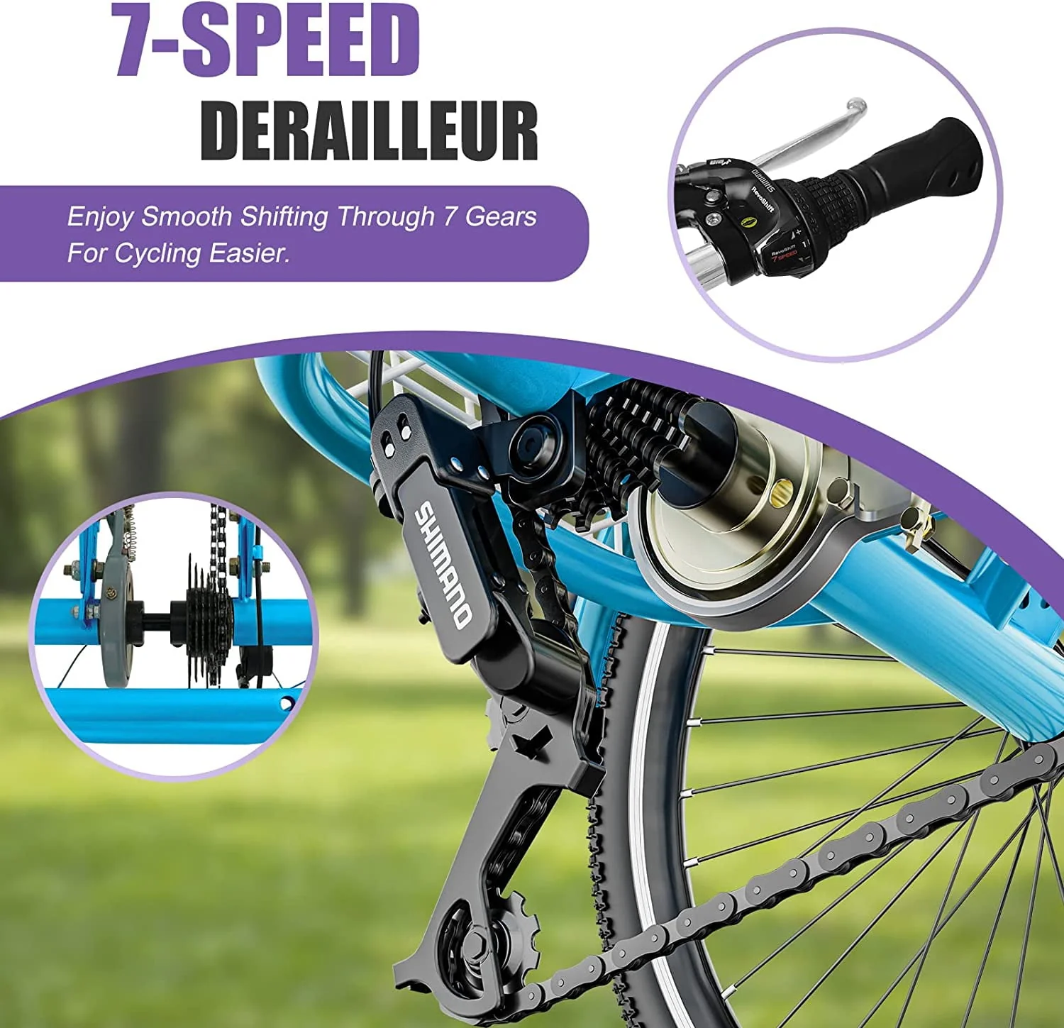 Mooncool Adult Tricycle 20/24/26 inch 7 Speed, Three Wheel Bicycle for Adult, Trike Cruiser W/ Tools & Big Basket for Exercise Shopping Picnic Outdoor Activities