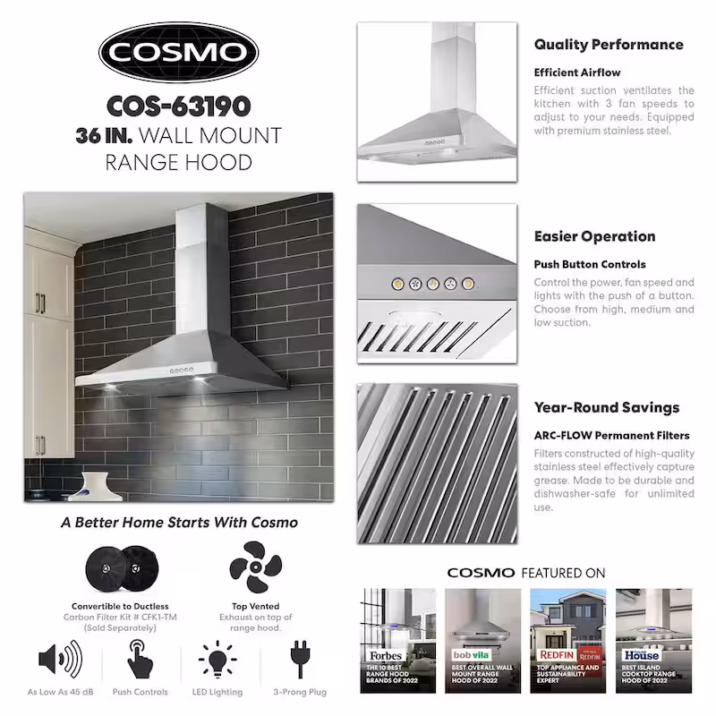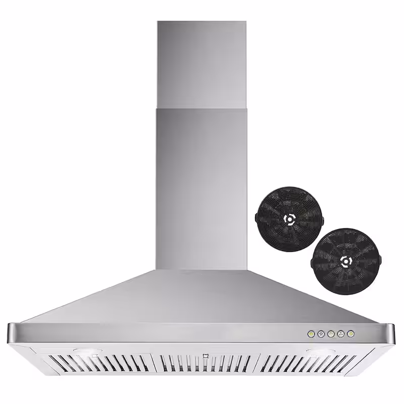 36 in. Ductless Wall Mount Range Hood in Stainless Steel with LED Lighting and Carbon Filter Kit for Recirculating