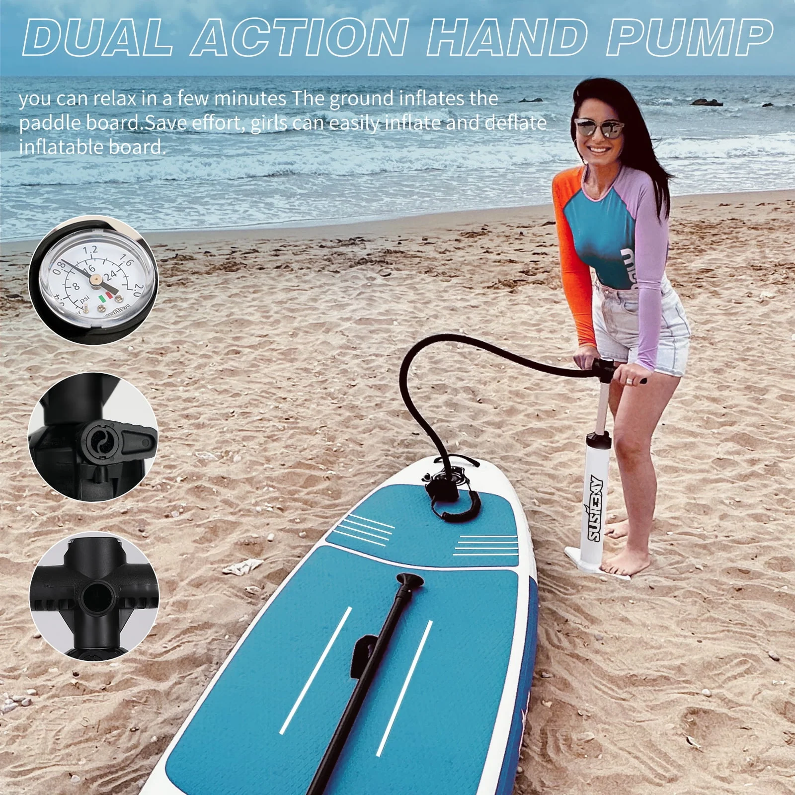 SUSIEBAY Inflatable Stand Up Paddle Board with Premium SUP Accessories and Surfing Backpack | 10'6“ 11ft #Black, Wide Stance, Surf Control, Non-Slip Deck, Paddle and Pump for Youth & Adult