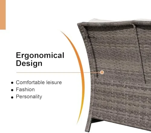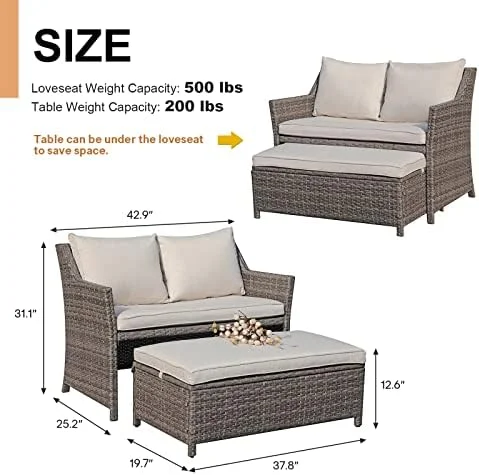 ZFGSUIJN Outdoor Patio Loveseat Wicker Conversation Set with Cushions and Built-in Coffee Table 2 Person Rattan Seating for Garden Lawn Backyard Dark Brown+Red - Curated Treasures Market
