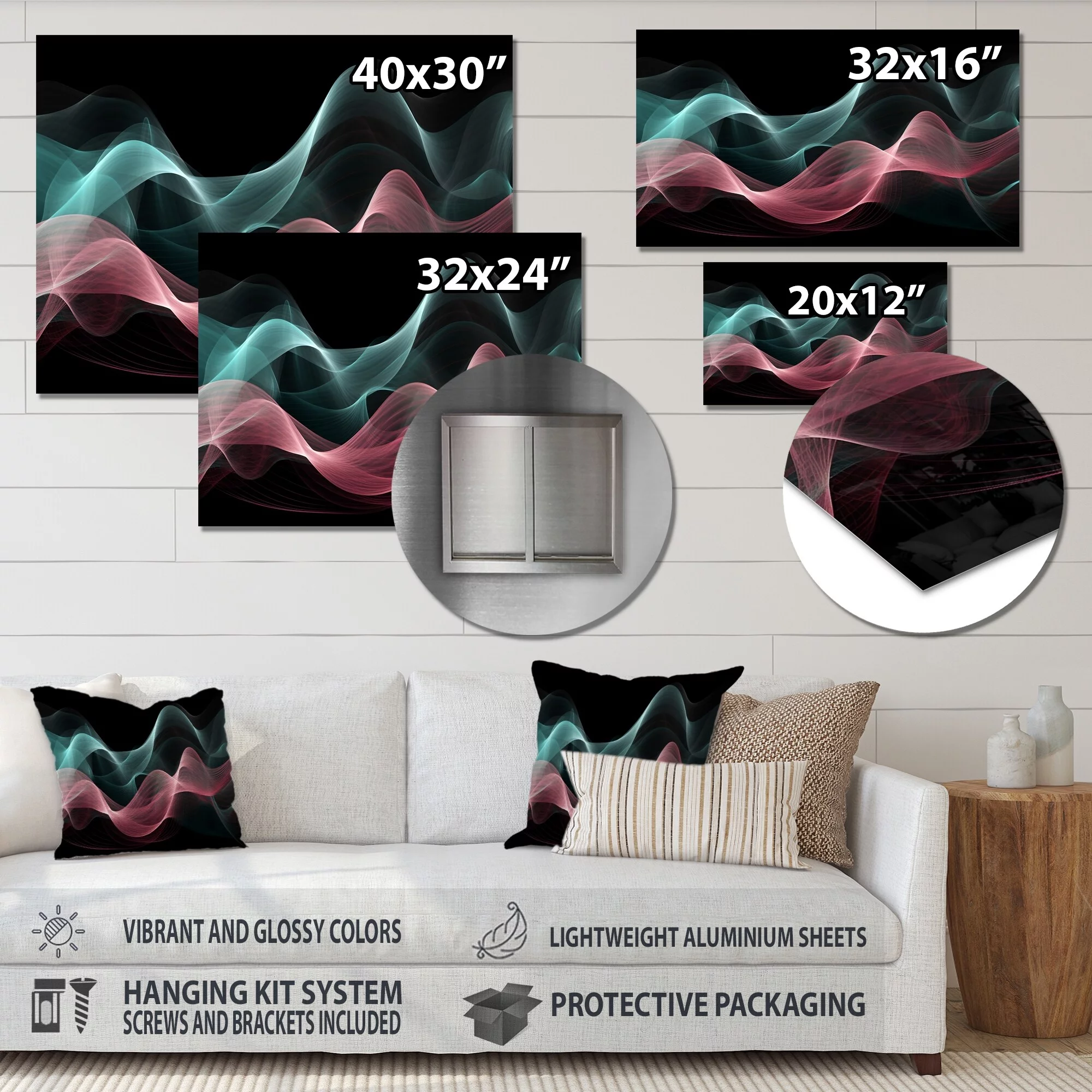 Designart "Harmonious Contrast Green and Pink III" Modern Waves Metal Wall Art Prints - Curated Treasures Market