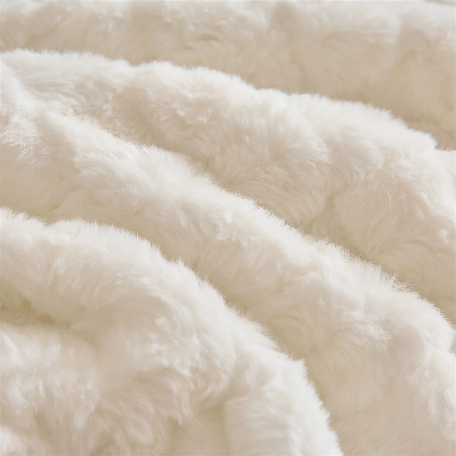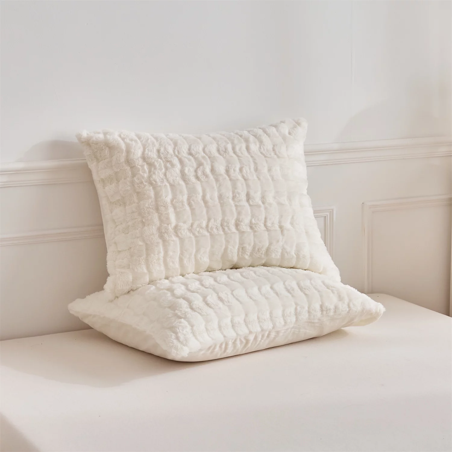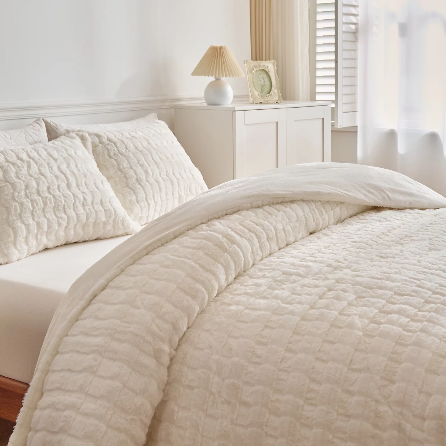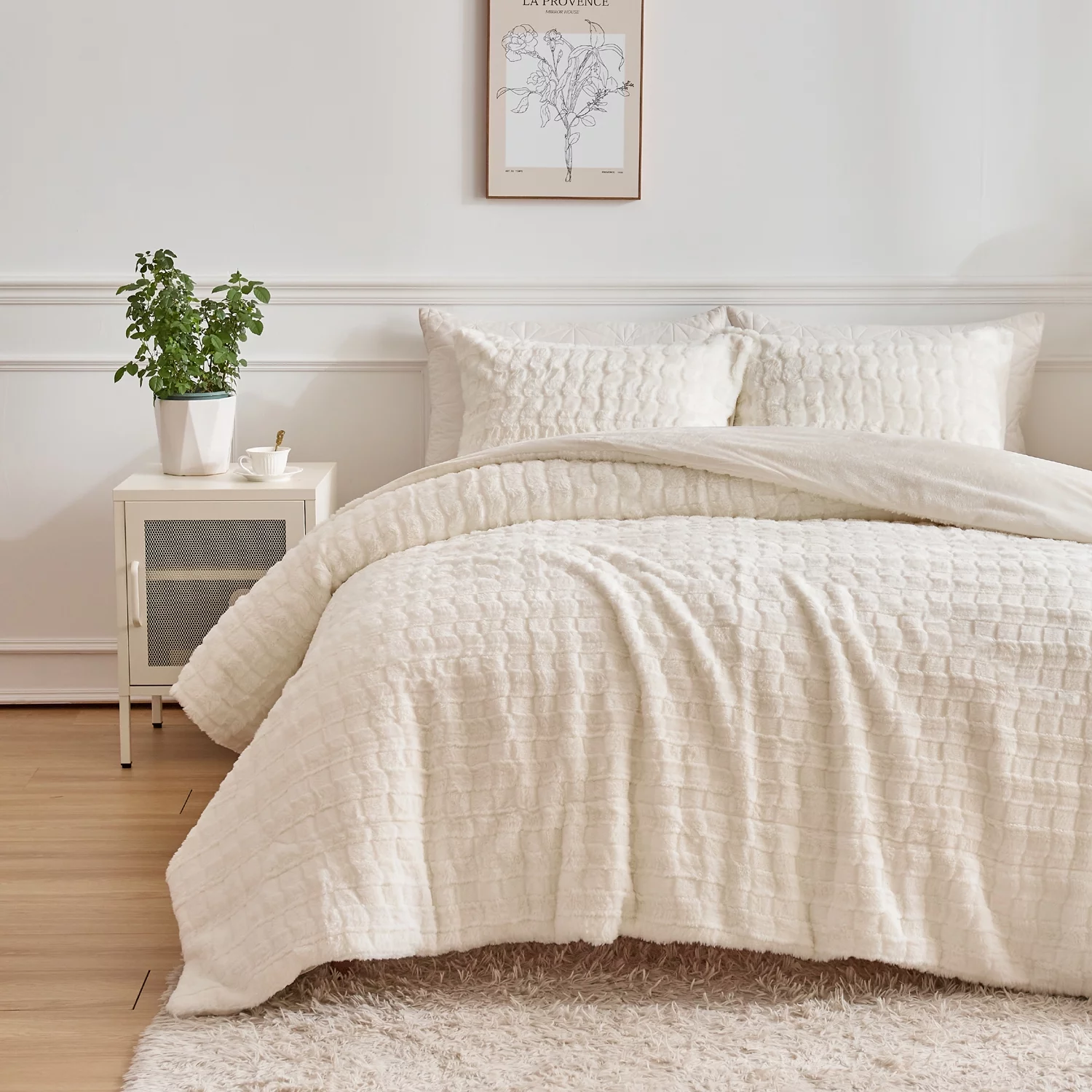 Wajade Faux Fur Duvet Cover Set 3 Piece Super Soft Fluffy Fuzzy Comforter Cover with 2 Pillow Shams Faux Rabbit Fur Bedding Set, Ivory, Full Size - Curated Treasures Market